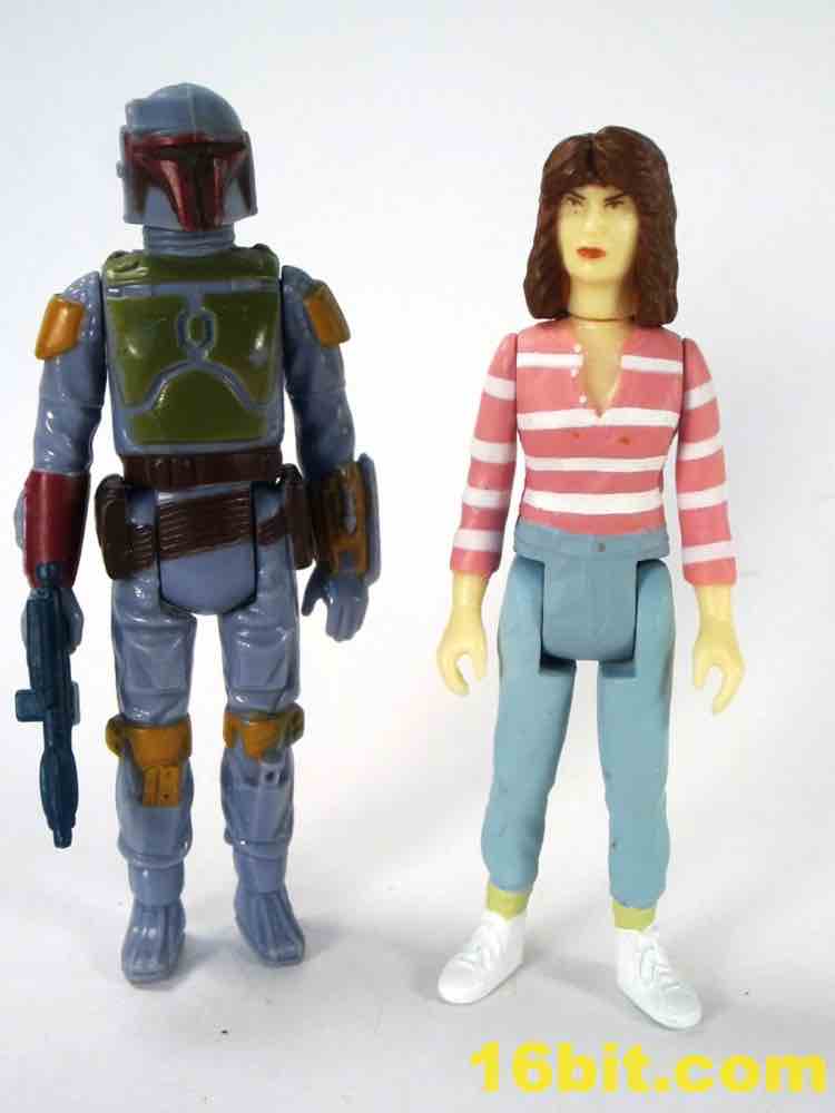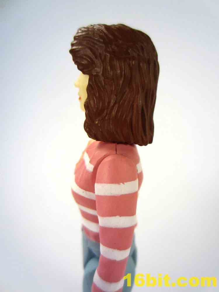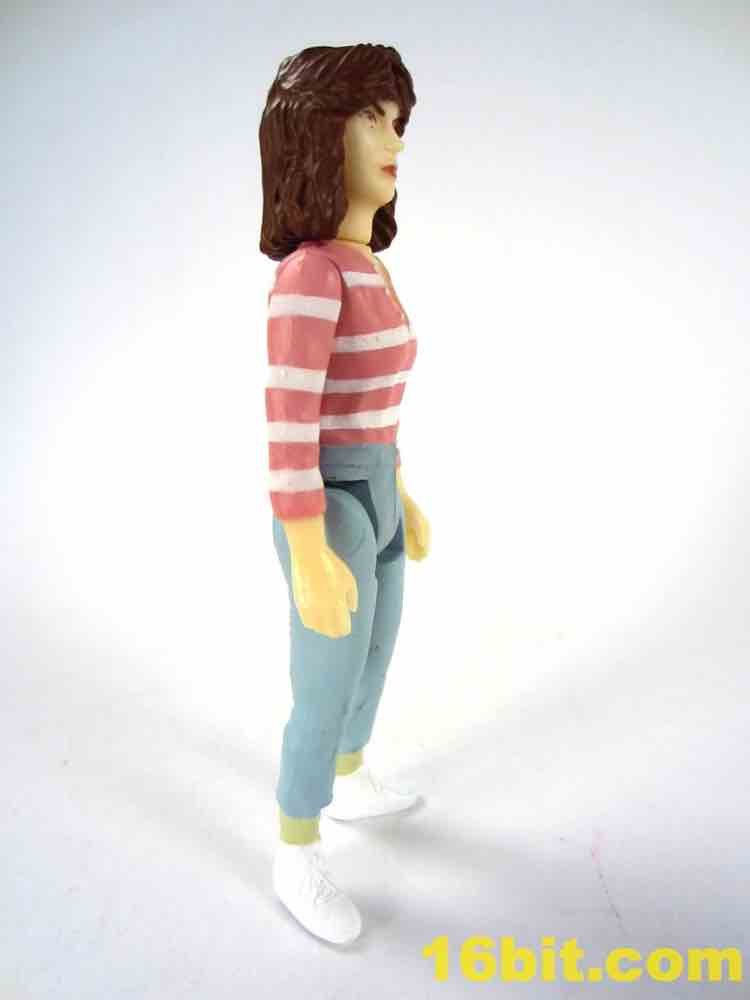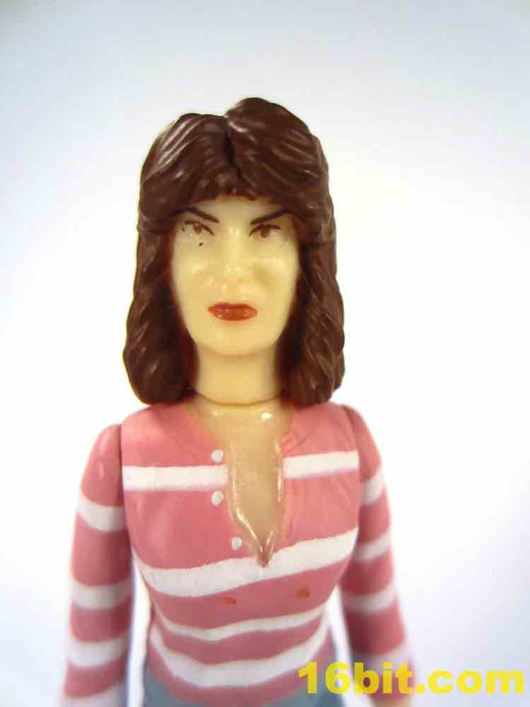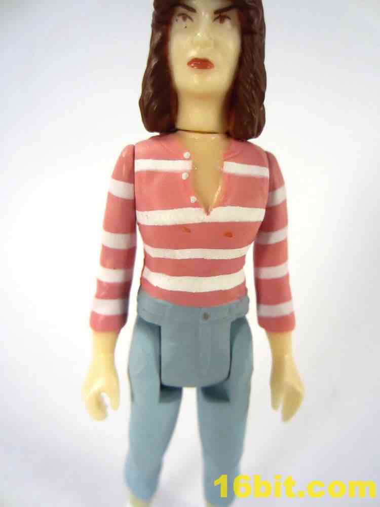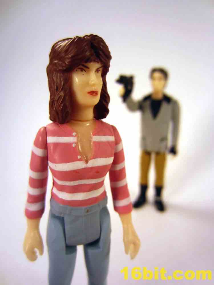 At 3 3/5-inches tall, Sarah Connor certainly isn't tiny - but she isn't big either. In what may be one of the biggest poodle-inspired hairdos we've ever seen in an action figure, the sculptors managed to convincingly exaggerate her locks and make a figure that is very much of that era. The shirt is similarly retro - it doesn't quite match the movie, but it gives a close impression of what the outfit on-screen looked like. This sort of thing happened with countless action figures into the 1990s, including the celebrated Playmates Star Trek range - a lot of the times, all we got was "close enough." And with a reddish brown wig instead of something closer to blonde, well, she does fit in with the authenticity by way of inauthenticity.