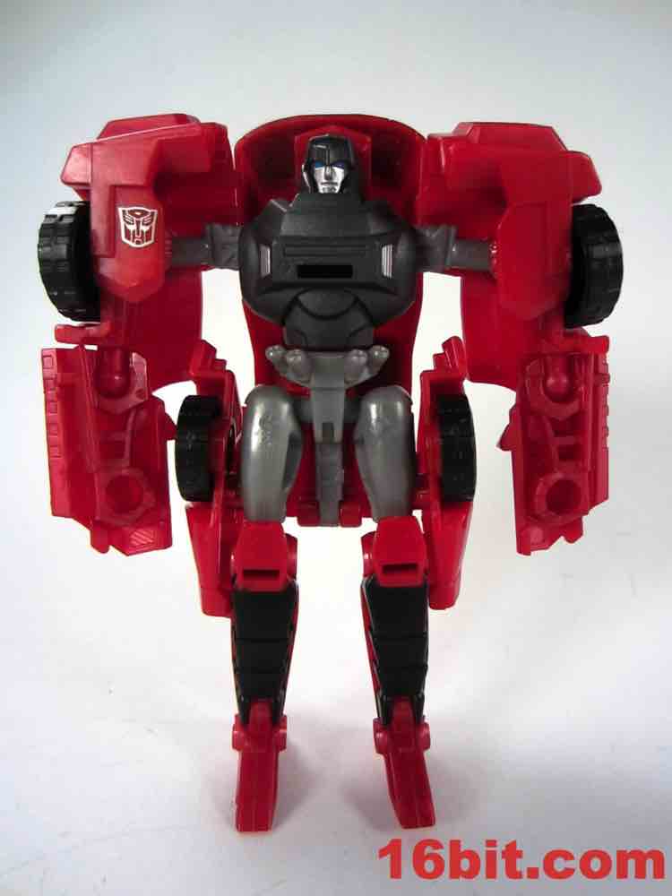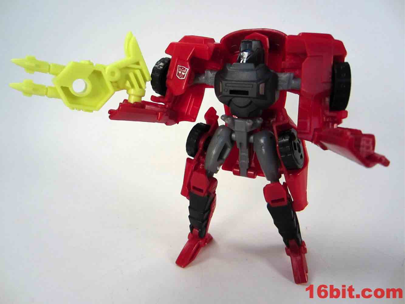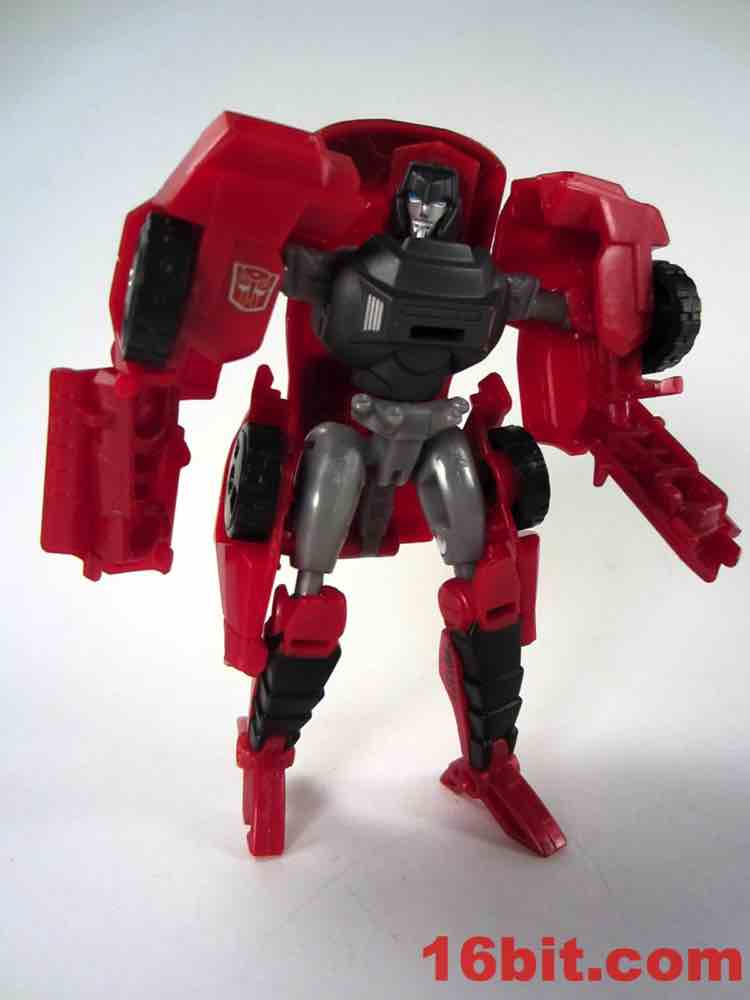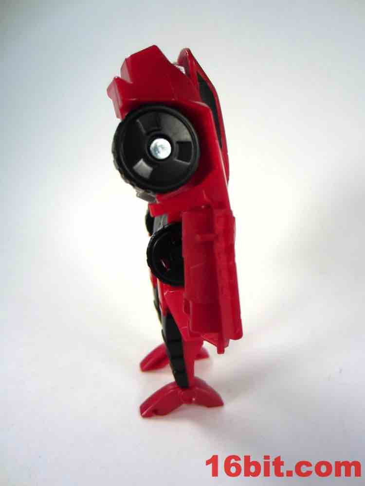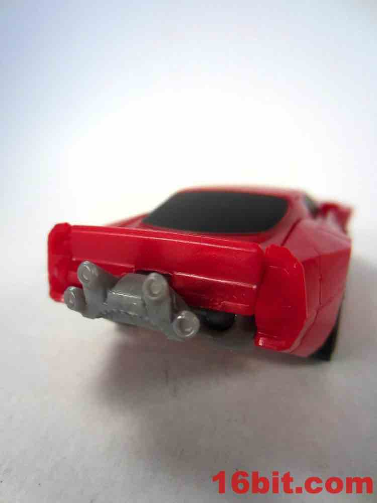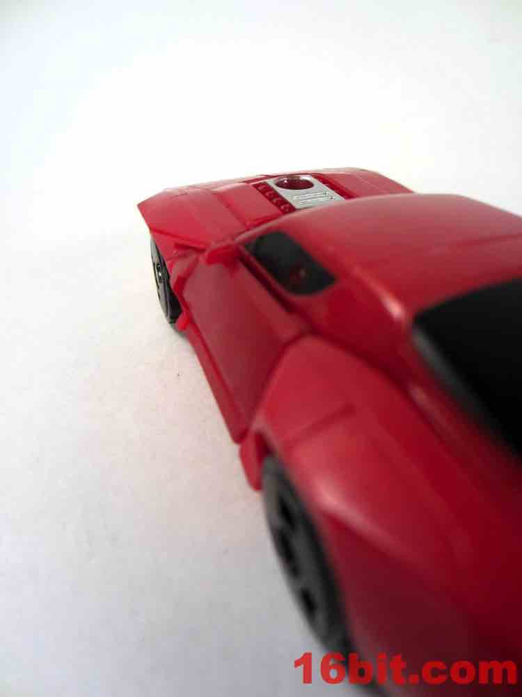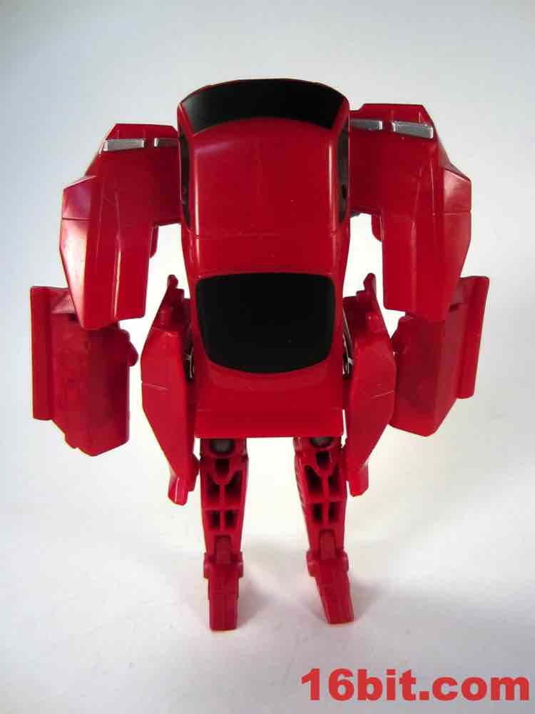 Transformation is more or less the same as Tailgate due to tolerance issues. I found the metallic red paint a bit tougher to tab into place, however once I did the fit was better than the previous white robot take on this mold. I personally wish these little guys could be even simpler, but it's pretty easy to fold up the arms, fold down the car's roof, and to twist the legs into place.