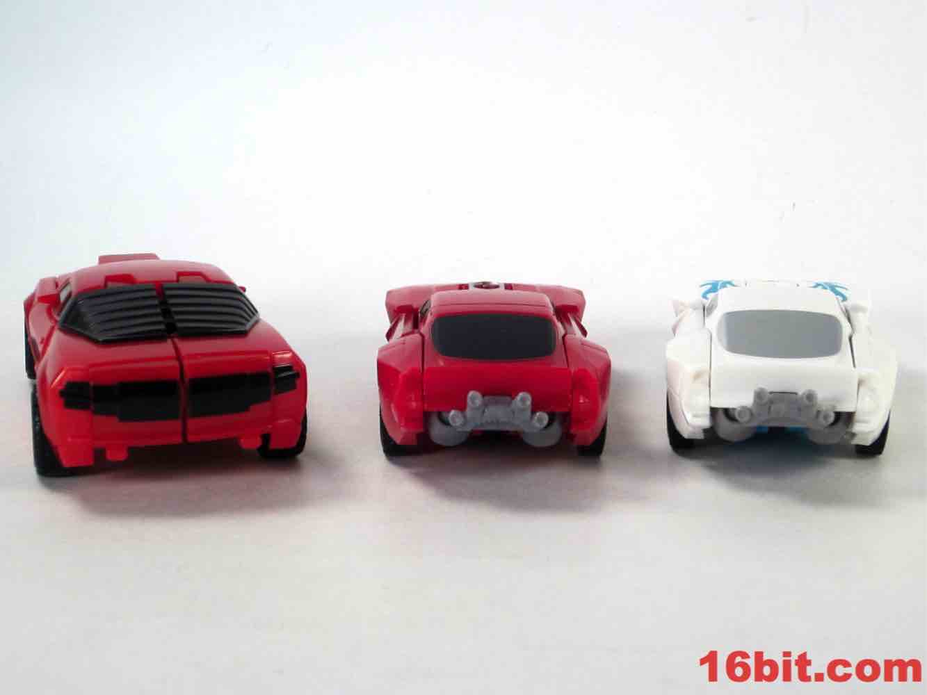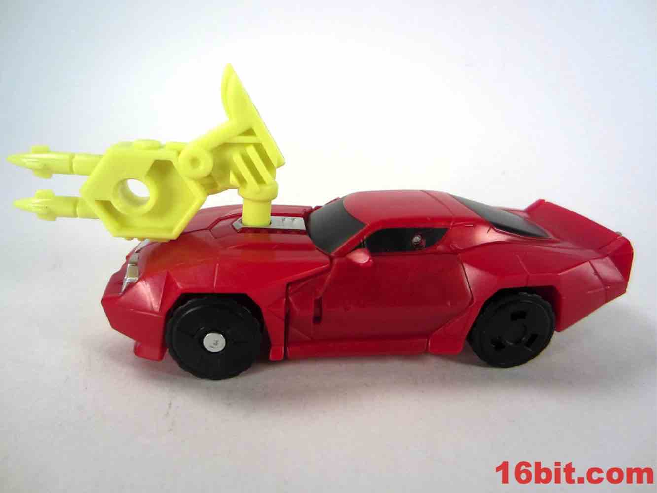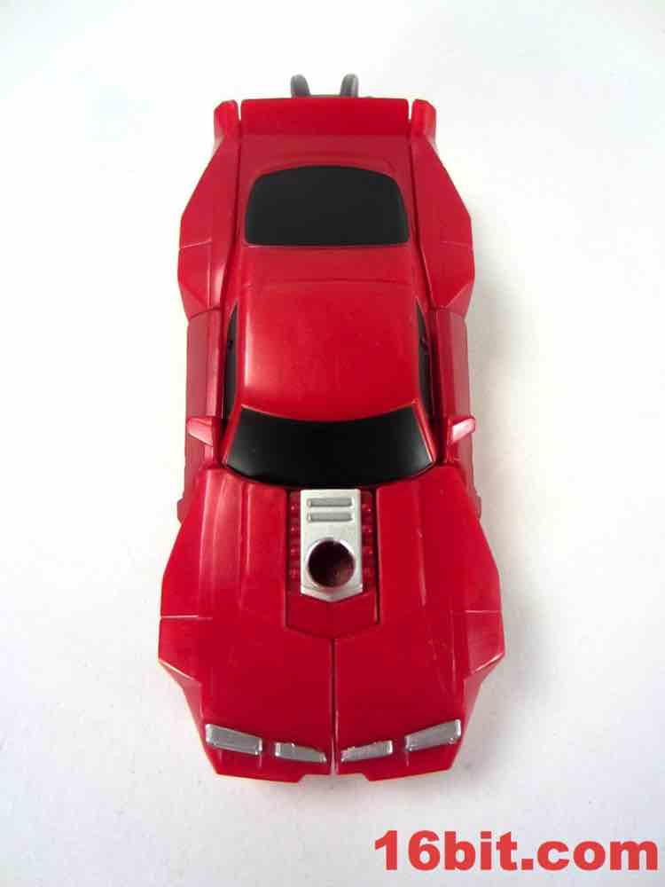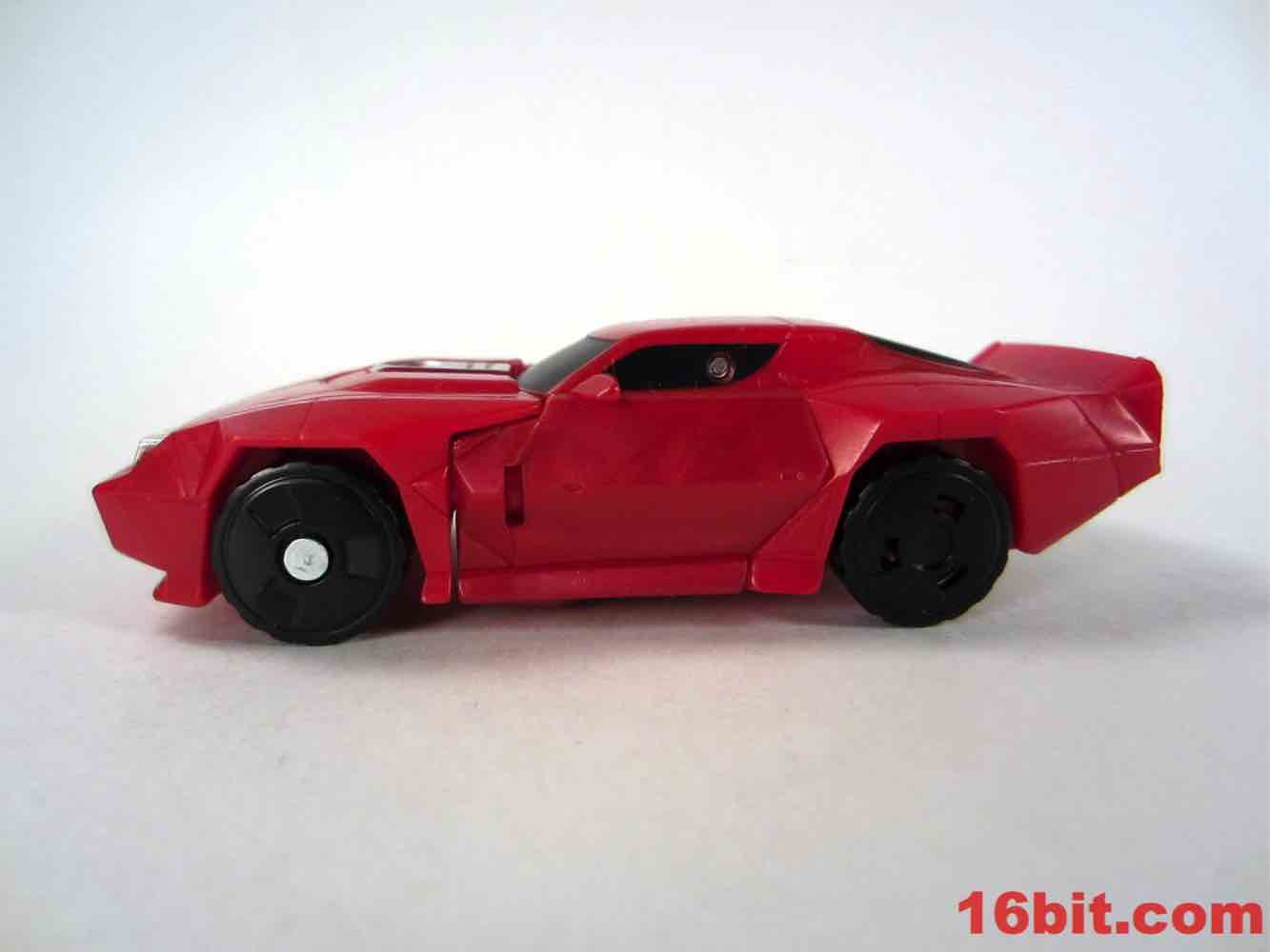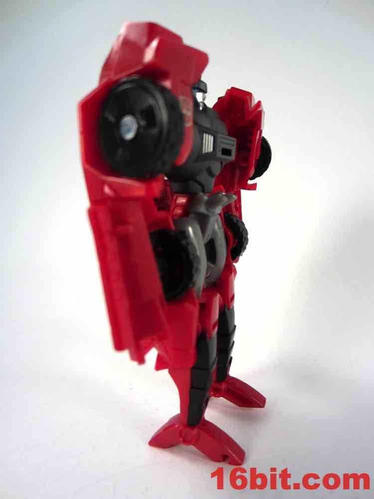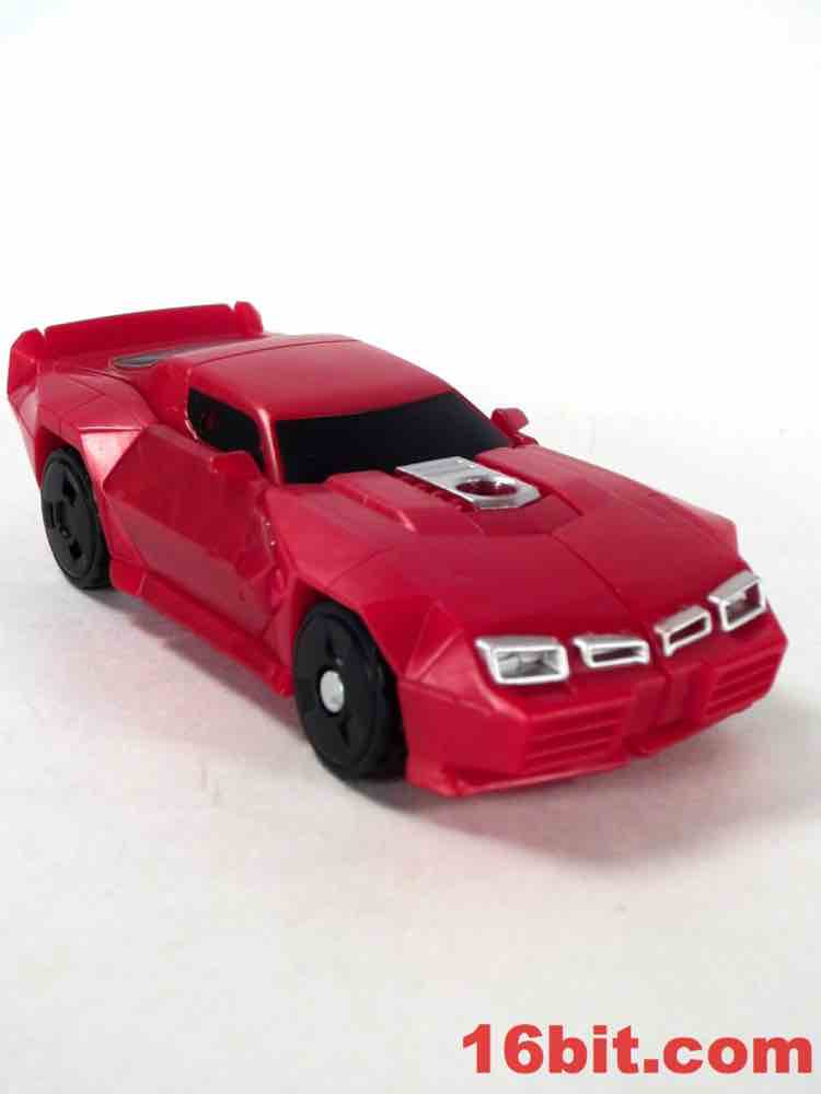 Transformation is more or less the same as Tailgate due to tolerance issues. I found the metallic red paint a bit tougher to tab into place, however once I did the fit was better than the previous white robot take on this mold. I personally wish these little guys could be even simpler, but it's pretty easy to fold up the arms, fold down the car's roof, and to twist the legs into place.
