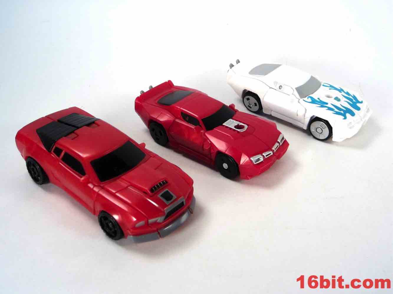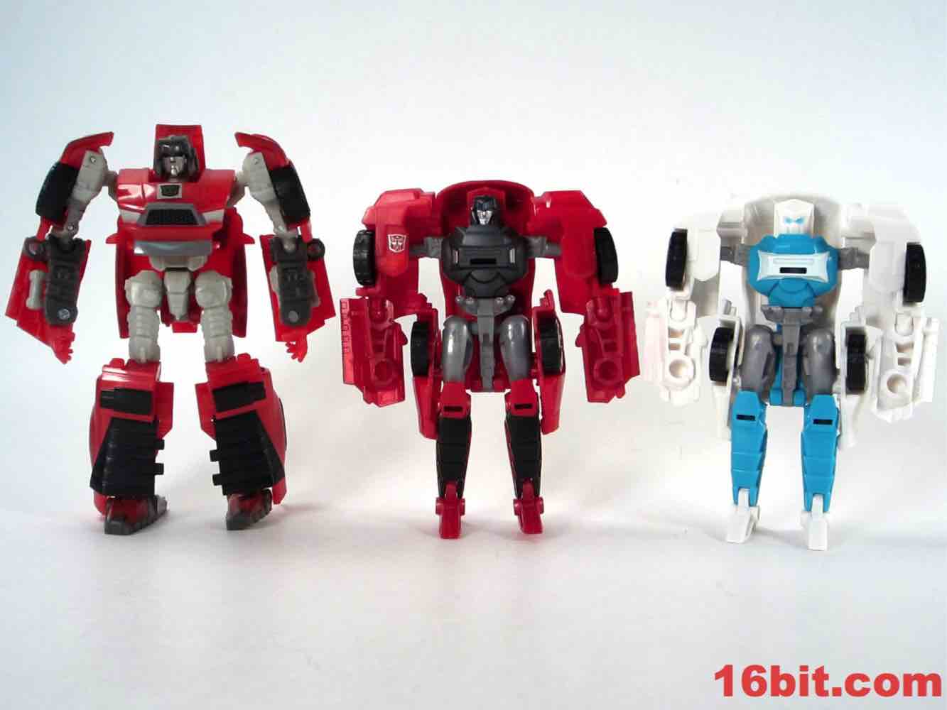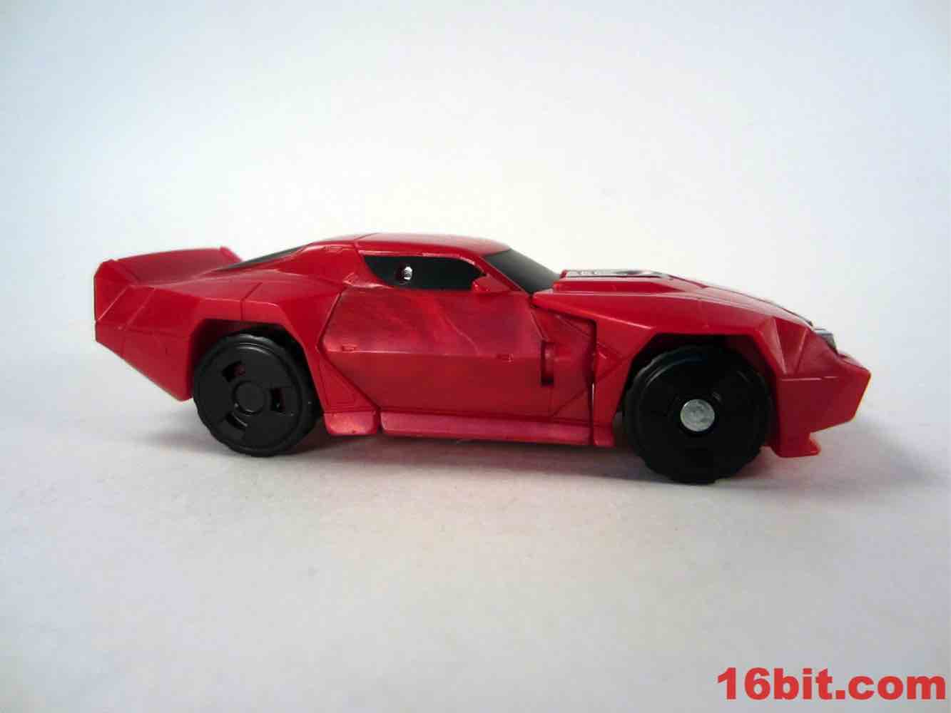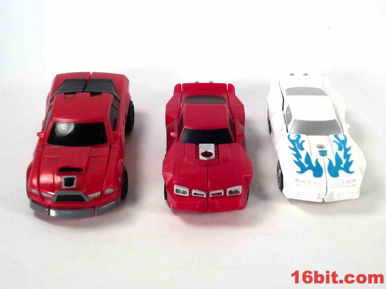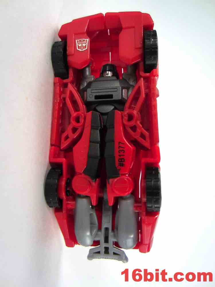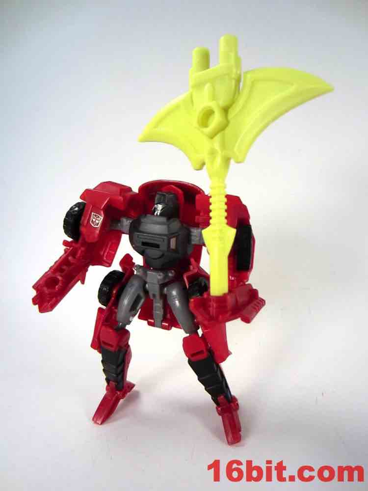 Transformation is more or less the same as Tailgate due to tolerance issues. I found the metallic red paint a bit tougher to tab into place, however once I did the fit was better than the previous white robot take on this mold. I personally wish these little guys could be even simpler, but it's pretty easy to fold up the arms, fold down the car's roof, and to twist the legs into place.