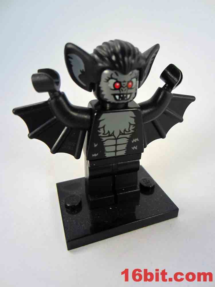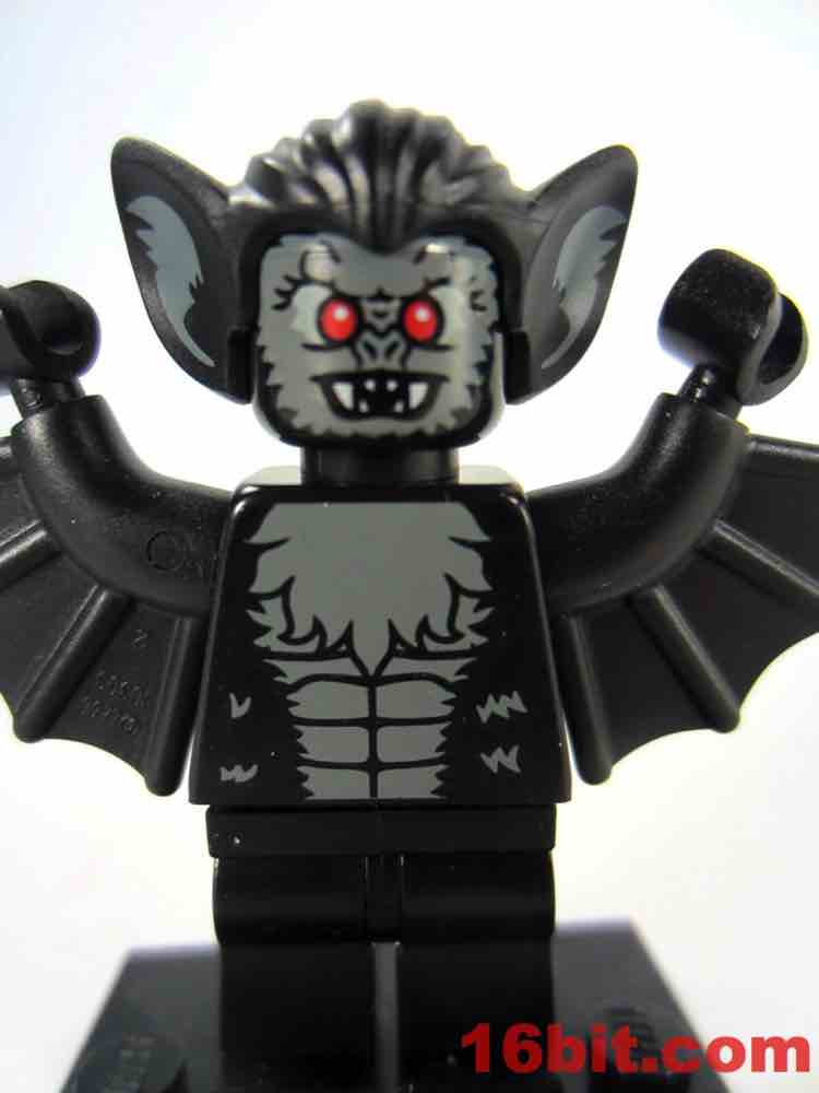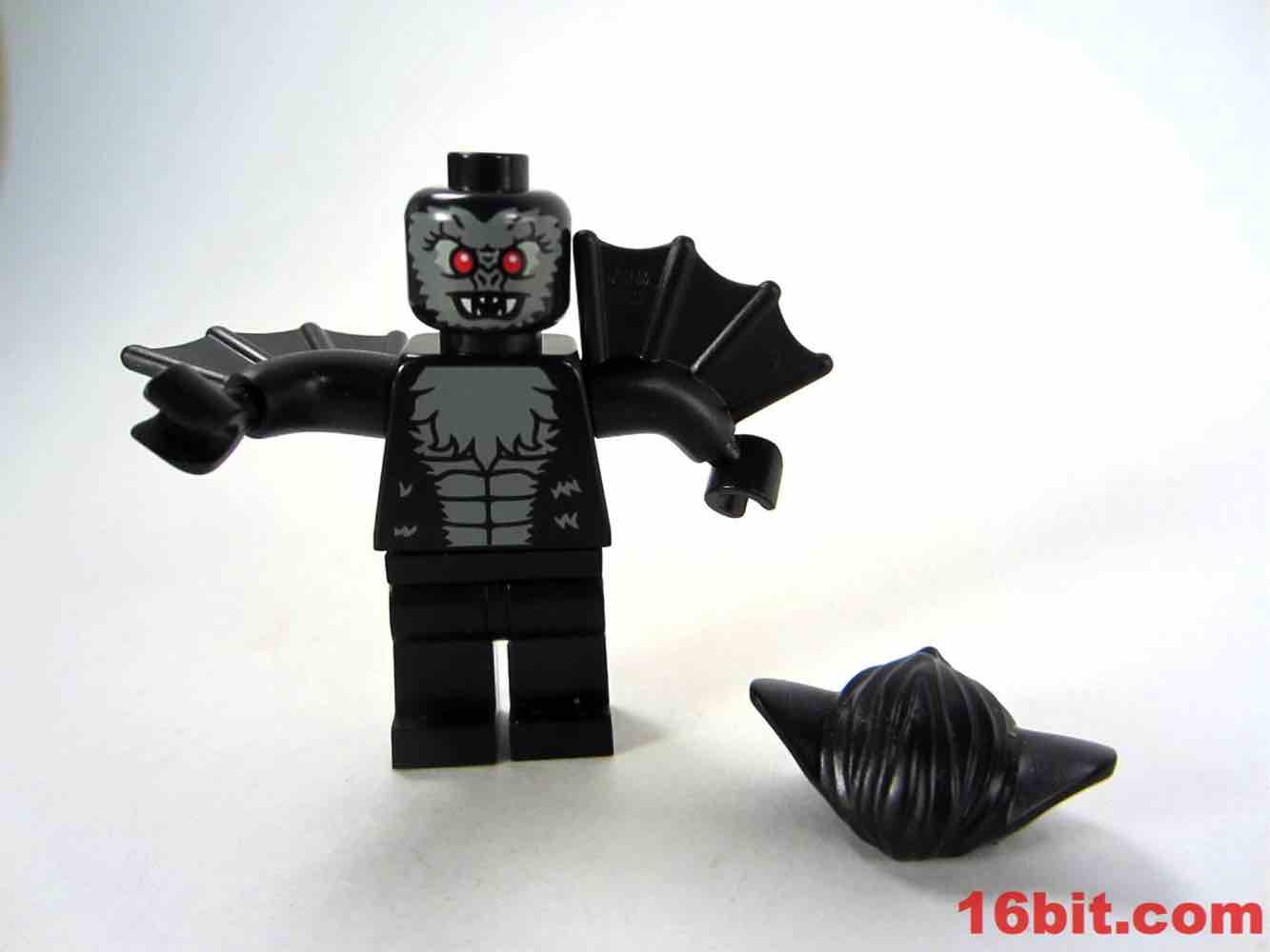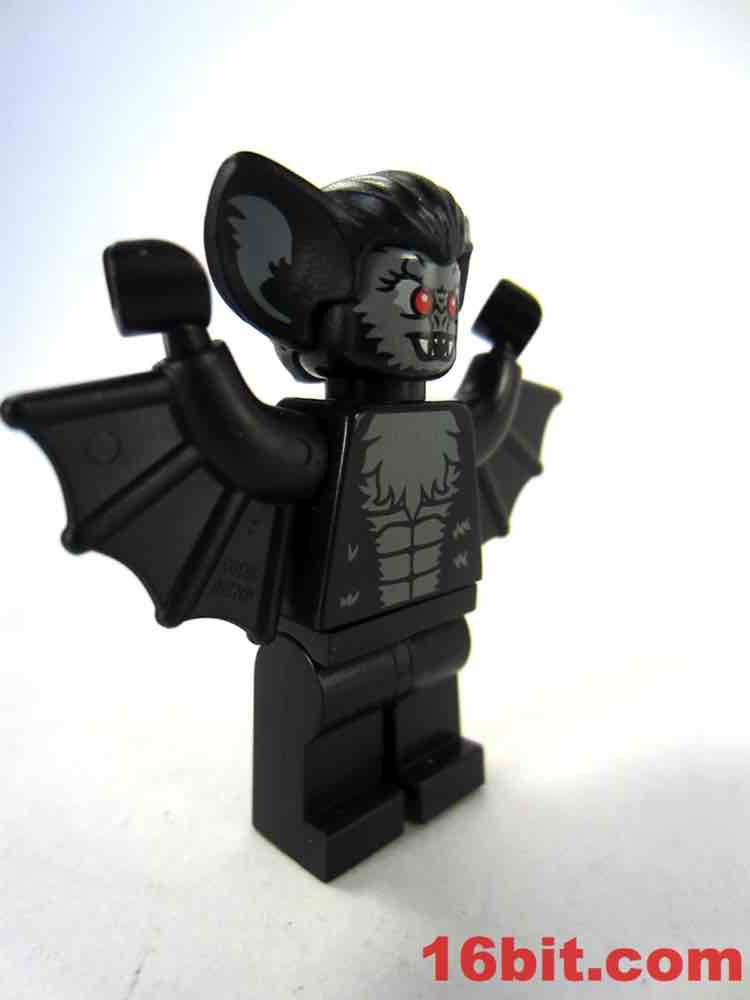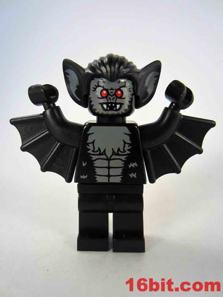 Coming up with new monsters is tough, and the Vampire Bat gave LEGO another grab at the bat body mold while giving you another creepy flying dude. The body was used for the Manbat in Monster Fighters but that one was brown, and even more evil looking. The figure has fundamentally the same build as a regular figure except the arms stick out instead of resting at the side of the body. The joints still rotate, and the fists still twist, but now he's in sort of a permanent "flight" position.