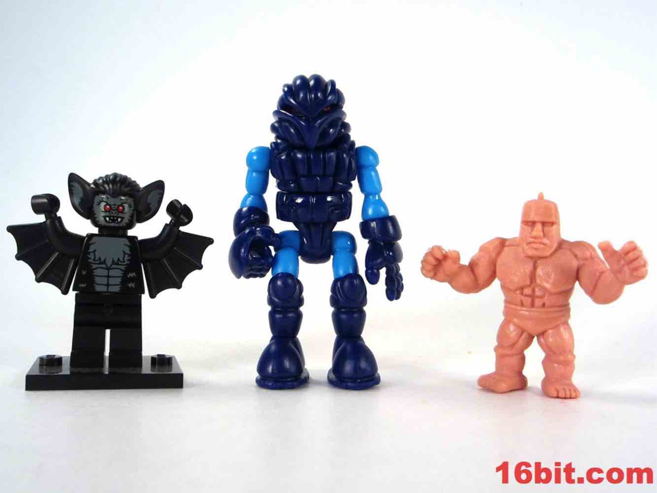 His head has a little more going on, with two shades of grey to offset the bright red eyes and white fangs in his mouth. His ridged brow and toothy mouth look pretty vicious, plus he has that upturned bat nose you've come to expect from finer fledermaus functions. It's worth noting that the hair and ears are a separate piece, a hat with painted light grey interiors to each ear. This is a nice touch, especially as an all-black figure tends to not have a bunch of detail by default.