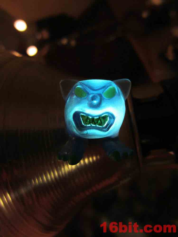 The figures make use of the same 10 molds we've seen previously, all of which are reproductions of the original Rocks & Bugs & Things figures from the 1980s. The big differences are that they're a hair smaller - only perceptible if you put them next to an original - with wholly new deco. The change to clear alters how they look quite a bit - the bright colors of the first year really bring the detail to life, while the clear sucks it away. Unless, of course, you shine a flashlight through the back of the figure, in which case it really looks spectacular.