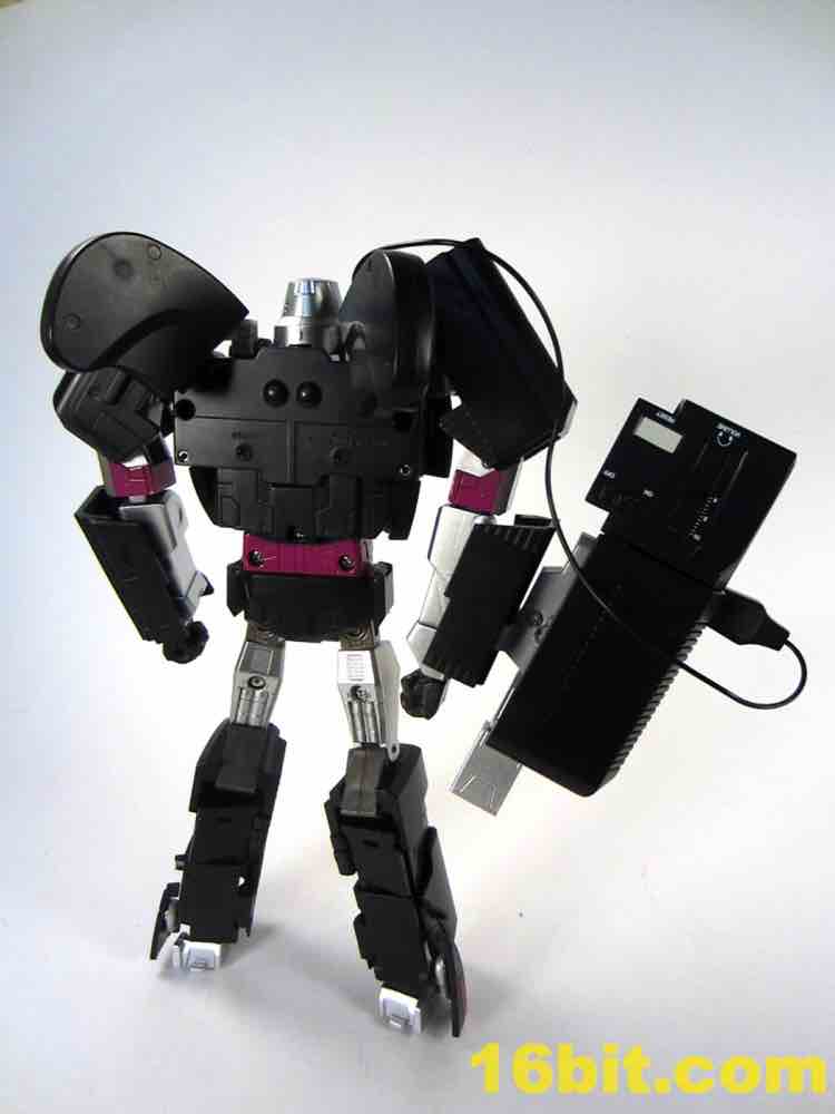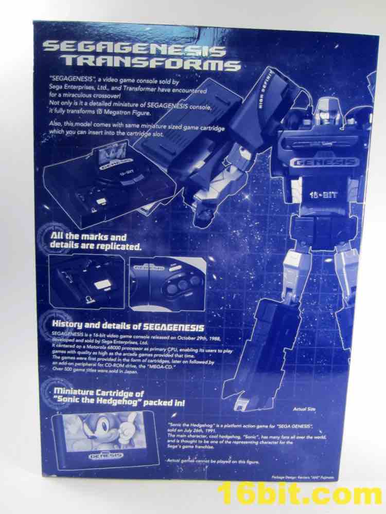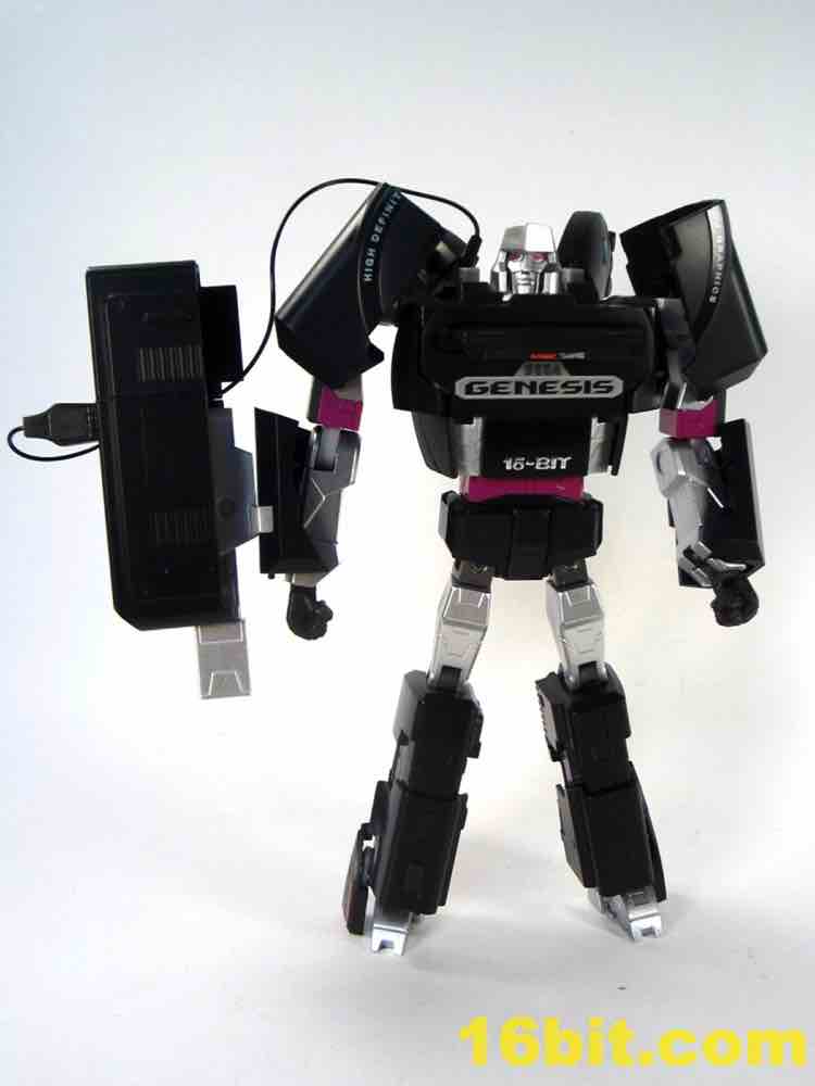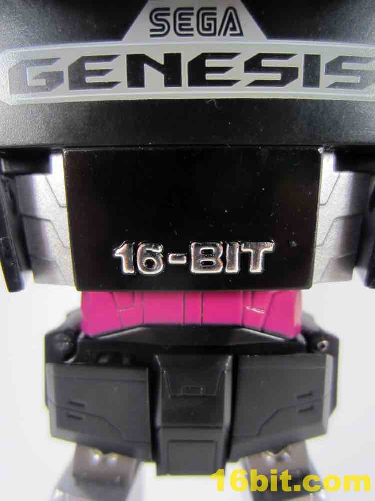 It's kind of funny that you can get an actual, working Sega Genesis and a Megatron for less than the price of this toy. Bigger ones, more functional ones, with electronics. The nature of collectibles is that you sometimes overpay for something for novelty or because you appreciate the premise, and this is one of those items. The toy is about the size of a standard Voyager-class (read: $20-$25) Transformers release with a bit more in the way of deco and moving parts. The odd arm cannon looks like it's capped by a USB connector for some reason, but that's nothing too special. What's unique here is that the toy was changed from the Mega Drive version with a smaller text reading "16-BIT" on his chest and purple has replaced the red stripes on his torso and arms. A few other minor graphical changes were also made, but when you get right down to it you're overpaying for some unique tampos on a 7 1/2-inch robot "toy."