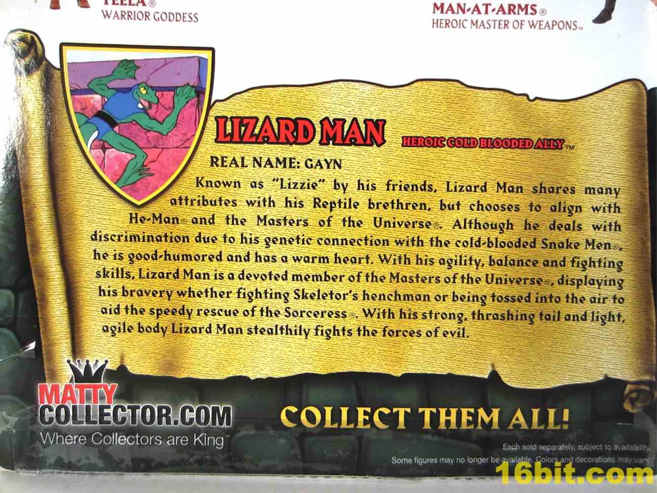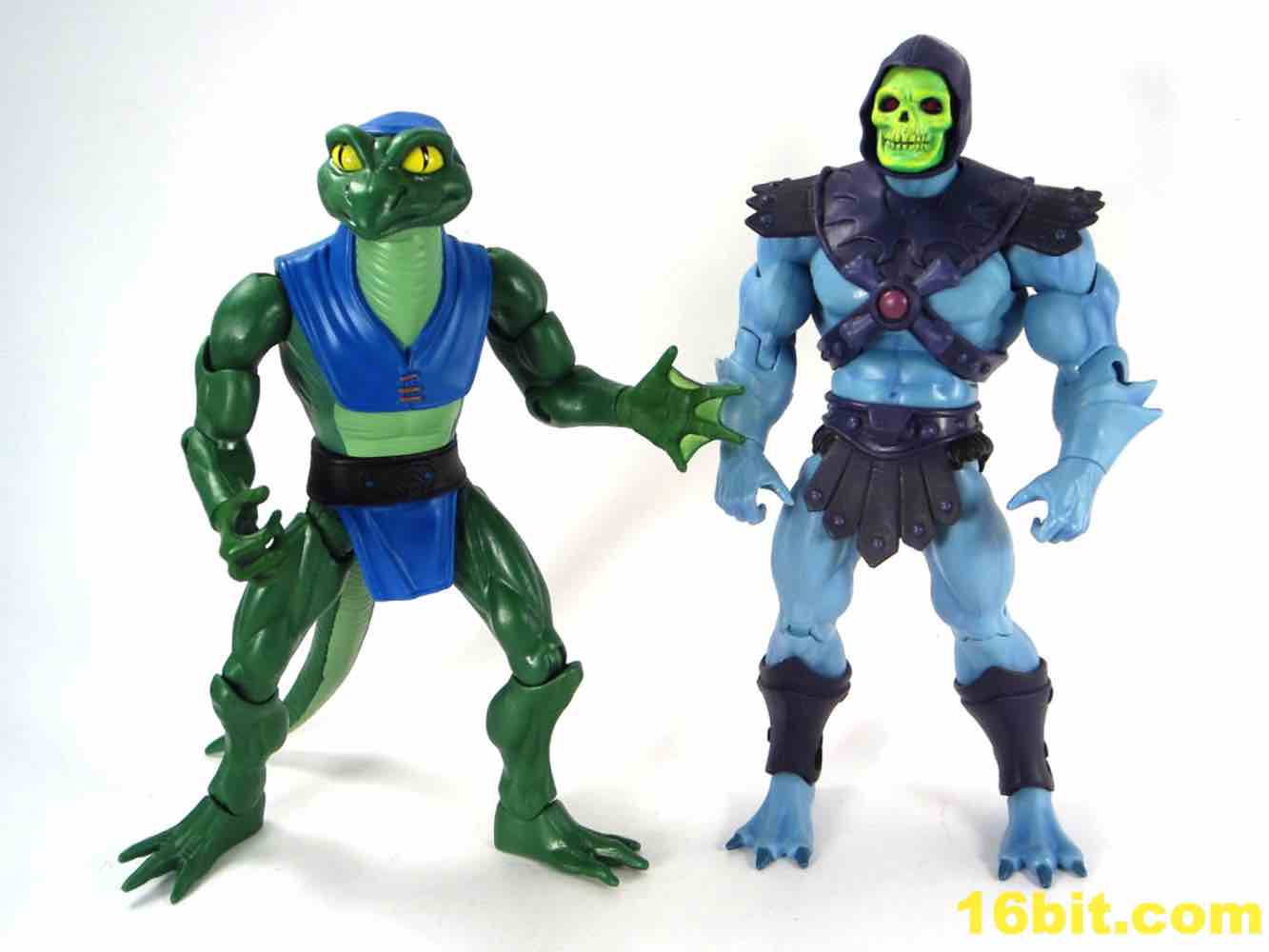 The long-term value of being a collector of this line is demonstrated well by Lizard Man. If you've been buying all the Skeletor figures, you may be delighted that Lizard Man includes no accessories for himself but rather sports Skeletor's sword from the cartoon as well as a specially molded glow-in-the-dark Diamond Ray of Disappearance from the episode of the same name. There's no Filmation Skeletor head yet but with the upcoming 200X head pack, odds are we'll see it eventually. Also now that we're in 2015, it's worth noting the price increases - the figure is $28 and Matty shipping is about $11. So if you see it for $40 shipped on Amazon or eBay, it's basically a wash. It's a neat figure too, if a little tall.