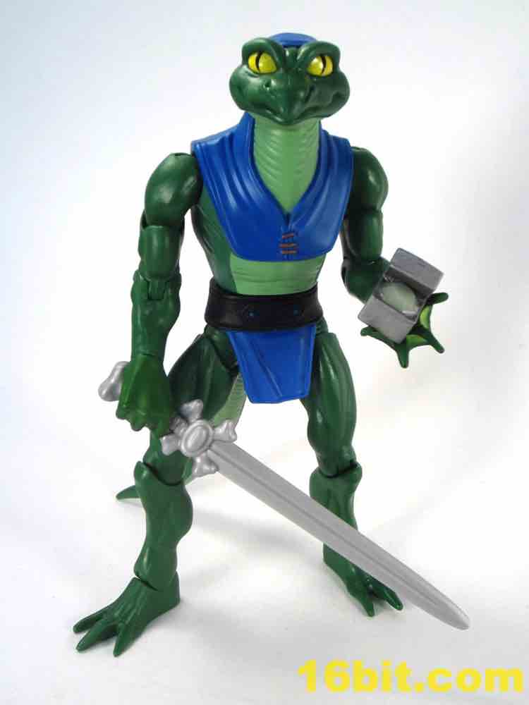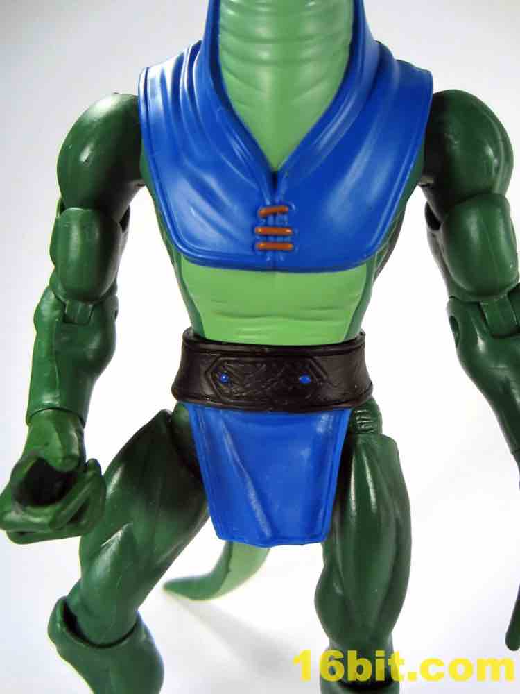 I like the clean, simple look and how it's a brighter and less overly beefy figure. There is no ab crunch - or abs, really - with the figure's look being dominated by his blue costume and long green hands. The tail connects to his loincloth/belt piece and is not in any way jointed. (Can't win 'em all.) As figures go I find it hard to really say anything else because it's pretty much perfect. If you look at it, you'll like it - little blue dots on the belt and yellow stitches on his hood add a lot to the figure's look, and thankfully show that there wasn't much cost-cutting on Lizard Man.