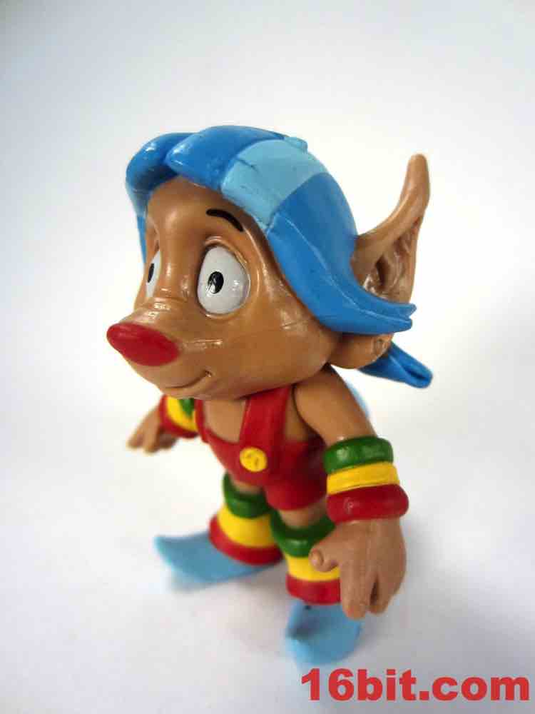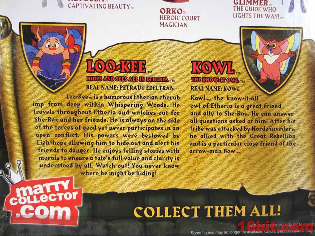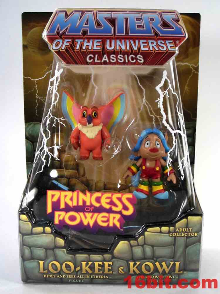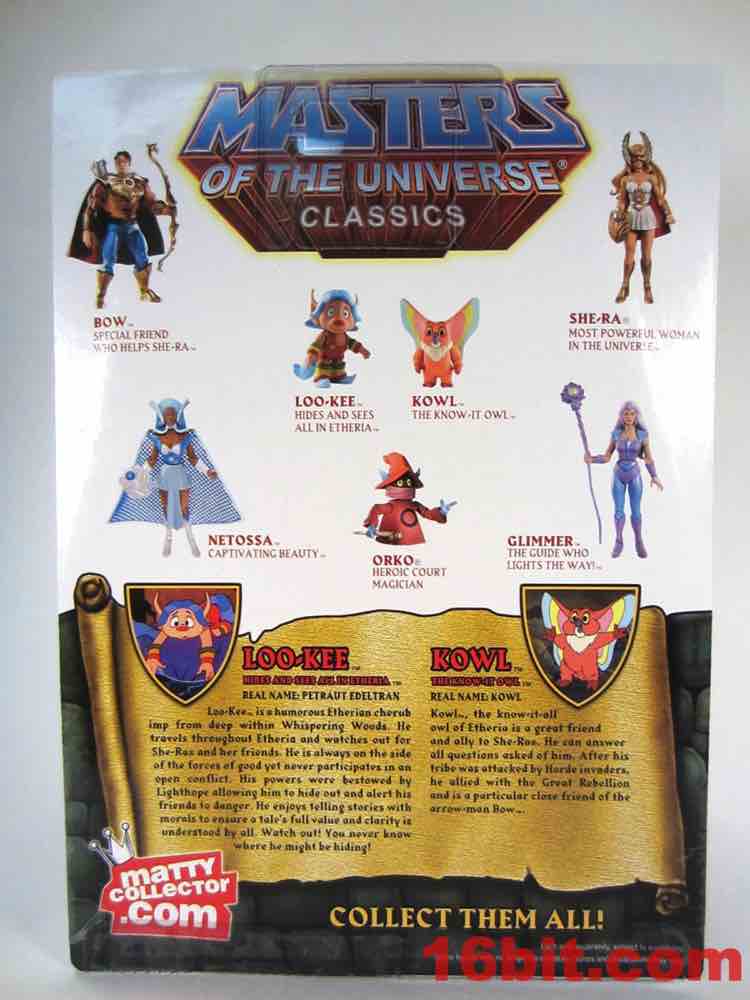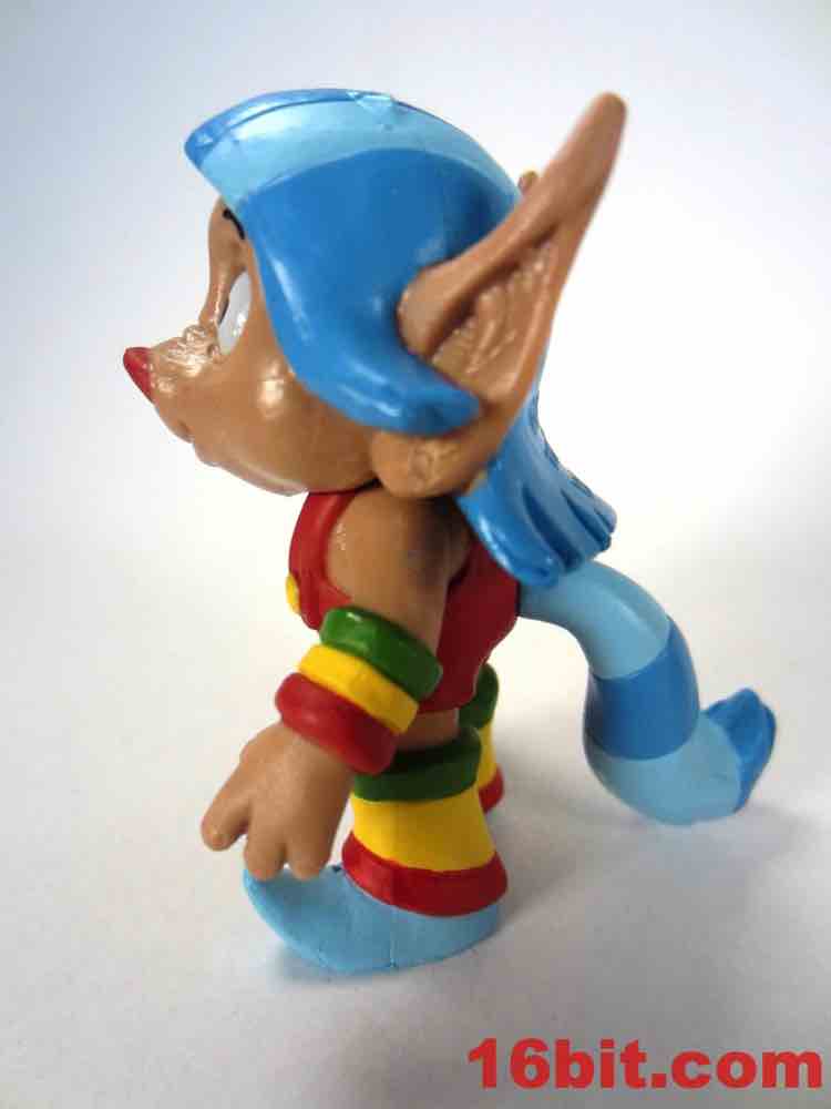 Loo-Kee is the new one. Etheria's brightly-dressed voyeur hid in each episode of She-Ra and also showed up in some of the magazine advertising, which as an avid reader of various kid magazines at newsstands in grocery stores I saw a bunch. The figure is based on the rodent-like blue-haired character, who dresses like the winner of a coloring contest awarded mostly based on their ability to keep within the lines. The wide-eyed Filmation-derived creature has pointy shoes and 4 points of articulation. Kid as I may, the paint job is really sharp and there's not a lot of smudging or bleeding - it looks a lot like those 1980s Applause figures, if those were actually fairly well-made. The paint isn't too glossy or too sticky, the color choices are all correct, and with the assistance of his articulated tail he has no difficulty standing. As sidekick figures go, this is about as good as they'll probably ever get - articulated hips would be overkill here.