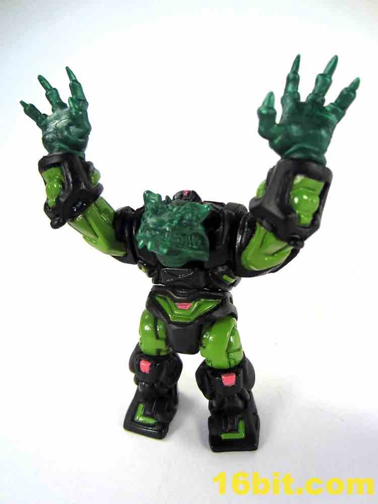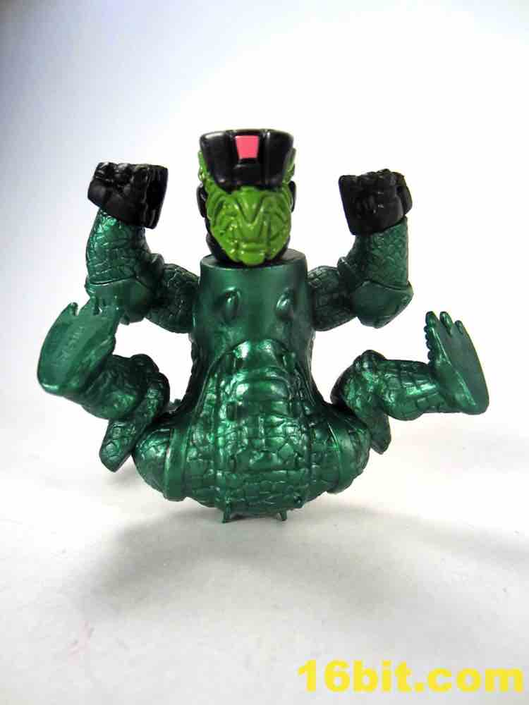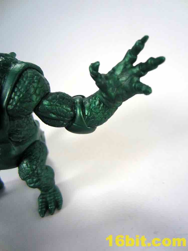 At 2-inches tall, this figure isn't particularly tall - but he's very wide. The arms are bent and spread out about 3-inches wide, with big clawed open hands which swap out easily with those of the Armorvor. This is notable because the pegs for the hands on the Armorvors, Ggripptoggs, and Goliath are all swappable and the end result is delightfully goofy. Of course, you'll probably just want to leave it as it is because the sculpting is really something. Each hand has fingerless gloves, and the elbow pad has a great sculpted gator icon on each one. Marvelous.