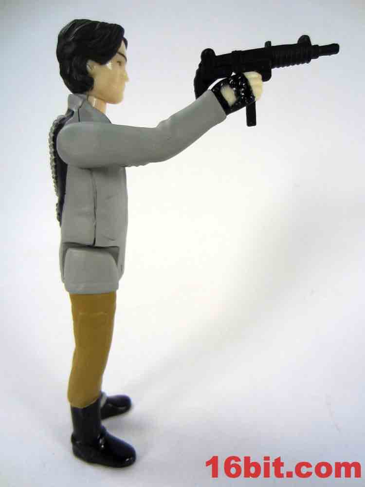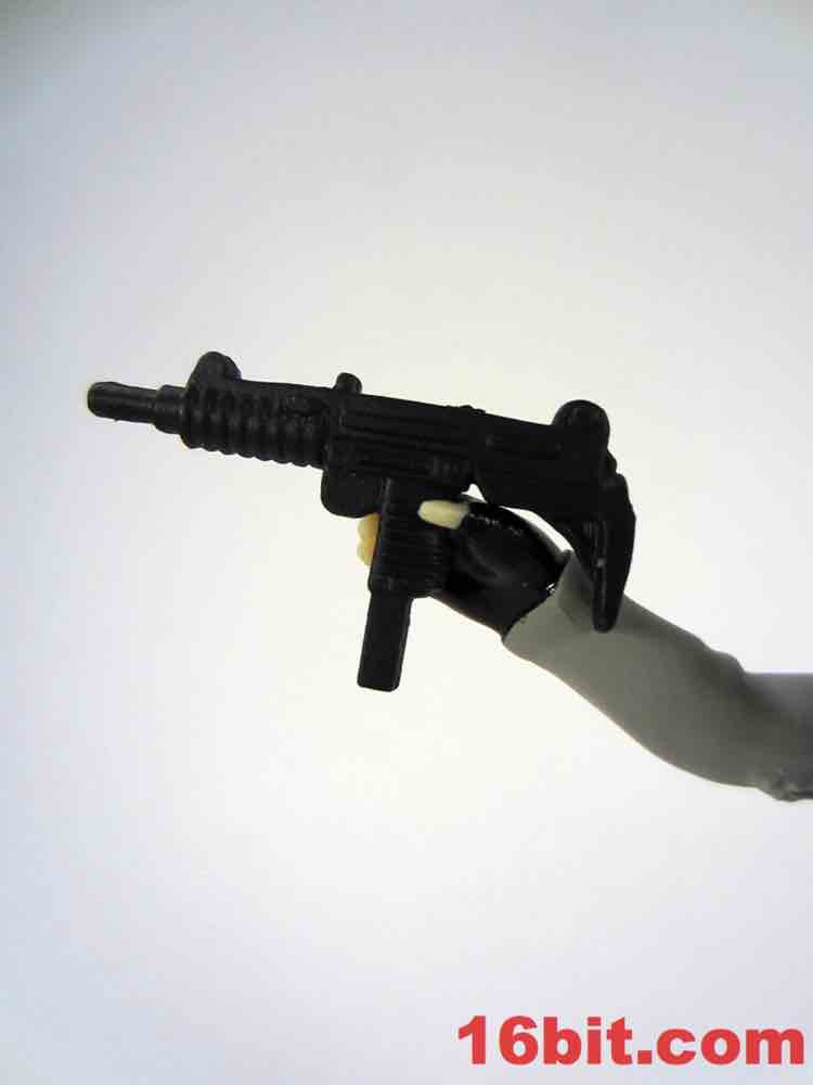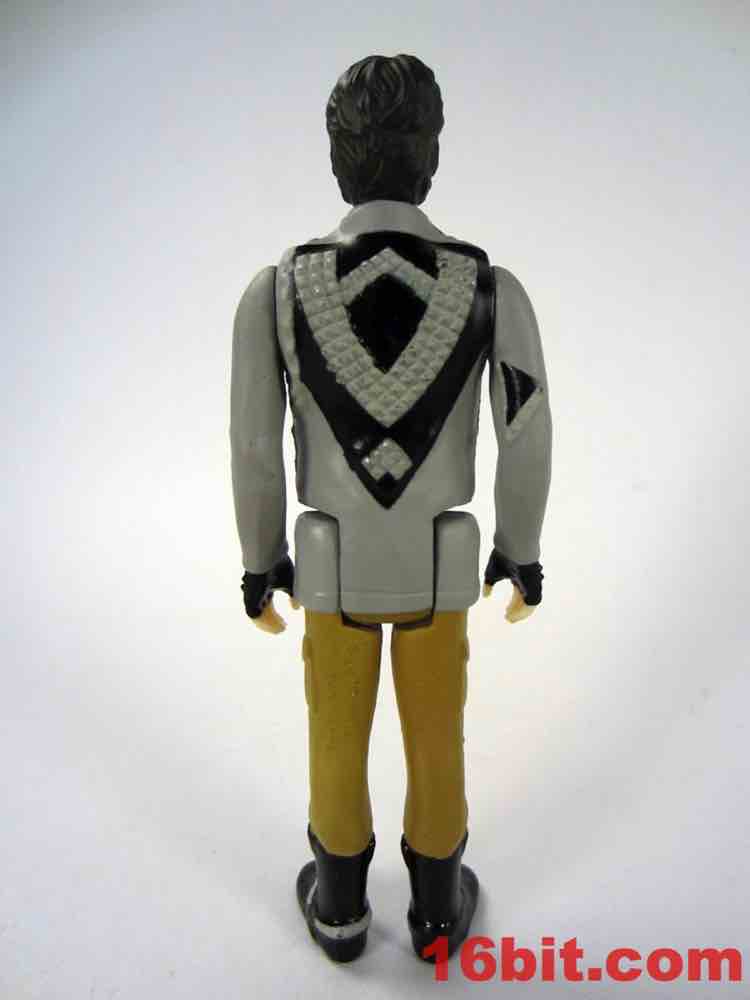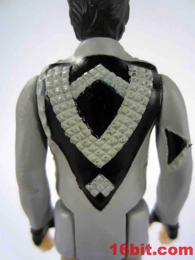 The back of this 5-jointed figure is where it really sings. The glossy black gloves and jacket carry through, but the collar shine also appears as a design on the back. The contrast is more exaggerated than the film prop, and it's not a perfect match. When it comes to older figures I sort of appreciate this, because when you look at older Star Trek and Star Wars toys there's a certain sense of non-accurate accuracy. It's clearly the character you mean to represent - all the parts are there - but sometimes the colors or proportions are off a bit in a charming way. Arnold's jacket is a little too light on the figure, with the black seeming a little too dark.
