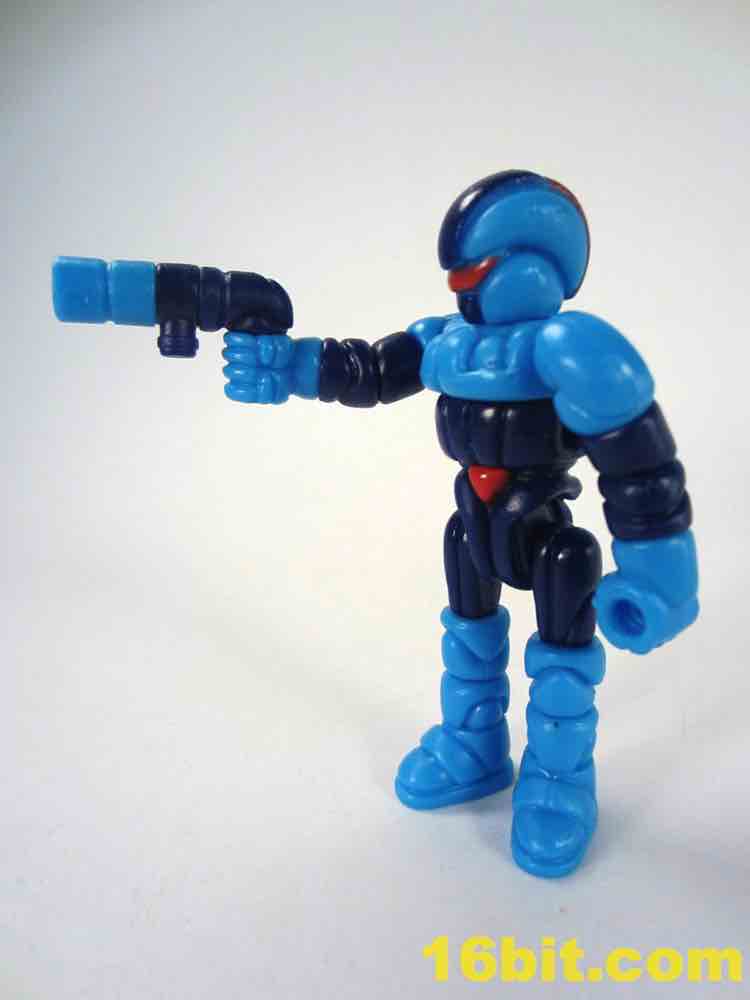 Fans of the M.A.S.K., StarCom, or Dino-Riders figures will see this guy as a distant relation. He's about the same size, but every piece of him can rotate freely - this is great for shoulders and wrists, but unless you plan on building something swivel elbows aren't overly useful. These pieces can be used to change the bends in his elbows slightly, but for them to actually bend requires the purchase of a $4 Swing Joint set. There are numerous ways to mix up this figure's build, but there's nothing wrong with the default either. The knobby look of these guys used to be augmented by black painted panel lines, and now it's largely unpainted giving it more of a toylike feel. The bright red visor paint is applied cleanly with no dark plastic showing through, which is no small feat. Just as amazing, there's a dark blue stripe on the helmet which is painted to perfectly match the dark plastic. If you collect a lot of toys, you know how rare it is for a painted piece of plastic to perfectly match the nearby non-painted plastic supposedly of the same color.
