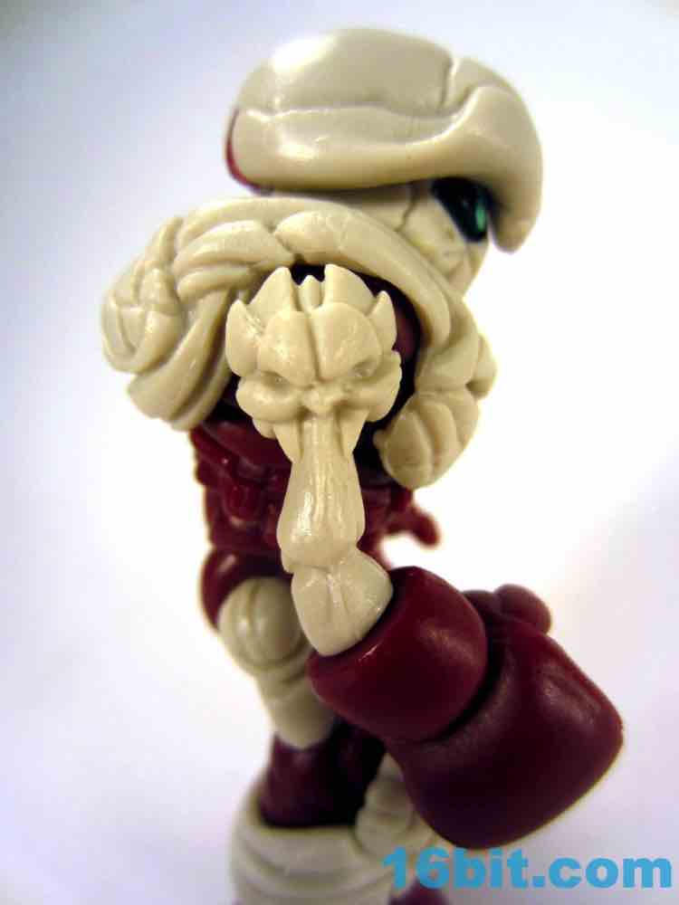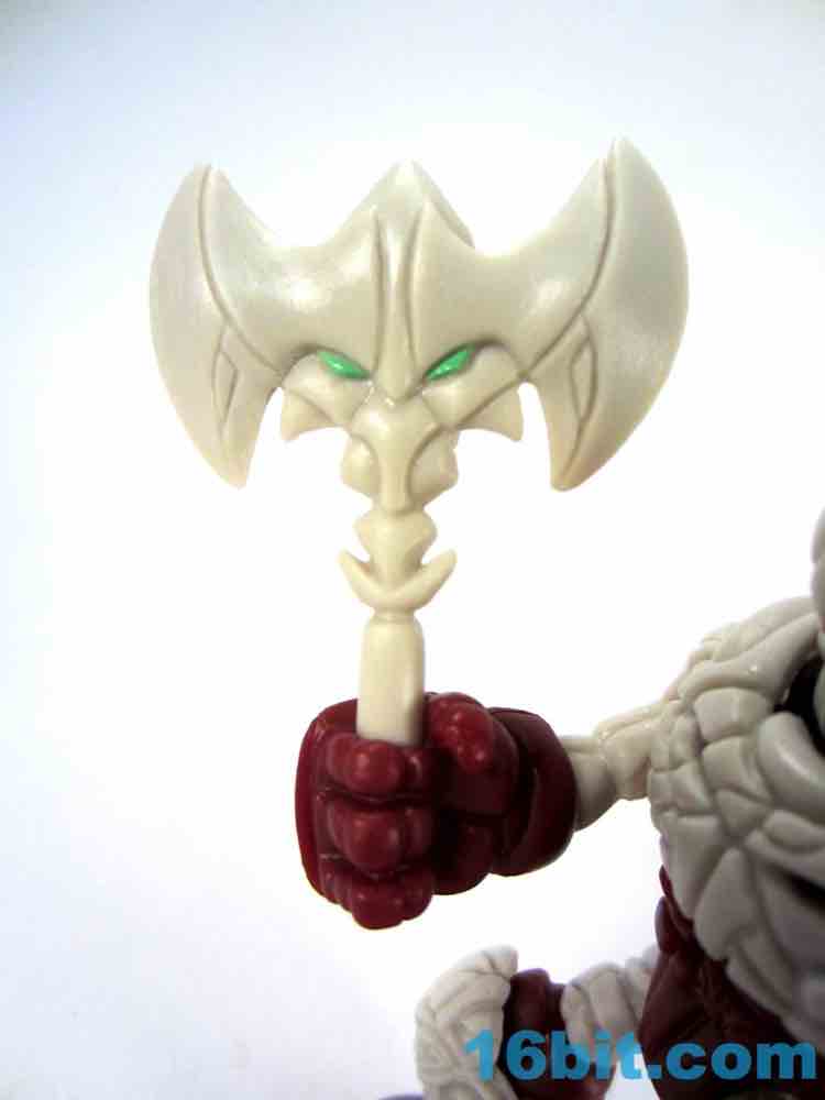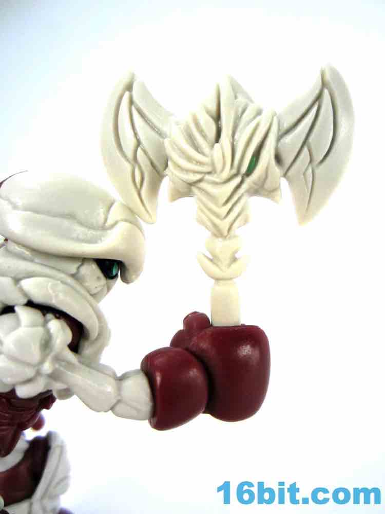 Designer Matt Doughty mentioned the figure was inspired by a classic Spawn release, and it shows - the figure is loaded with detail. The axe had a different face on either side, each of which has different levels of sculpted detail. Each of the bony bits is pretty gnarly, showing more lines and grooves than usual - the head has spikes and cracks all over. It's also worth noting the head is one of the new two-piece styles, so you can pop off the dome and switch it with other heads if you're so inclined. The results are quite nice, so I'd suggest grabbing at least two of the Skeledens so you can mix up the faces. Giving the all-blue figure the painted-up face reminds me a lot of Mega Man for some reason, and who doesn't love Mega Man?