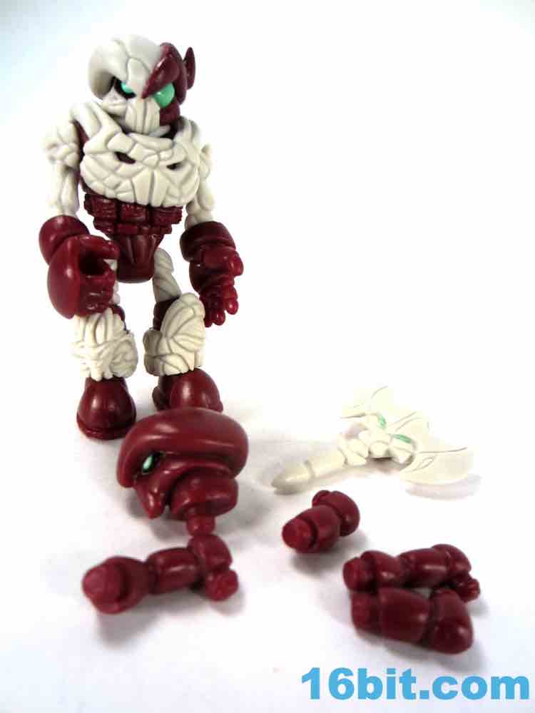 For those of you who are just joining us, Pheyden is really the main driver of the Glyos system by Onell Design. The intergalactic traveler is jointed, durable, and can be dismantled and swapped around - this figure in particular has 23 parts including the extra parts you'll probably lose later. What makes it particularly exciting are the 10 "bone" parts which replace or clip over a typical Pheyden, giving you more or less the same articulation with more options. Armor bits slide over the shins and chest, you can replace the shins and arms, the head is new, and of course there's a big (and surprisingly painted) axe. It's $4 more than a normal Pheyden, and it's hard to say it's "worth it" but it certainly is interesting enough that I'm pretty glad I bought it (and will be buying the inevitable glow in the dark version later).