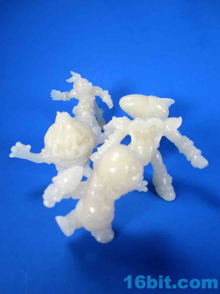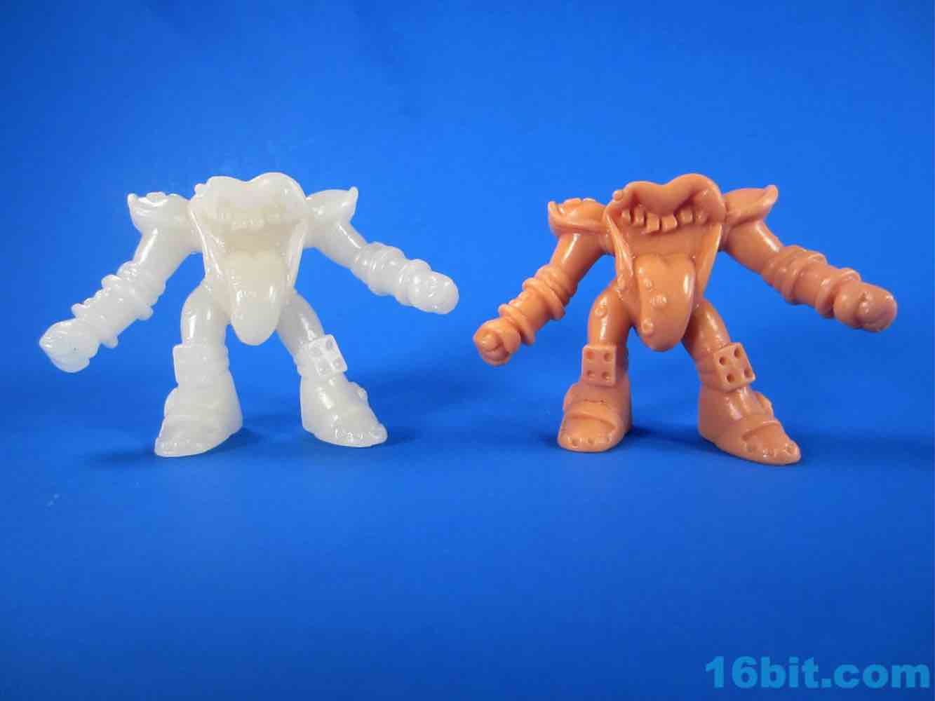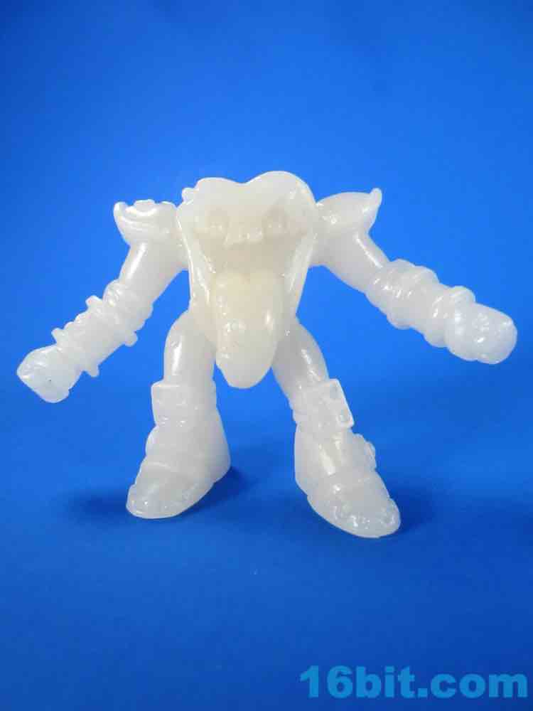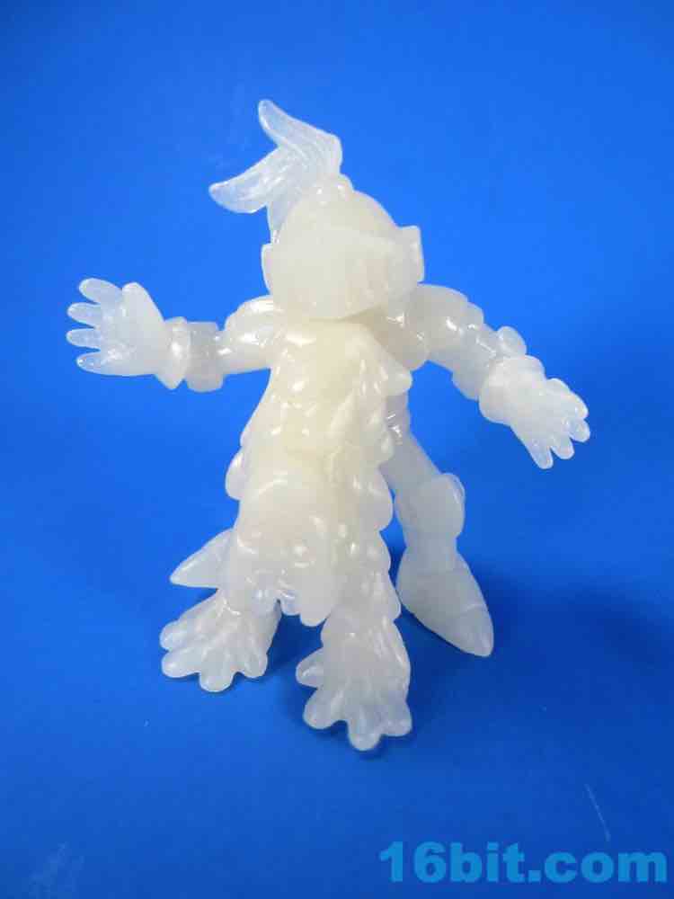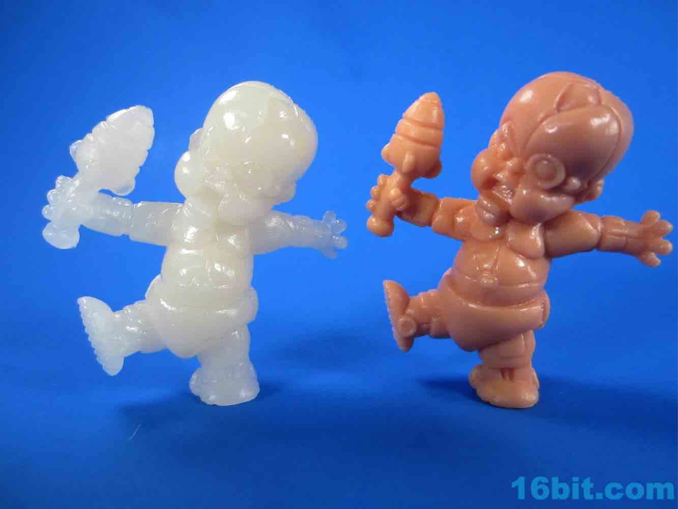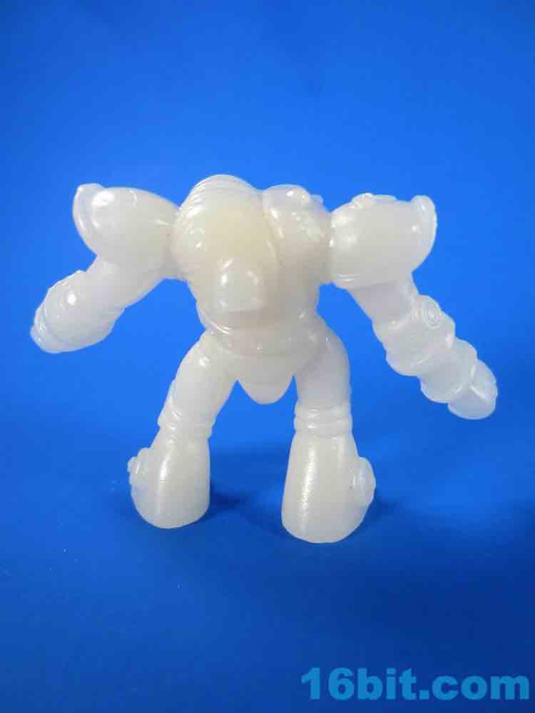 Rounding out the glow group is the robotic toddler Cry-Borg, which you may recall as the #1 vote-getter from round 2. The figure still balances just as well in glow, and the sculpt catches the light nicely. The open mouth, tiny eyes, giant head, and other bits and pieces really shine through the limitations of glowing plastic almost as well as the Grimm Gourd.