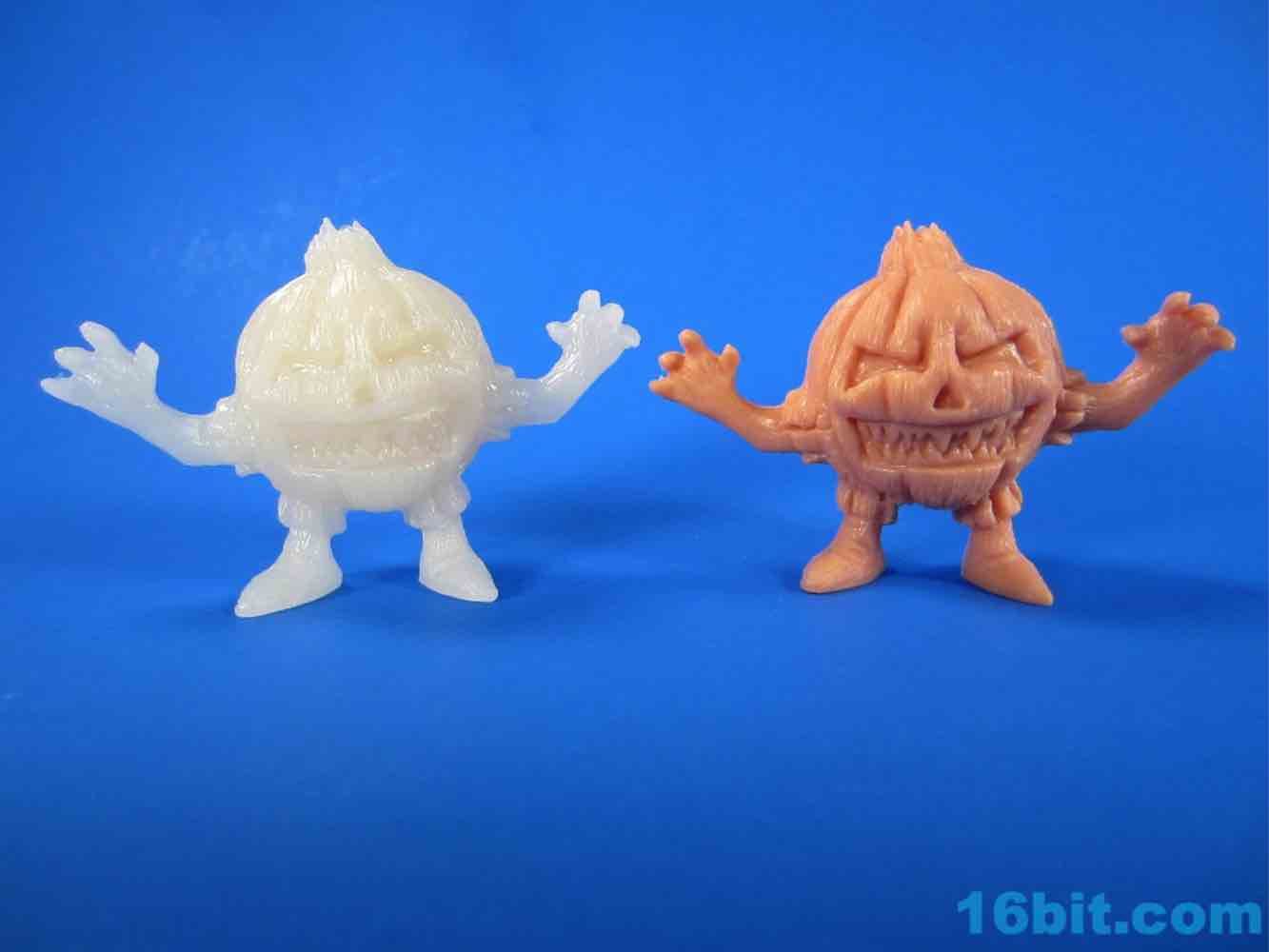 A perfect fit for glowing plastic, Grimm Gourd brings you the glowing jack-o-lantern you crave. Many figures lose detail and texture and visual detail when cast in translucent glow plastic, but this one seems just fine. The various lines still show through, and if he's brightly lit he looks like some kind of a mutant onion. It's really quite remarkable, and it shows that you can do some pretty amazing things with glow plastic if you sculpt it right.