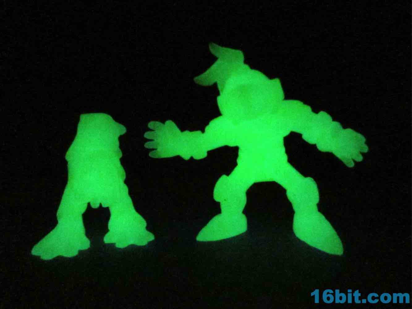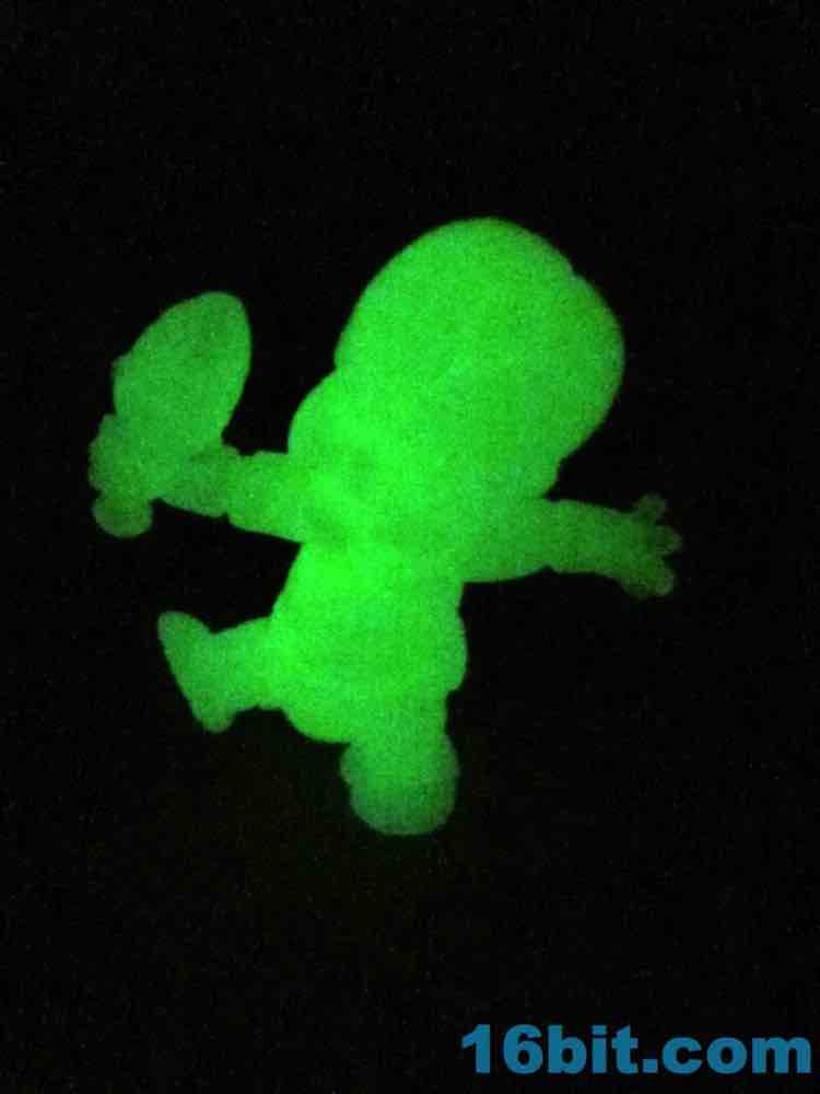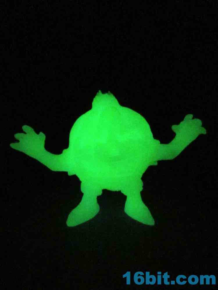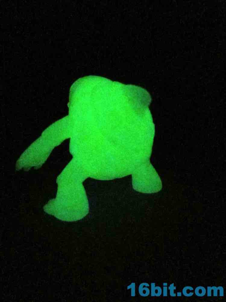 Nothing particularly astonishing happens after exposure to light and the glowing begins, as the silhouette isn't as obvious to read as some of the other figures in this line. Still, the design has aged pretty well and the gross-out giant tongue mascot figure works well in these sickly colors. I bet it could look even sicker, but that's tough to do with mono-colored figures until we start getting into the green speckled jellybean-type coloring. And I bet that'd be pretty cool.