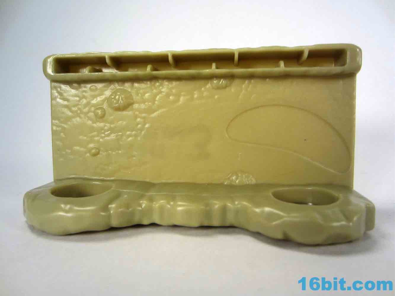 The base is sort of neat - you can see what they're trying to do here. The sculpting is nice, but sometimes you can't be two things and do them well. The big goggles get in the way of it looking like a nicely-sculpted dirt display base, and at least my eyes aren't good enough to see the backdrop cards as 3D when I look at them. It's almost great - the unpainted design and sculpting aren't at all bad, but it's just not a practical feature that works for me. It does have a little indentation for Jedediah, though, which is sort of nice. If it was just a small figure and a display base, I'd have been plenty happy with it.