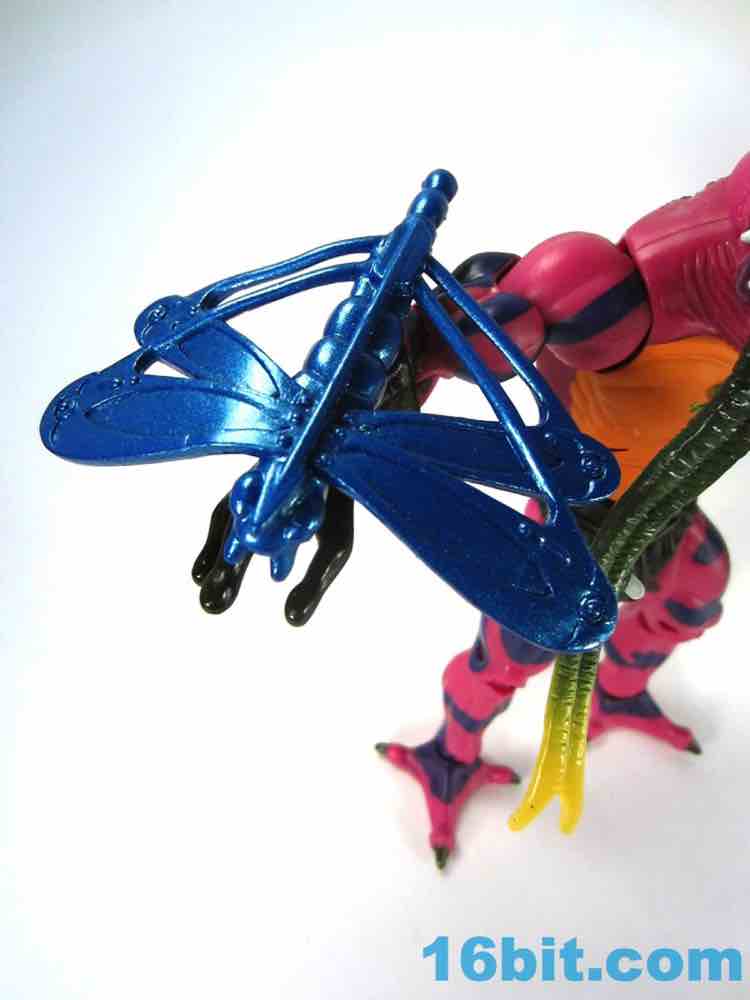 Given the new hands, heads, torso, and feet, I didn't think there would be a big accessory budget but it turns out there was. We get another of the increasingly dreary Snake Men staffs, this time a dark purple one with metallic purple eyes and teeth. Given the nature of his hands, it's still somewhat awkward for him to hold it. This is joined by a metallic blue dragonfly crossbow which clamps snuggly on his wrist. It's light on deco, but that blue paint is really pretty. Nice job, Mattel.
