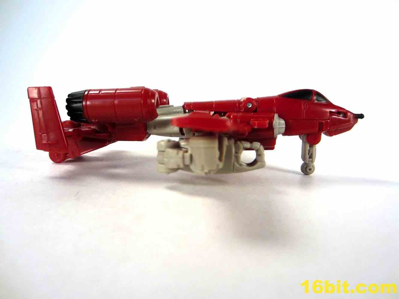 The last Cyberverse Powerglide was pretty good, a movie toy that's passable as a modernized update on the A-10 Warthog who apparently loves human women. This toy borrows heavily from art based on the character, in particular the original cartoon, rather than the redesign in the IDW comics or even the original toy. This is for the best - he looks pretty much like you would imagine him to be, assuming you were a fan of the original cartoon.