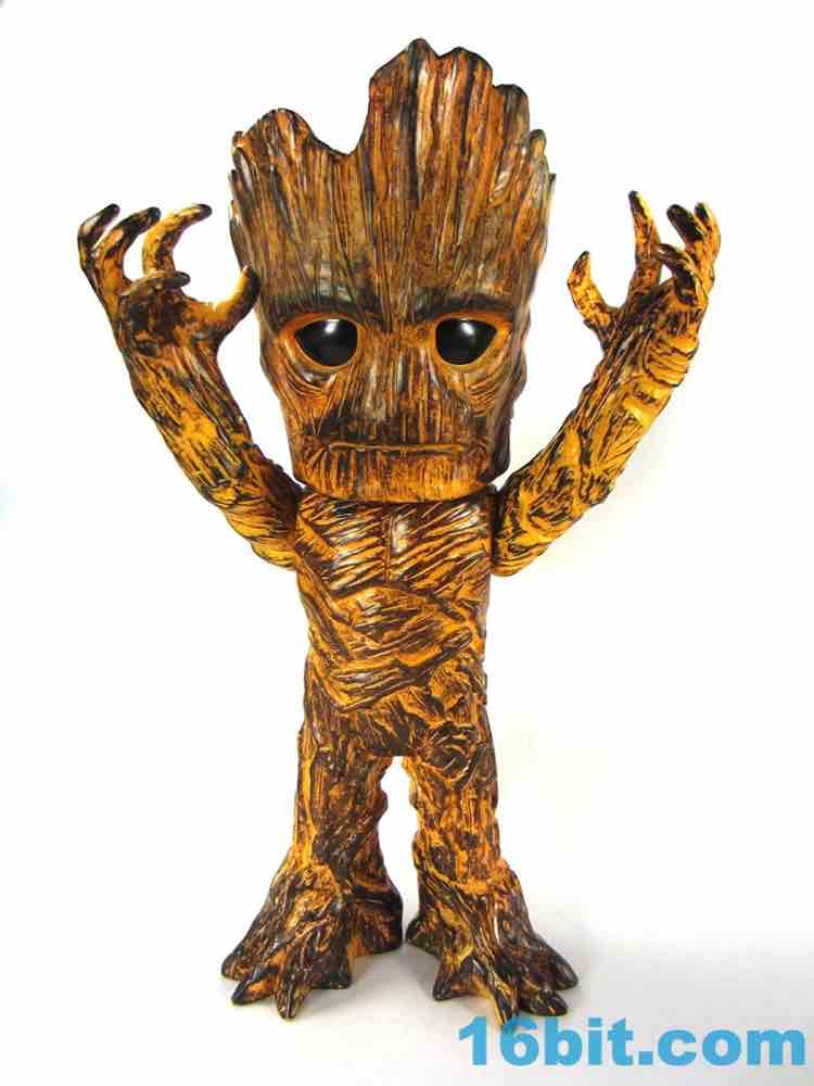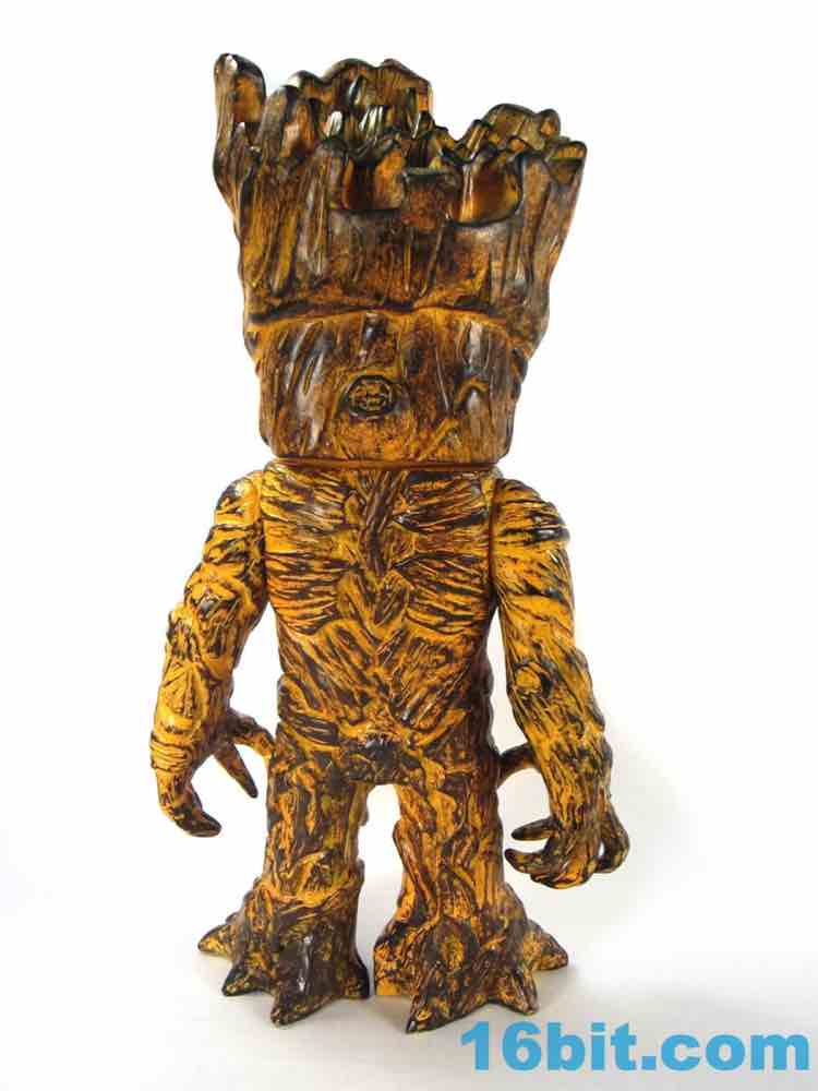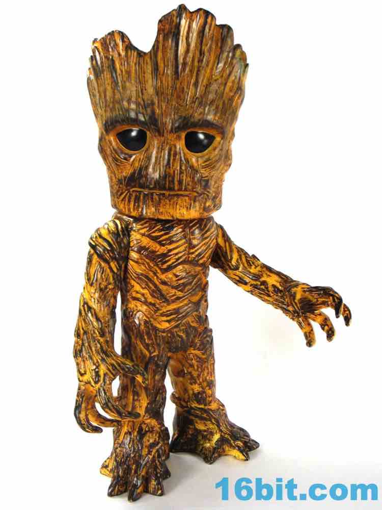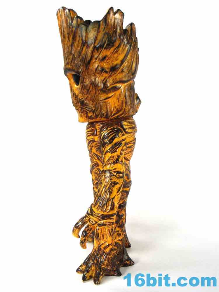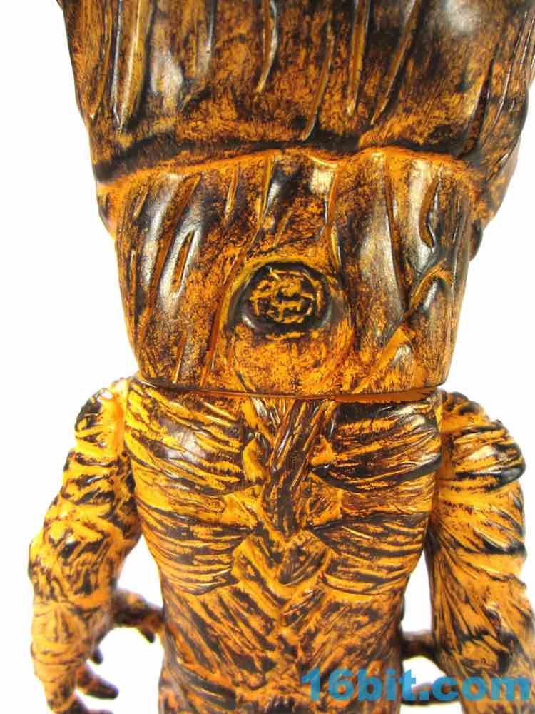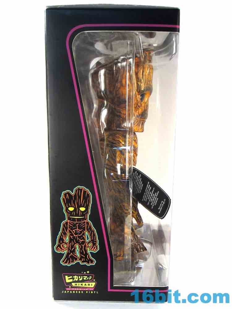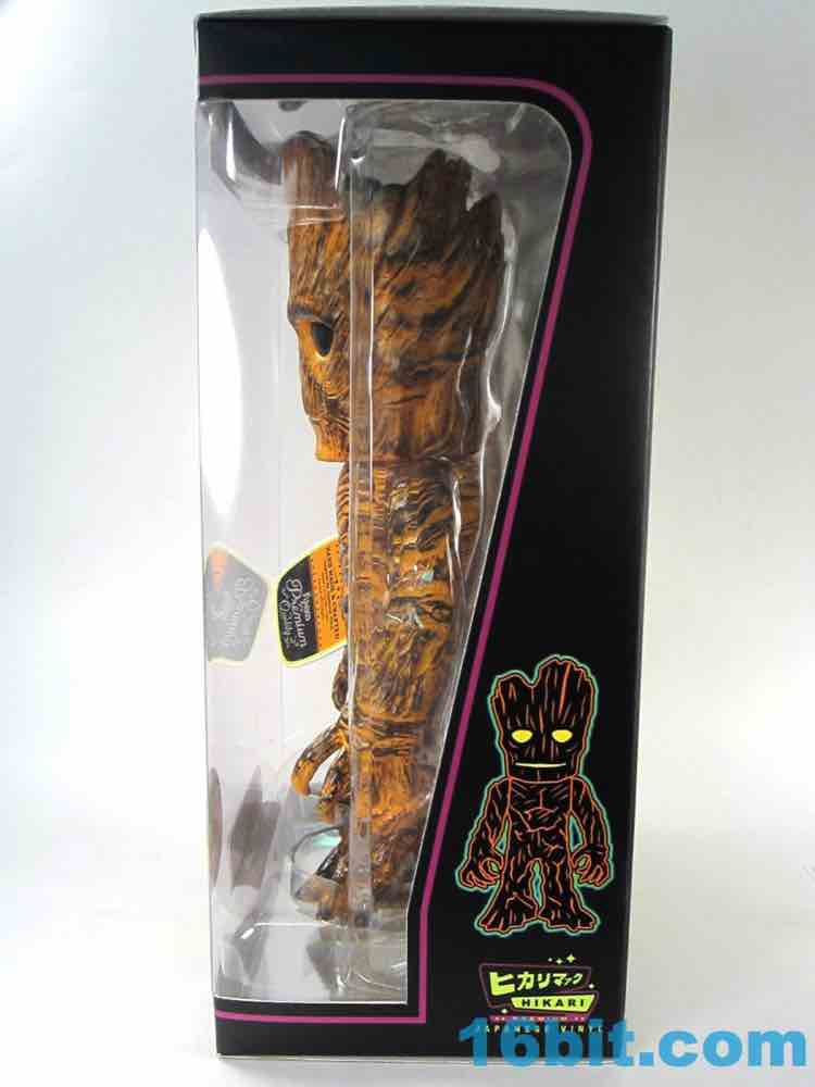 This one has a finish that I can best describe as a weathered tiki or surfboard. The coloring looks like wood with worn-down orange over it, so there are all sorts of etchings and wooden splinters you can see in the figure which really pop well with the orange wipe. I assume all of this is lost in the clear versions. His face isn't exactly happy, but it's similar to the personality of the big Hasbro figure from last year. It's also taller - Hikari Groot is about 10 1/2-inches tall at his highest point, standing tall above the other Hikari figures I've bought so far.