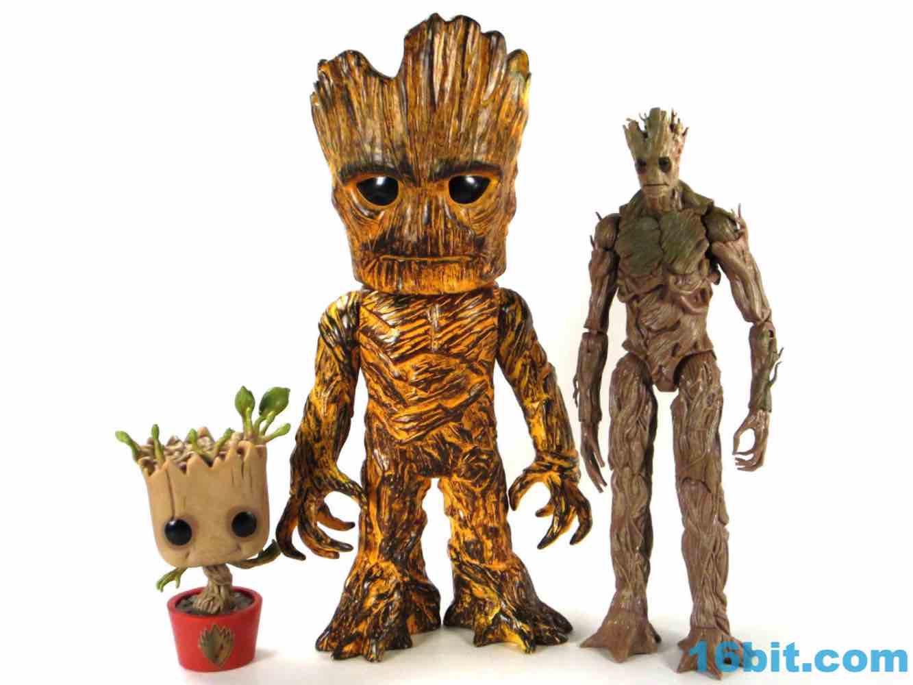 Built like the other figures, Groot has an articulated neck and shoulders for a grand total of three points of articulation. So that's not terribly impressive, but the figure itself really stands out on a normal desk of toys. The orange is bright and looks like an old, worn-down toy which means that compared to bright glittery figures it's not quite as jolly. Groot doesn't come off as a happy toy, but well, he is Groot.