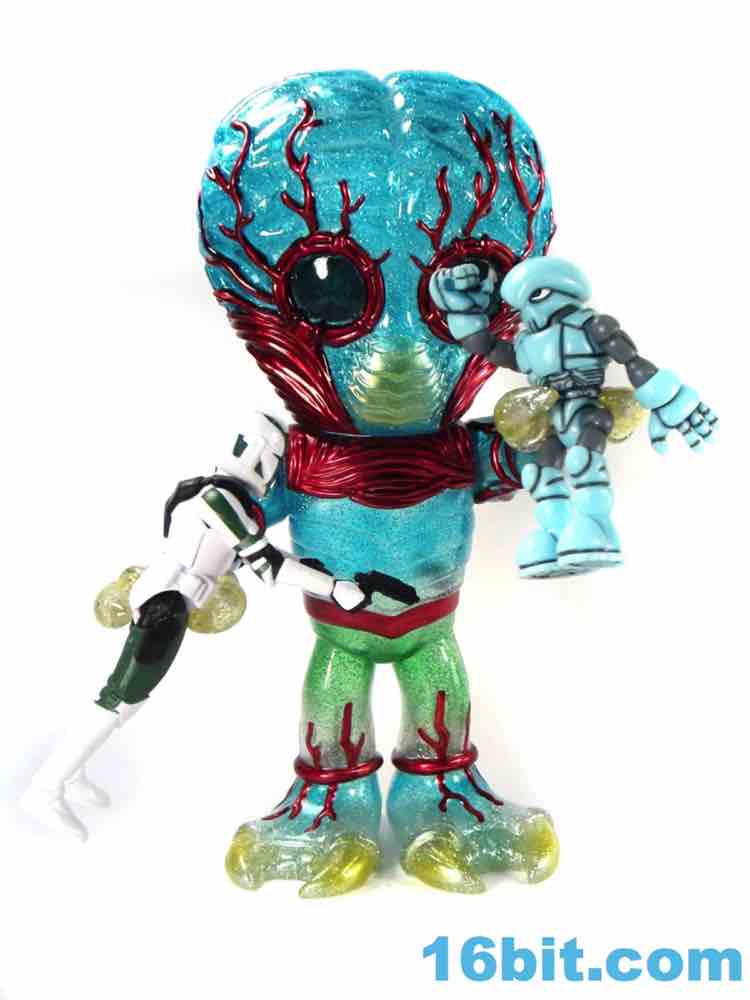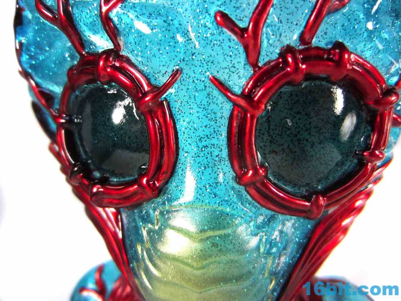 I was introduced to the character by the TMNT figure of Raph cosplaying as the Mutant and later Mystery Science Theater 3000: The Movie , because otherwise this character was never really on my radar as pop culture went. The design is a wonderful one with a big brain, creepy claws, and veins everywhere. To make it interesting, Funko gave the veins a metallic red paint job and the claws are this nasty clear yellow over a clear, colorless glitter plastic base. The rest of the figure is slathered in blue paint so the glitter shines through nicely and the end result is something bizarrely wonderful.