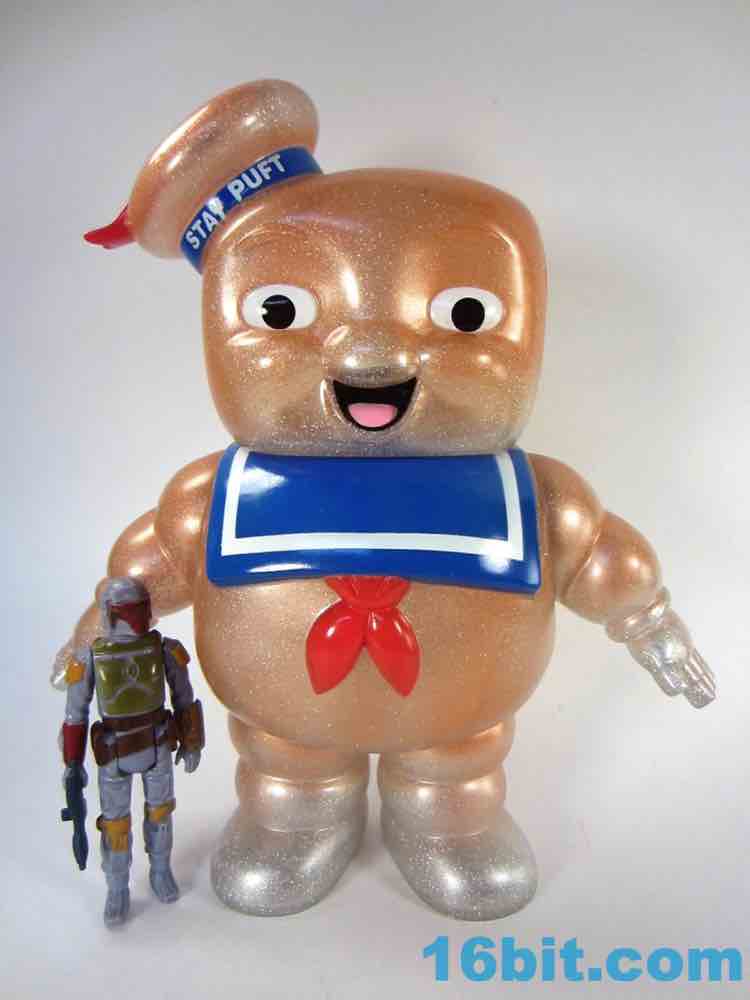 When I first saw the Hikari figures at Toy Fair 2014, I thought "Hunh, neat. I get it but I don't know if I need a ton of them." Well, I've picked up a few here and there and while it's cost-prohibitive to get a complete set thanks to super-low runs, having a few more of these gorgeous figures seems like a good idea. I picked up the Entertainment Earth Exclusive Ghostbusters Pink Stay Puft Marshmallow Man in part because I work there and I work with our exclusives. Hey, why not? I'll take one, it's neat. The glittery clear and pink figure looks way better in person than the photographs. I can't say I entirely know the best way to display it, but it does a nice job evoking the feeling of the "burning" deco without literally having burned marks on it.