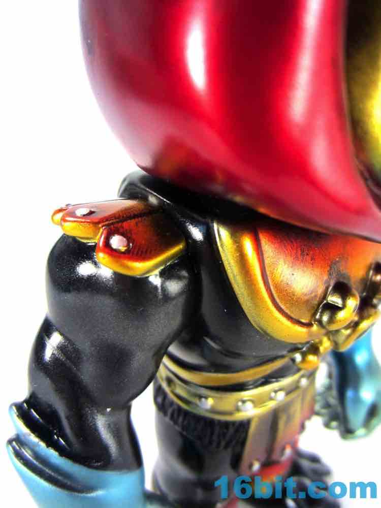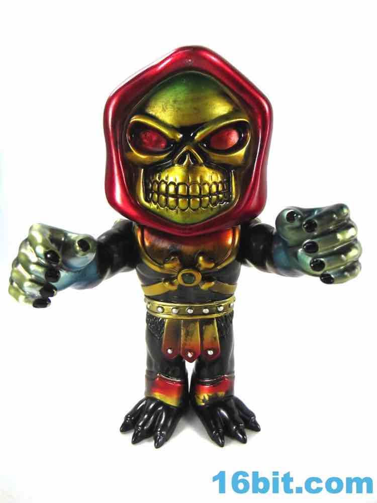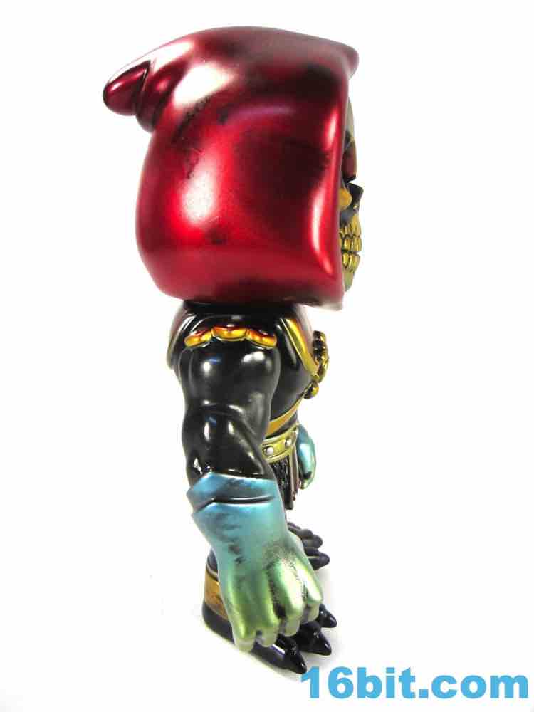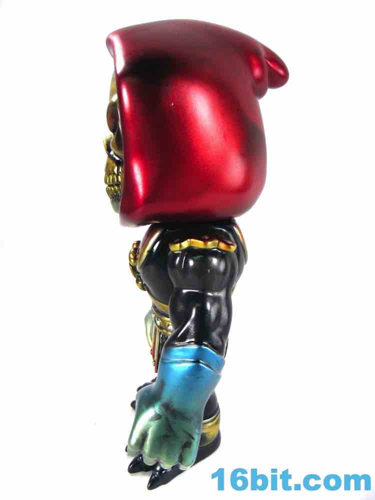 As with the others the figure has 3 points of articulation. Moving shoulders, moving neck... and that's about it. My sample had overly stiff arms but they eventually gave way to moving. The level of detail on the figure is impressive, as you'll note the fingernails are painted black and the various individual rivets on his armor are all silver. There's a black jewel in the crossbones of his armor, a red hood, shiny red eyes, and a metallic yellow skull. The same "Mystic Powers" style has been applied to other figures like Frankenstein's Monster and the Mindstyle-exclusive Jiangshi Hopping Ghost figures, which I also kinda want. These things are just amazingly gorgeous, and are something of the mass-market version of the whole indie toy Kaiju trend that you've been seeing out of Super 7 and the Max Toy Co. in recent years. Except, on the whole, these have better licenses.