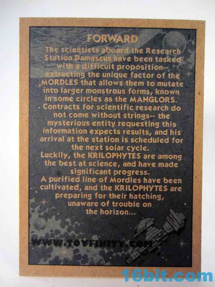 With no Vision Mordle (we got some with our Club merchandise orders, though) the most interesting pieces here are the Comic Book and the trading card. The comic book is basically remixed content from the web site with a few hints as to what may come next from ToyFinity. You'll flip through it in about two minutes and it's mostly ads for other products. There's a "color in Maxx!" page as well, so it really doesn't add much to the whole Mordles mythos and there are still no rocks or bugs to speak of in the fiction or the toy line. Basically if you've been reading the fun and endearing comics on the web site, you've seen all of what the comic has to offer - and then some.