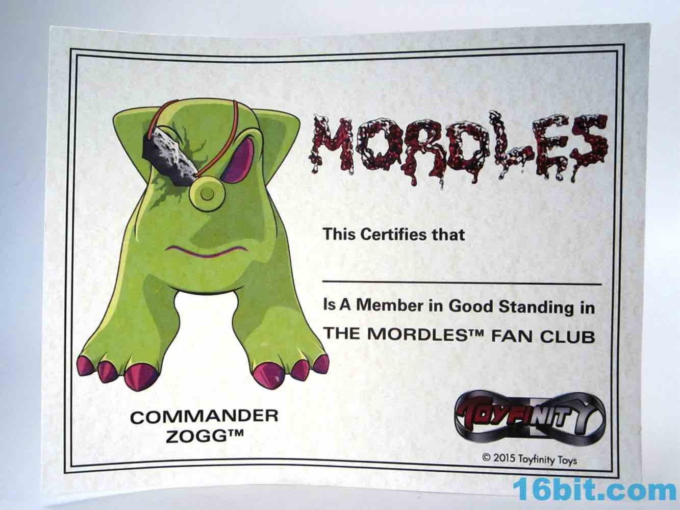 A Club Mordle Membership Certificate rounds out the set, featuring the green Commander Zogg with an eyepatch. He must have had a rough year.