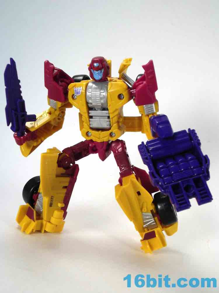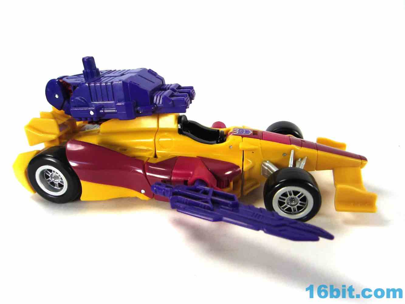 His weaponry includes a purple fist/gun/foot as well as a sword/gun. The bladed weapon looks gun-ish if you hold it by the secondary handle, and this is something of a peculiar choice given the original toy carried a gun. I assume they just wanted to mix it up or maybe nod to the animated Drag Strip based on Arcee, either way it's certainly different and nicely sculpted. Maybe the sculptor was just a big fan of the Final Fantasy VIII gunblades?