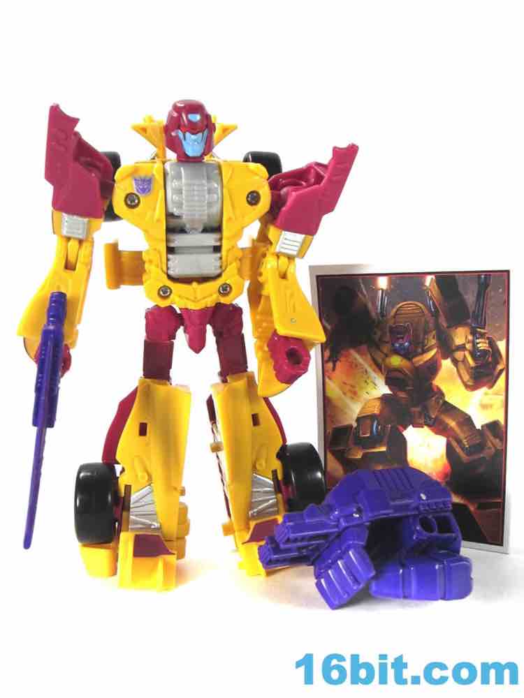 A bright metallic Decepticon sigil on his chest really pops nicely, and I have to say I am consistently delighted to see these with the tiny outline that makes each one pop. We've had years and years of this symbol as a sticker, or painted on like a blob in Armada in 2002 to the point where merely leaving the eyes and mouth unpainted was a world-changing thing in late 2003. They've doing sigils in this style in Generations here and there, and boy howdy does it improve things. I should also note Dragstrip has a ton of paint on him, with the back of his legs being heavily shellacked in yellow and a generous helping of purple paint being plastered to the thighs. The purple thighs make sense - it would look weird to break up the color of the upper legs - but the back of the robot's lower legs are generally out of sight in most modes. It would be noticeable more as a leg, especially if you did it with the "stomach" facing outward like the original 1986 toy. Kudos to Hasbro for not taking shortcuts here - I don't know if I would have been able to justify the cost.
