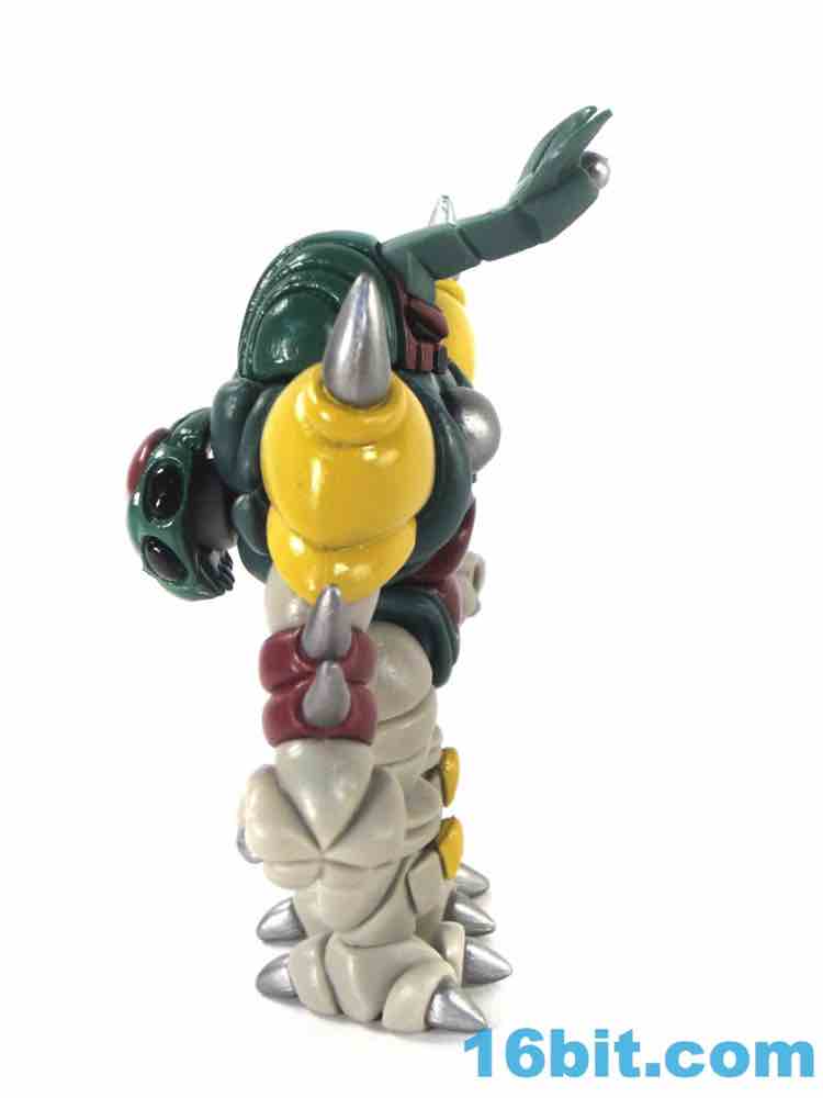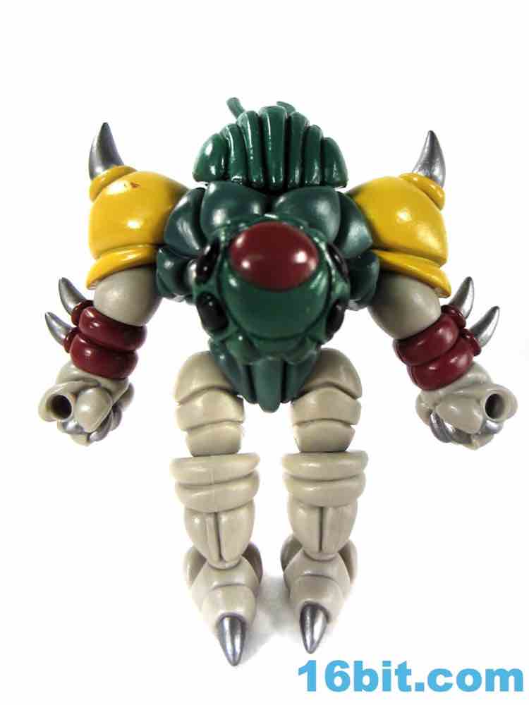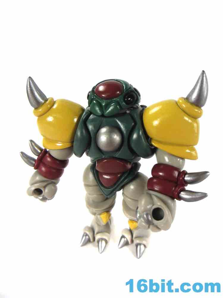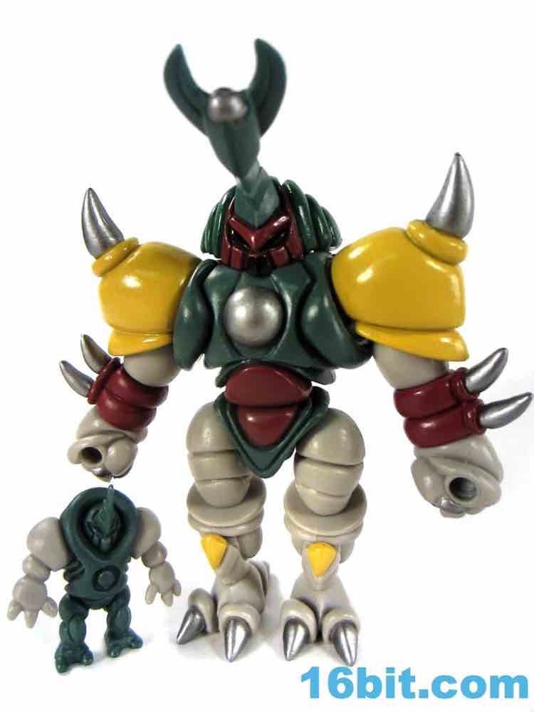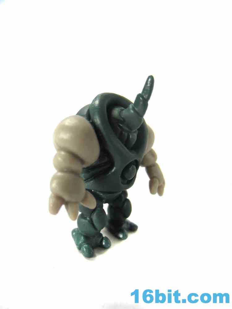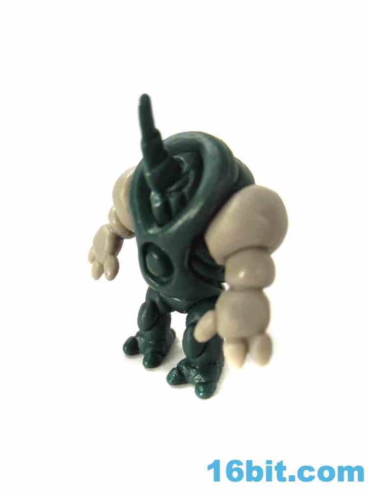 26 total pats come together to form a 3-inch tall action figure - taller if you count the horn in his forehead. Each piece is a fully articulated Glyos joint, so you can swap parts with other Kabutos or reconfigure this one into some gruesome beast of your own design. To that end an alternate head is included as a backpack, so you can switch to that noggin if you prefer. You've got options, but sadly you don't got weapons. You'll need to steal some from the Glyos-compatible Weaponeers of Monkaa or another line. He has no problems standing or sitting, with completely sturdy joints and a build that could probably take a severe beating were your kid to ever play with it. Since it sold out already, this is unlikely.
