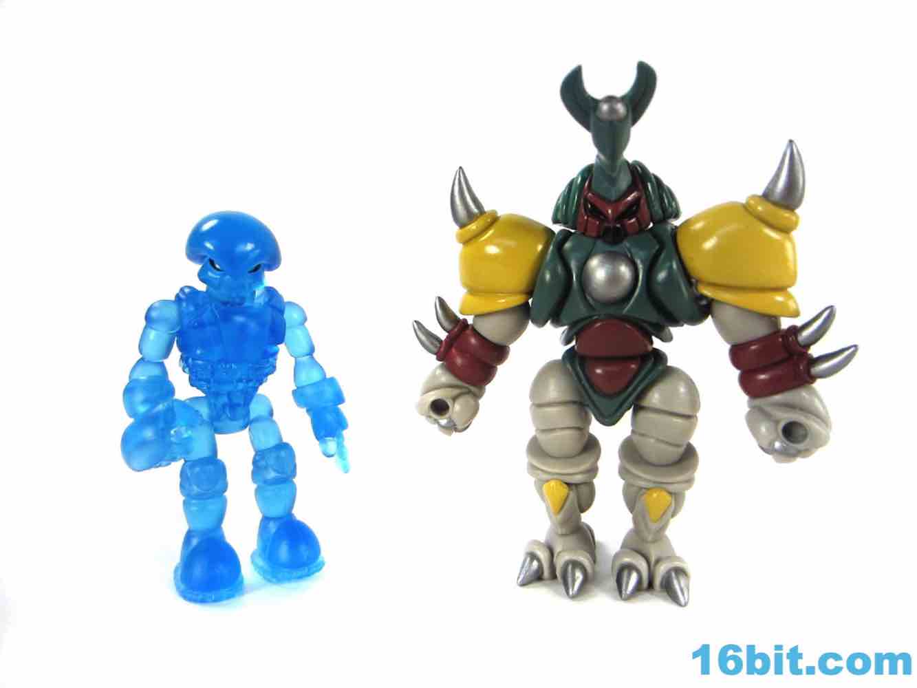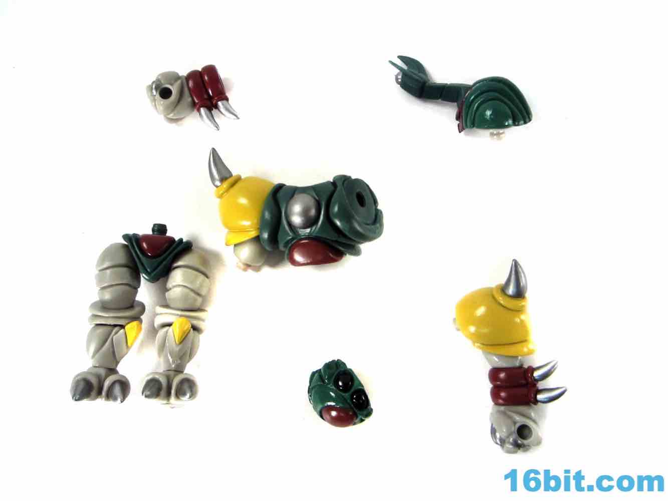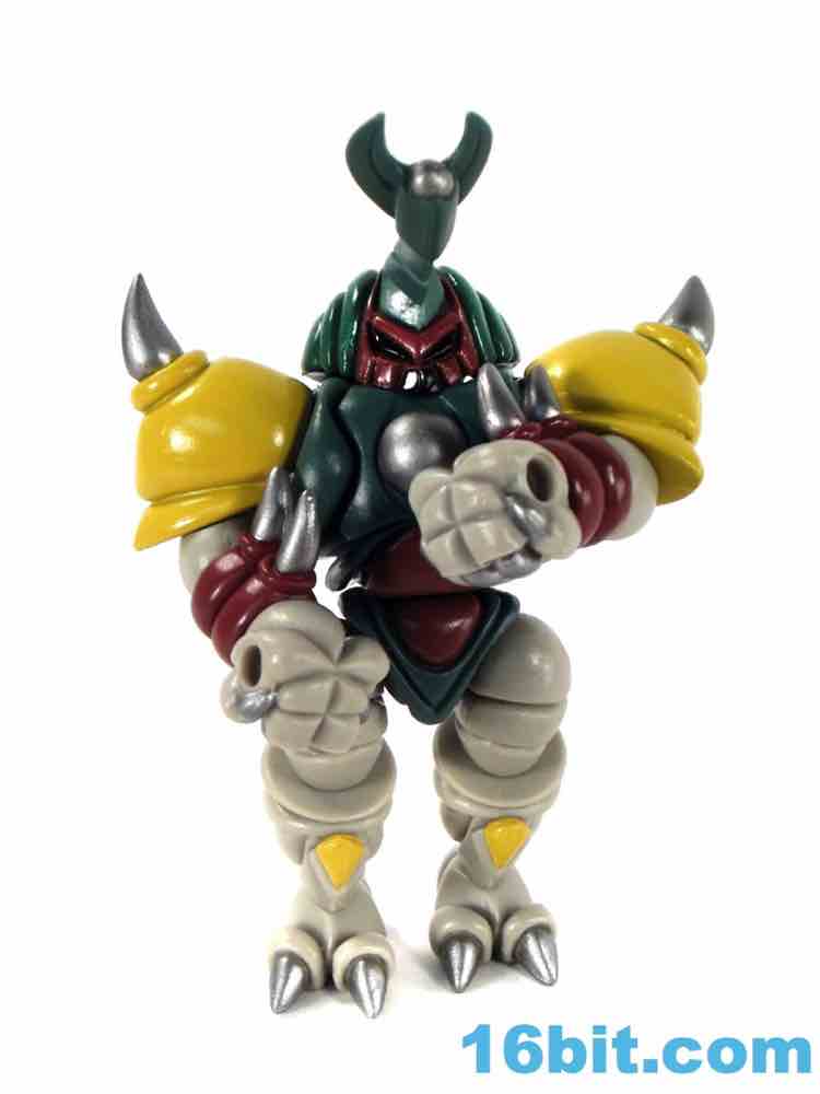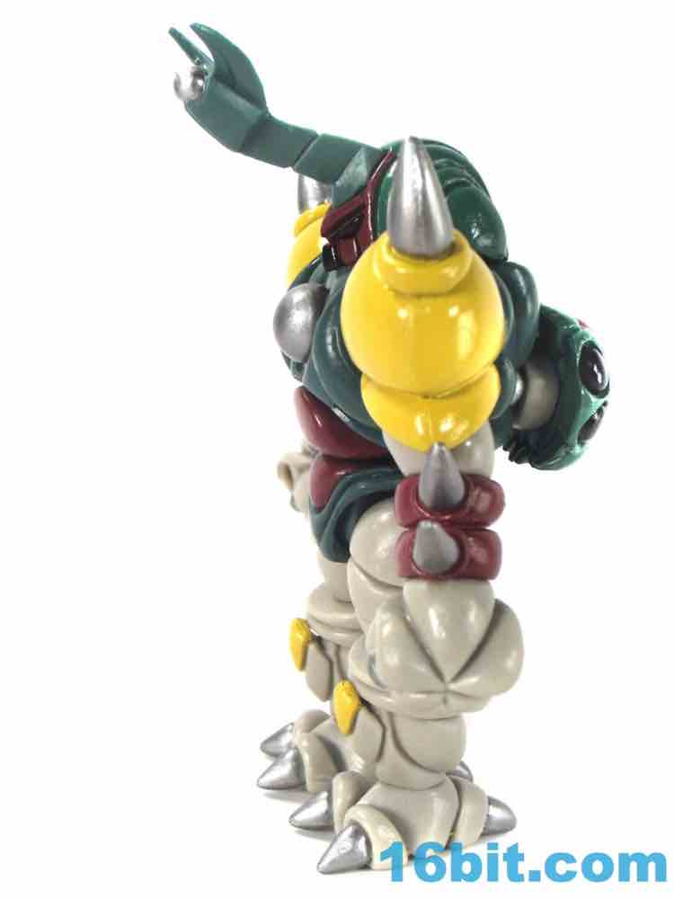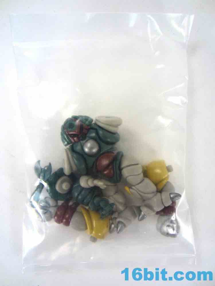 26 total pats come together to form a 3-inch tall action figure - taller if you count the horn in his forehead. Each piece is a fully articulated Glyos joint, so you can swap parts with other Kabutos or reconfigure this one into some gruesome beast of your own design. To that end an alternate head is included as a backpack, so you can switch to that noggin if you prefer. You've got options, but sadly you don't got weapons. You'll need to steal some from the Glyos-compatible Weaponeers of Monkaa or another line. He has no problems standing or sitting, with completely sturdy joints and a build that could probably take a severe beating were your kid to ever play with it. Since it sold out already, this is unlikely.
