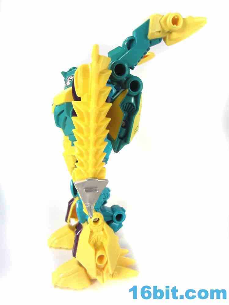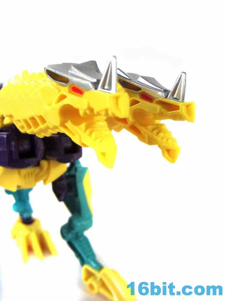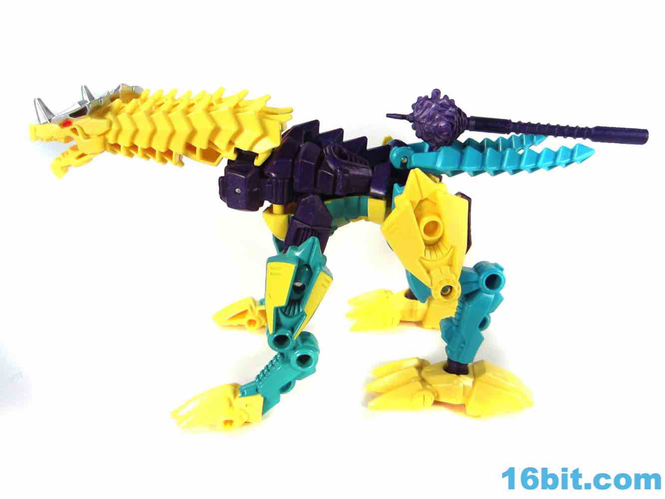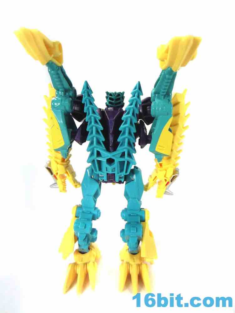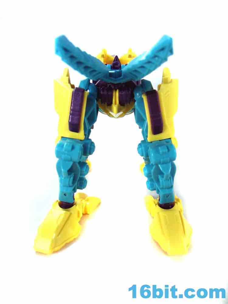 The robot mode looks just like the Legion toy, with a few minor tweaks. I'm really impressed by how nice the colors all match and that the paint is really clean and even. Our Predacon pal has only 8 meaningful points of articulation, but with no knees and no elbows you might be shrieking "no sale." However, I'm old and played with the original toys as a kid and those generally had moving arms and not much else. This is an improvement. The hips, shoulders, and ankles give you about all the articulation that you're going to get and odds are you are going to feel robbed if you overpay for this figure. On the other hand, it's a distinctive design in nifty colors that pop nicely on the shelf. He has no problems holding his weapon in either hand, plus there are at least 11 places to plug in his weapon, Mini-Cons, Energon weapons, BMOG bits, or whatever other 5mm accessories you may have.