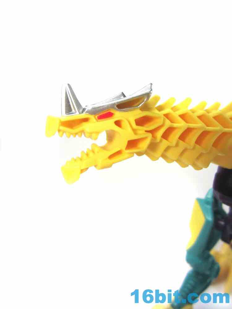 The beast mode is yellow, green, and purple with silver-capped heads and red eyes. If I told you this was the best thing ever, you would be correct to call me a liar - but I will say it's a lot of fun, and I miss transforming toys that don't require annoying steps or have pieces that pop off when I'm trying to figure out what goes where. The beast mode doesn't really do much - you can move his legs a bit, his back feet are ball-jointed, and the necks can move just a bit. It has more moving parts than an average transforming car, but it's still mostly just a statue. A very cool cybernetic creature statue, still, but don't expect the toy itself to knock your socks off unless you're just digging the design. For the record, I'm digging the design and recommend it on that reason alone.