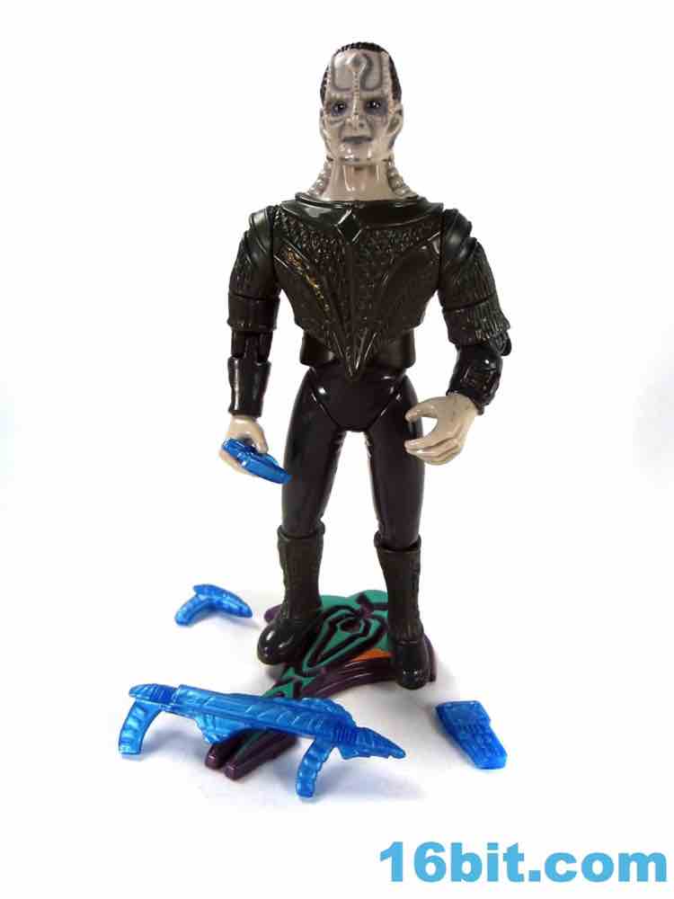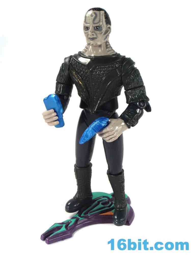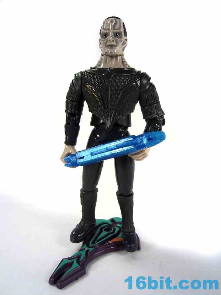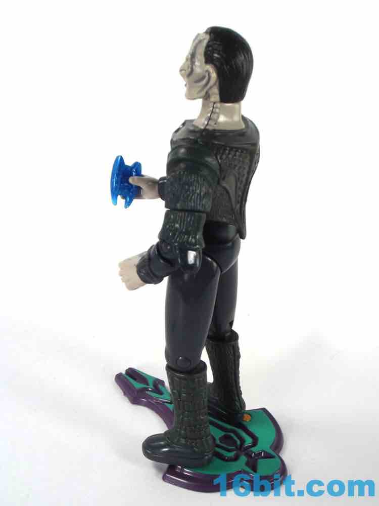While this character was always more or less the bad guy, the somewhat grey Commander Gul Dukat wound up with a strange name on the package - he commanded the station, but his rank is Gul. It's possible "Commander" came from a licensing guide or another resource, because I don't seem to recall him being referred to as such on the show. This figure brought the only real hint of antagonism to the first wave of figures, in part because everybody was arguably able to get on everybody else's nerves. I remember hearing a story at one point that this figure was initially developed to be a generic "Cardassian" (much like "Romulan" or "Ferengi") but I'm having a hard time making that call. It looks close enough to the uniform on the show, but they reuse so many costumes that the not-quite-perfect head could be another Cardassian.