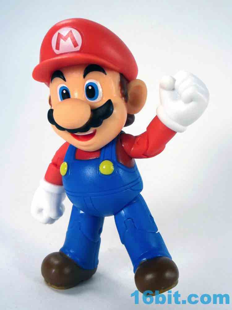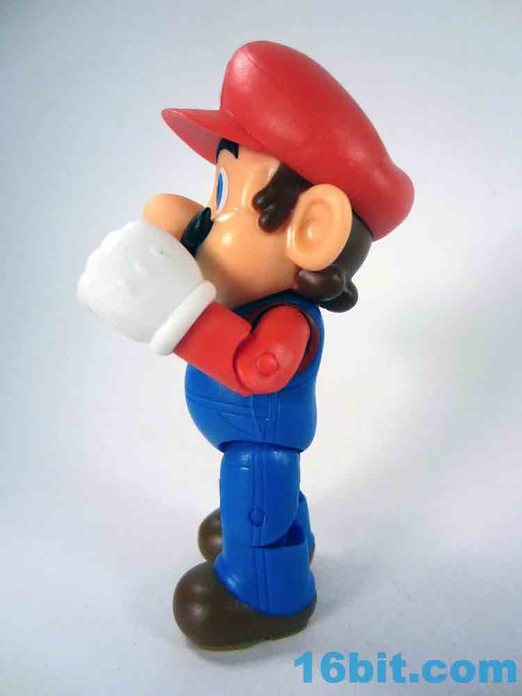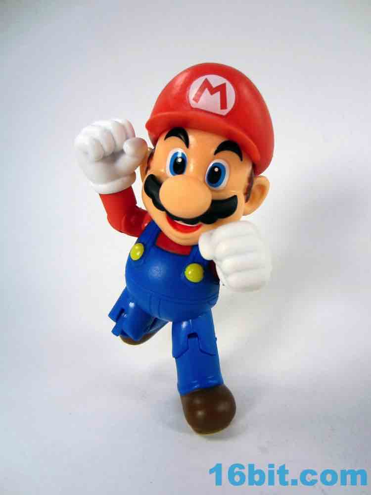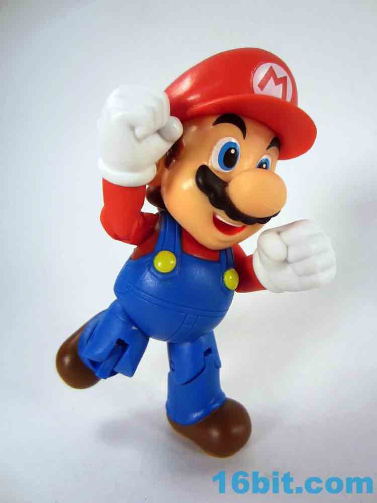 Mario stands about 4-inches tall at the highest point of the hat, and he's got 11 points of articulation. There's nothing really hidden here, minus the swivel wrists. Sadly Mario's jointed neck doesn't move much, but his big, non-jointed feet do a lot of good for this design. He has no problems being posed standing, fighting, or running without assistance assuming you get a good one (see below) and the joints aren't too loose. I very rarely can say I bought a figure developed for the American market that can stand on one foot without tons of fiddling, but Mario can with no real problems.