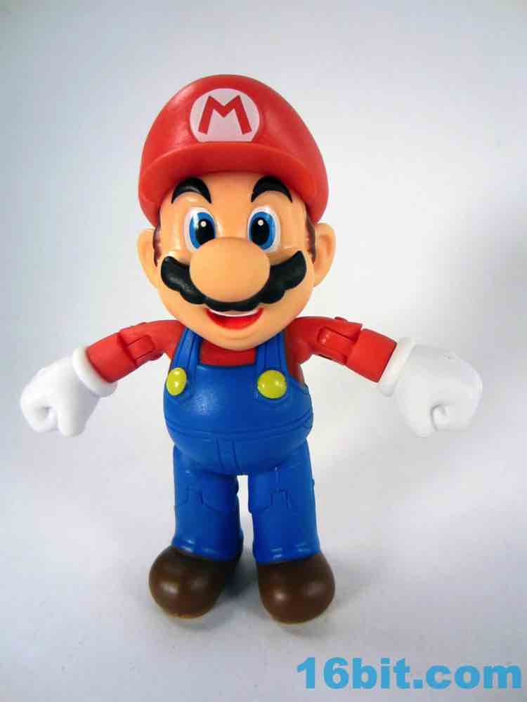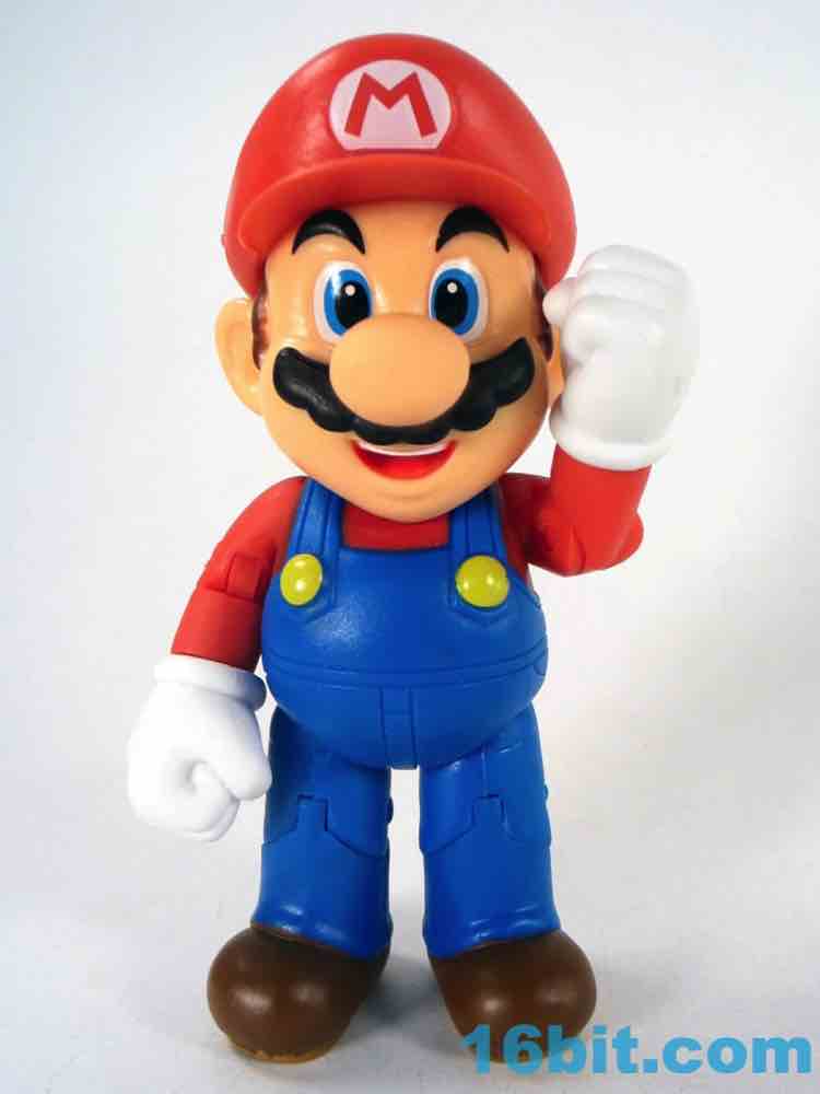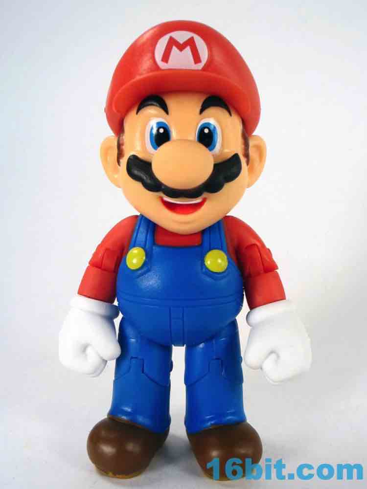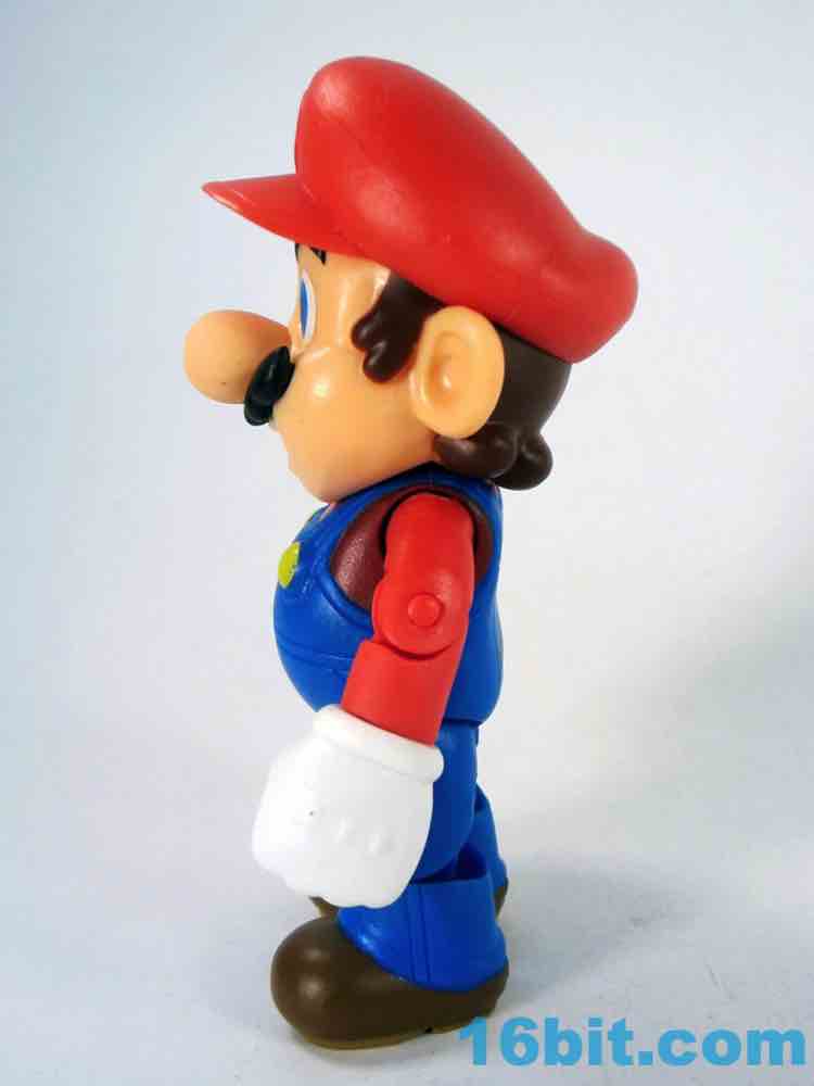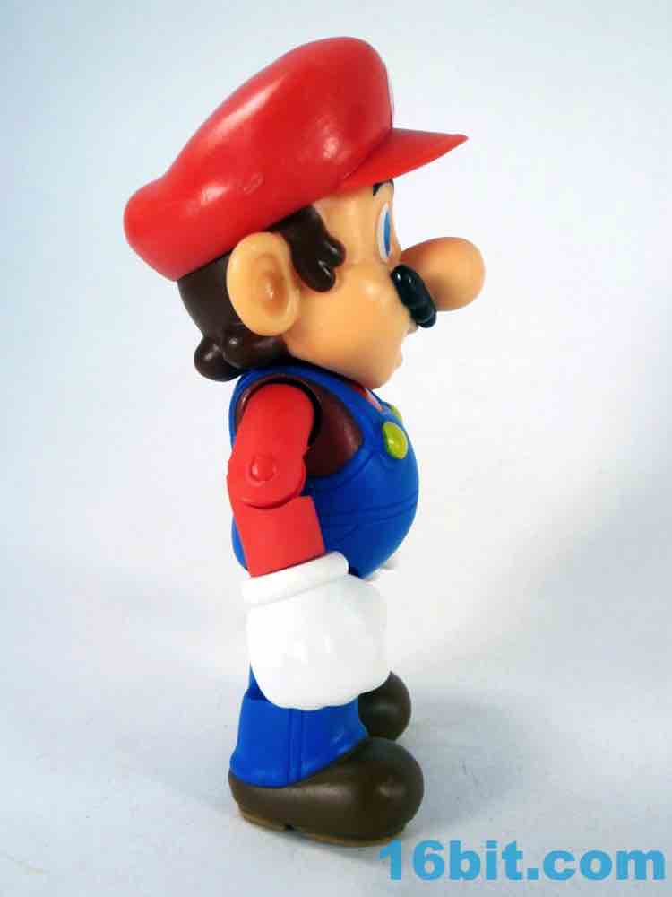 Mario stands about 4-inches tall at the highest point of the hat, and he's got 11 points of articulation. There's nothing really hidden here, minus the swivel wrists. Sadly Mario's jointed neck doesn't move much, but his big, non-jointed feet do a lot of good for this design. He has no problems being posed standing, fighting, or running without assistance assuming you get a good one (see below) and the joints aren't too loose. I very rarely can say I bought a figure developed for the American market that can stand on one foot without tons of fiddling, but Mario can with no real problems.