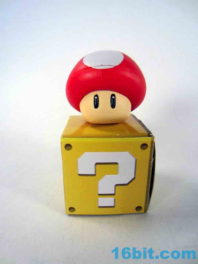 Rounding out the figure is a cute accessory, the classic Super Mushroom. It's a solid red hunk of plastic with white spots which have some of the same problems as Mario. The plastic is very similar to the thick, rubbery plastic as Mario's hat and has no points of articulation. Link's shield is arguably more impressive, but if Jakks carded this mushroom for three or four bucks, you'd pay for it. It's pretty great. If you aren't a toy collector you probably aren't reading this column, but you'd enjoy this figure. It's a great desk toy that's a problem-free figure that can just hang around on any flat surface. You can find better Mario figures, but for the price you probably can't do much better than this. For about $25, the Figma version of Mario is pretty much the same with more articulation, better paint, a plastic ? block rather than cardboard, plus a coin. So it's better, but I've seen these figures for as little as $7. So get this one.