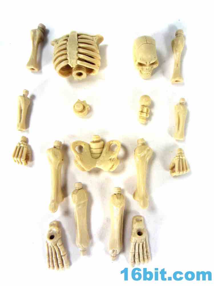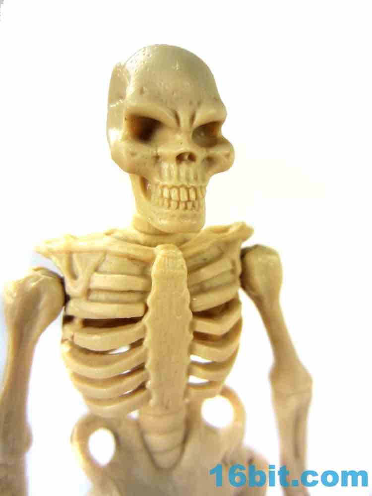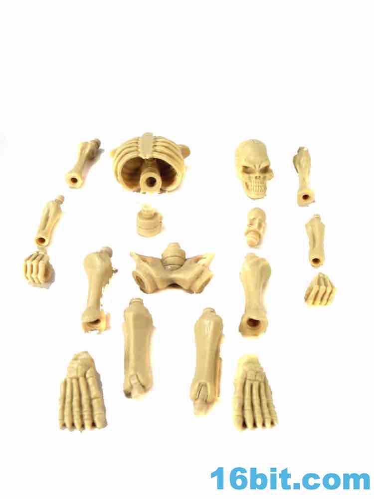 The figure is assembled through many of the smaller Glyos pegs, which sort of reduces your ability to really swap parts with all other figures. You still can mix and match between Titan Skeletons, but the dream of changing all parts with all figure is unfortunately one that has proven to be impossible to maintain. Many parts can be swapped between figures, but when you get right down to it these figures - like Power Lords - are best swapped between their own brands. Since there are very few weapons in Glyos lines, you'll be glad to know the large bony hands are big enough that they could hold weapons for Transformers or Masters of the Universe in addition to smaller weapons like Link's Master Sword or a lightsaber. It's versatile.
