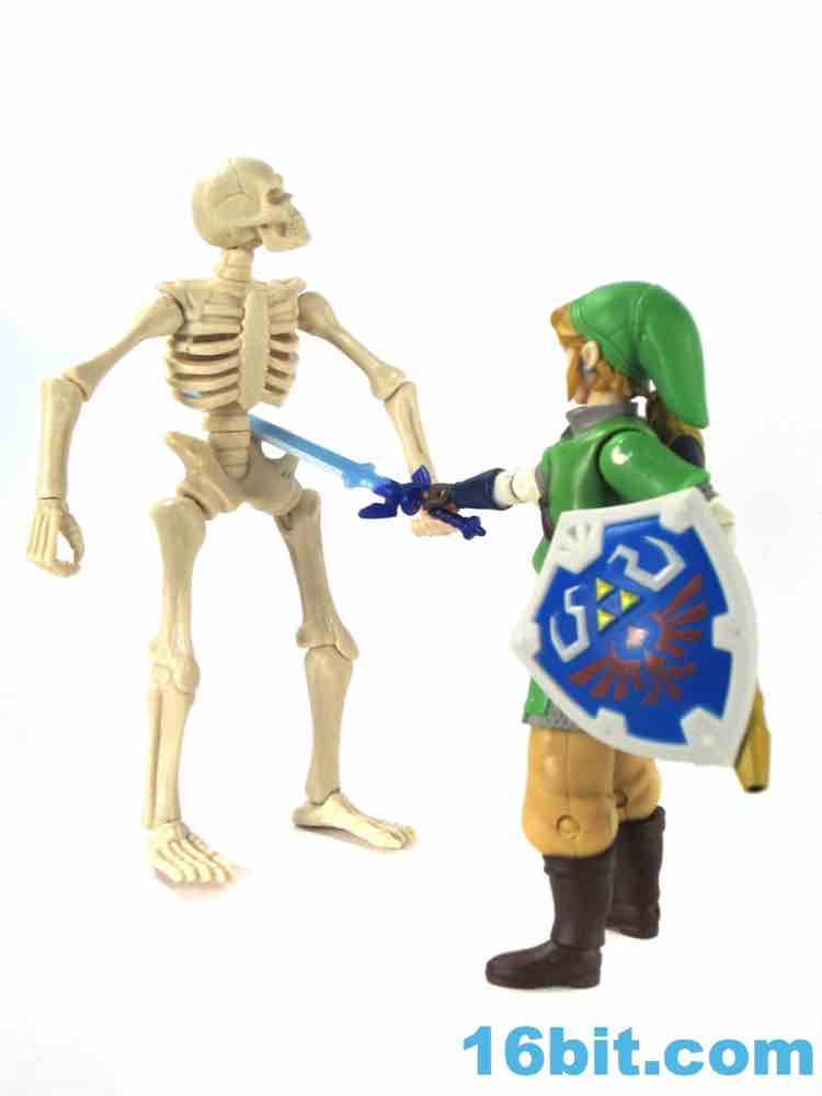I'm a fan of October Toys. They host the Glyos forum, and put good stuff out - it's one of the few companies where I feel a strong need to try anything they make because, generally speaking, it's good, cheap, and the outfit is run by nice people. I was totally OK waiting a few extra months for the Bone Titan Skeleton, a 5-inch super-articulated figure created, I assume, to share tooling with Baron Dark in order to get a little more bang for the tooling buck. I did the Kickstarter to get the Baron, this Skeleton, the glow version, and a Skeleden - and that seemed like enough. I now regret skipping the clear blue one, because the Titan Skeleton mold is quite good and because these were intended to be scaled to 3 3/4-inch figures, it's the perfect nemesis to the Jakks Pacific Link figure from the Zelda games as well as other fantasy lines in this scale. Which I am now blanking on, I'm sure there must be another one - but hey, it's a good fake Stalfos.