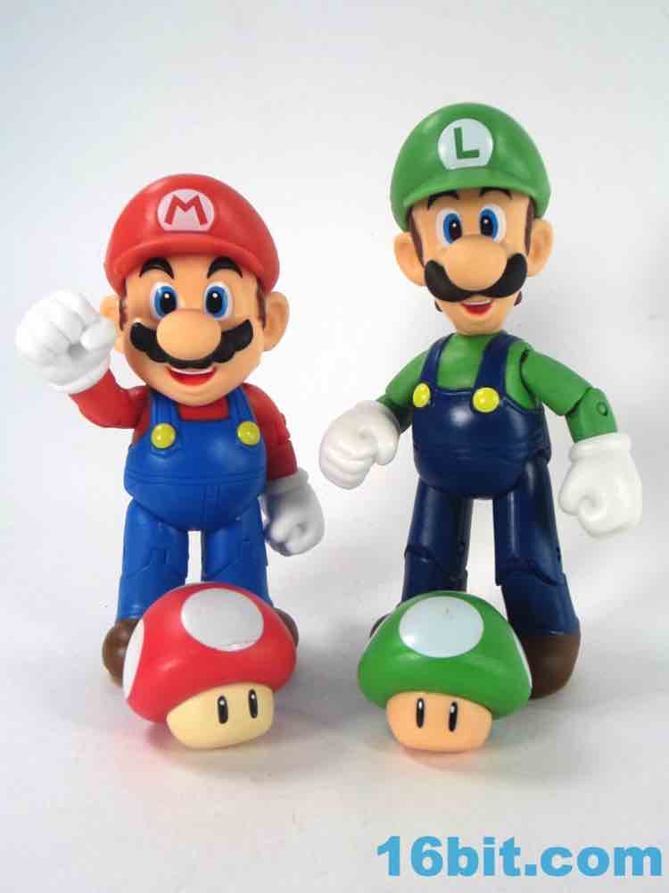 Unsurprisingly, Luigi is built similarly to Mario. The elbows are built quite differently, and the Luigi neck is swivel-only whereas Mario's has the ability to tilt and rotate. Luigi sports 11 joints and measures a hair under 5-inches tall at the tip of his hat - so he's really big compared to other 3 3/4-inch action figure lines. Deco is on par with Mario, but the white is a tiny bit whiter and the coverage is a bit thicker and cleaner. The whites of the eyes are covered better, and the green paint on the chest matches the green plastic sleeves of the arms nicely.