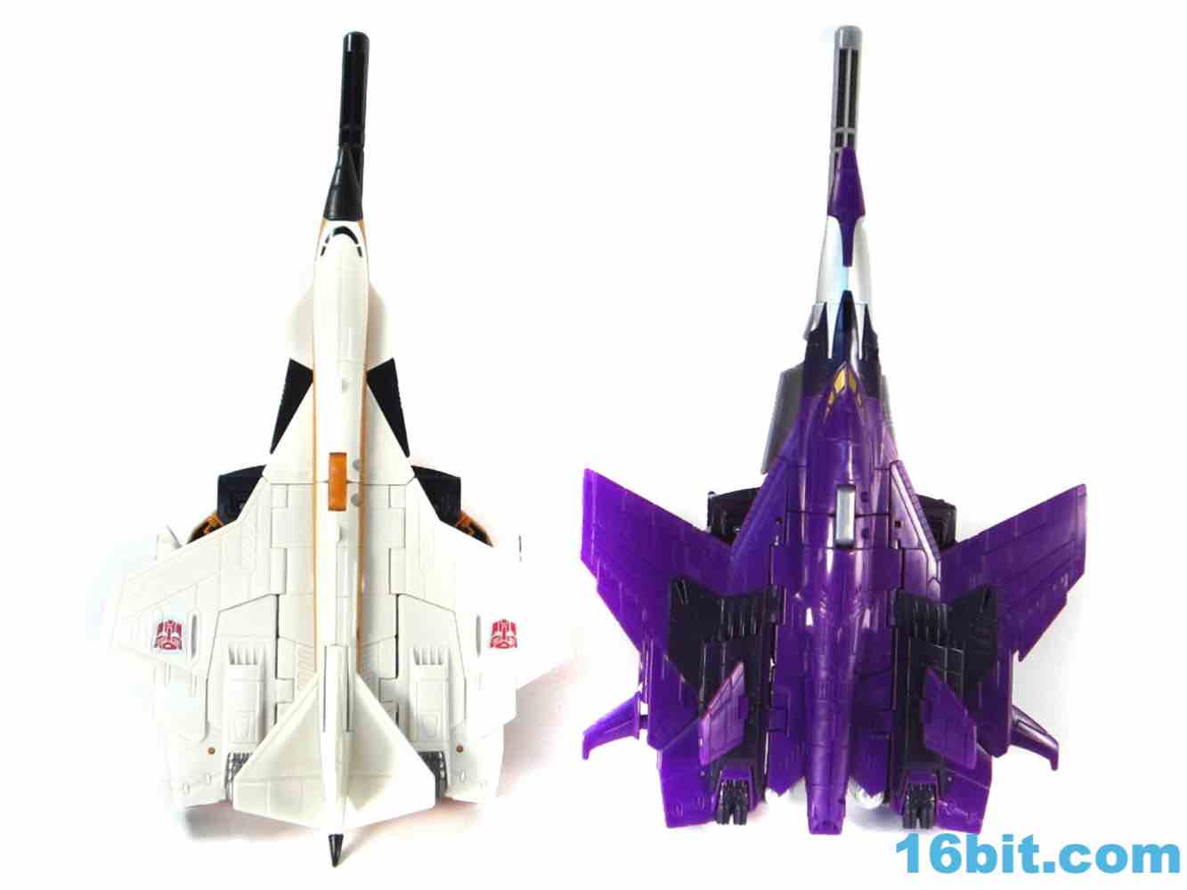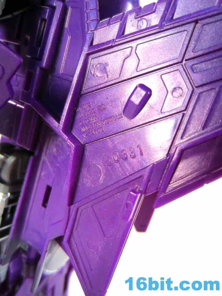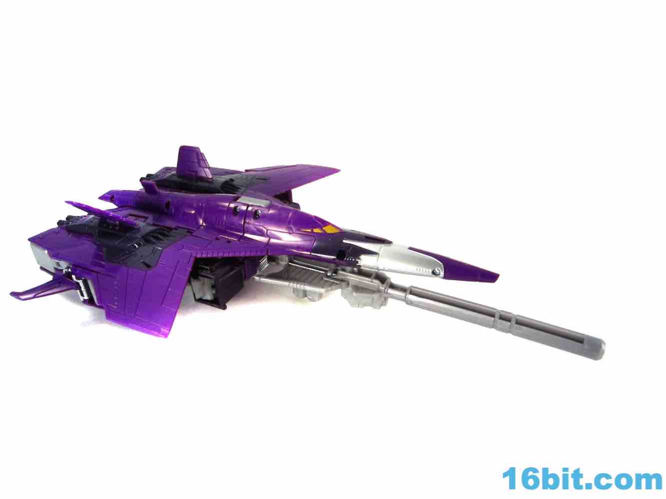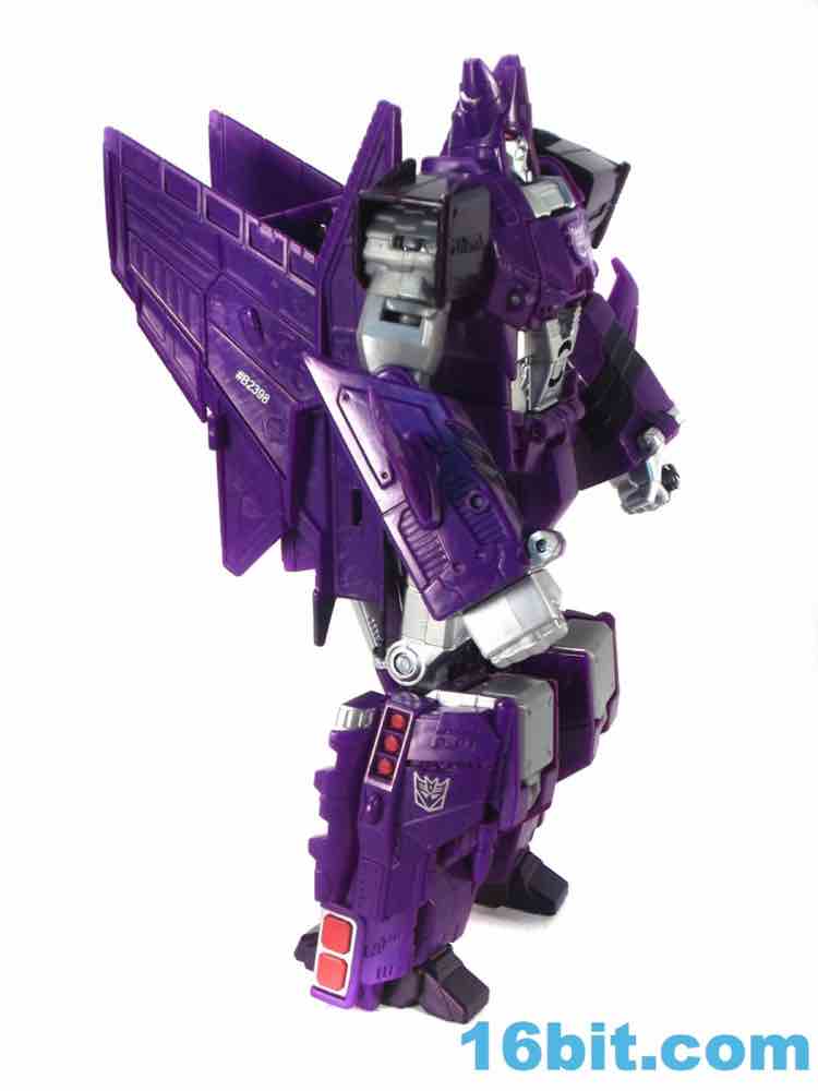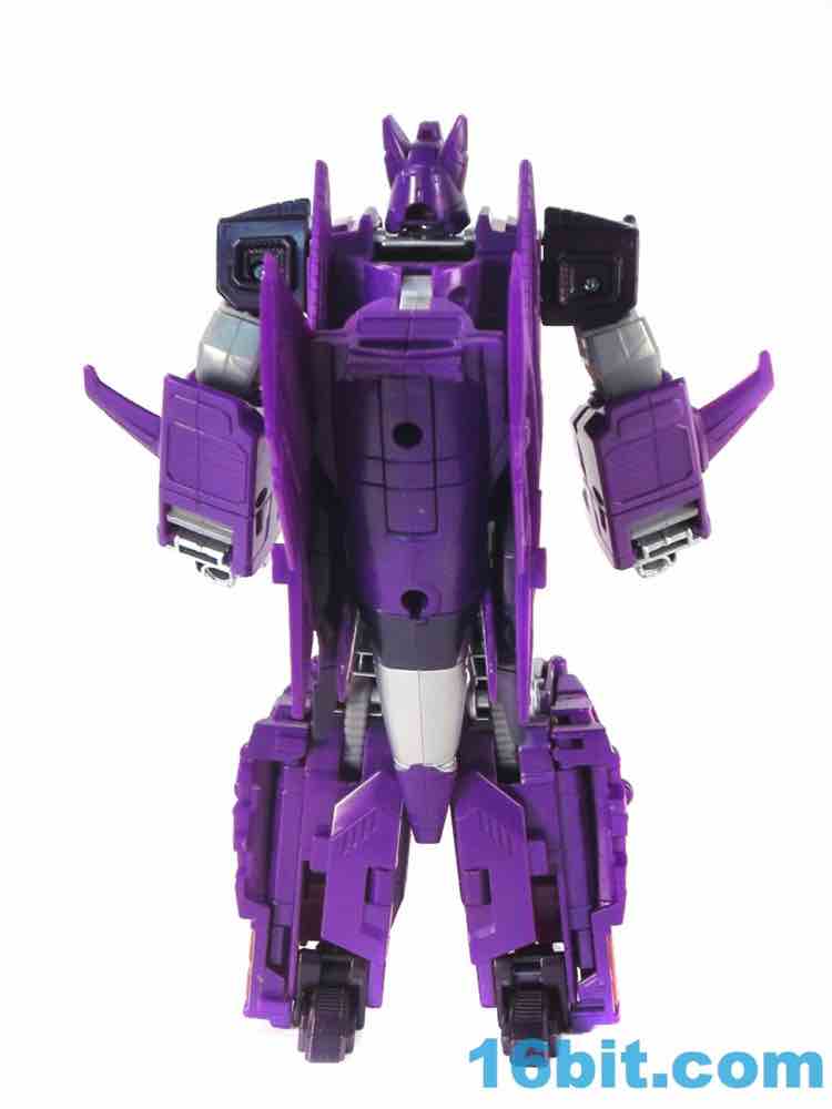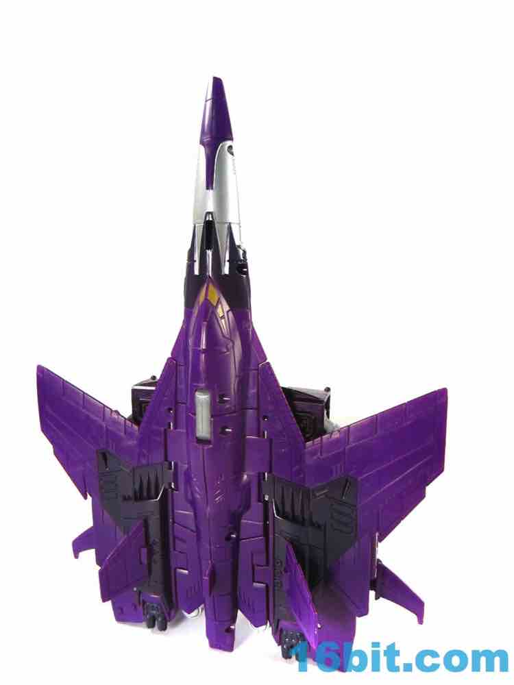 Transformation is nothing special - The nosecone folds down, the arms tuck in, the legs contort, and you've got a decent mishmash of the cartoon and original toy design. There's a gold set of windows, some silver on the nose, and dark purple, ah, "highlights" throughout. If you want a Cyclonus that doesn't look gappy in the ship mode, this is it. You have made it - and if my doomsday prophecies on toys after their 30th birthdays hold true this may be the last one you see. It doesn't do much - a couple of wings move, but that's about it.