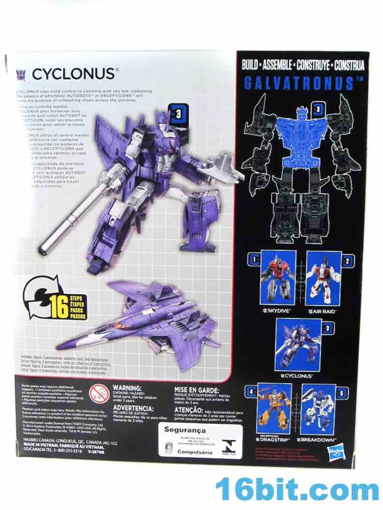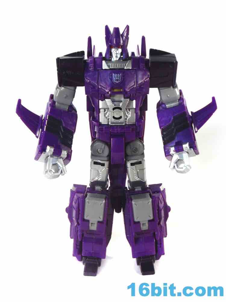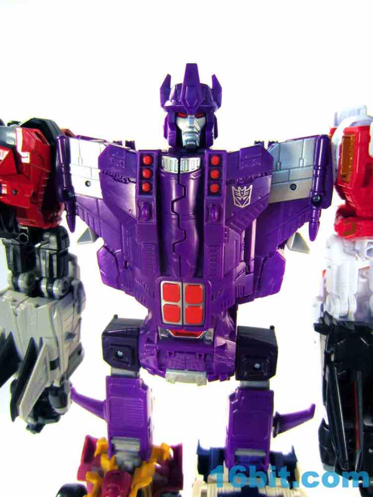 As far as I know the torso mode - Galvatronus - is not in any of the comics (yet). Maybe it never will - I don't like the idea of Cyclonus going back to full-on Decepticon evil mind controller given his role in the comics, but it makes for a great toy idea. Combiners are usually some sort of team, and teamwork is an underlying theme. Galvatronus says "nope, now I'm going to look like Galvatron and I'm wearing those dudes as pants and that group as arms." The packaging says the configuration is Skydive, Air Raid, Dragstrip, and Breakdown but the bio just says to grab anybody. The toy is convincingly Galvatrony, with the head's crown and the red "abs" on his lower chest. It's a totally new take on two characters, plus the Silverbolt engineering is just damn good. The story ideas that a toy like this represents are really fun, but the big question is if we'll ever see it in the comics or cartoons - probably not with Combiner Wars winding down, but who knows? It's worth noting the little forearm fins become shin fins in this mode, and yes it still looks weird. I wish there were more limbs to use with this guy, but maybe we'll get some later. With 5 torsos and only 14 limbs, we need another 6 just to deck out the current crew. And if the rumors are true, we may get them.