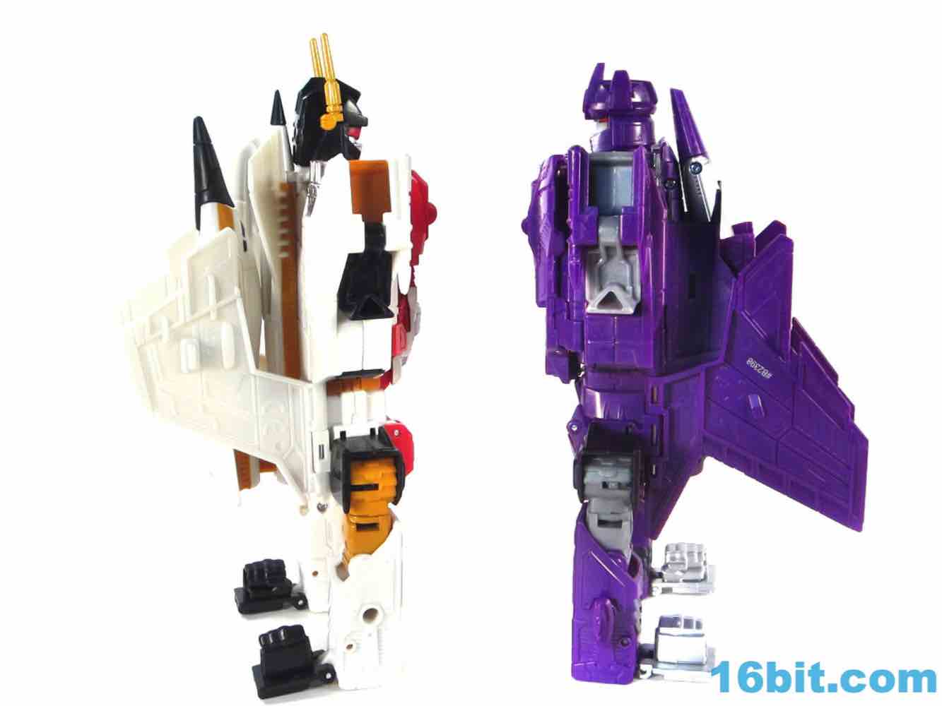 One.shtmlect of the transformation is something I haven't seen in a while - you have to take it apart. There are a couple of tiny wings which serve no real purpose other than as leg decoration in robot mode, and you must remove those from their 5mm pegholes to get him in jet mode. As a jet, they plug in to the bottom of his fists to add a little garnish to the space jet.