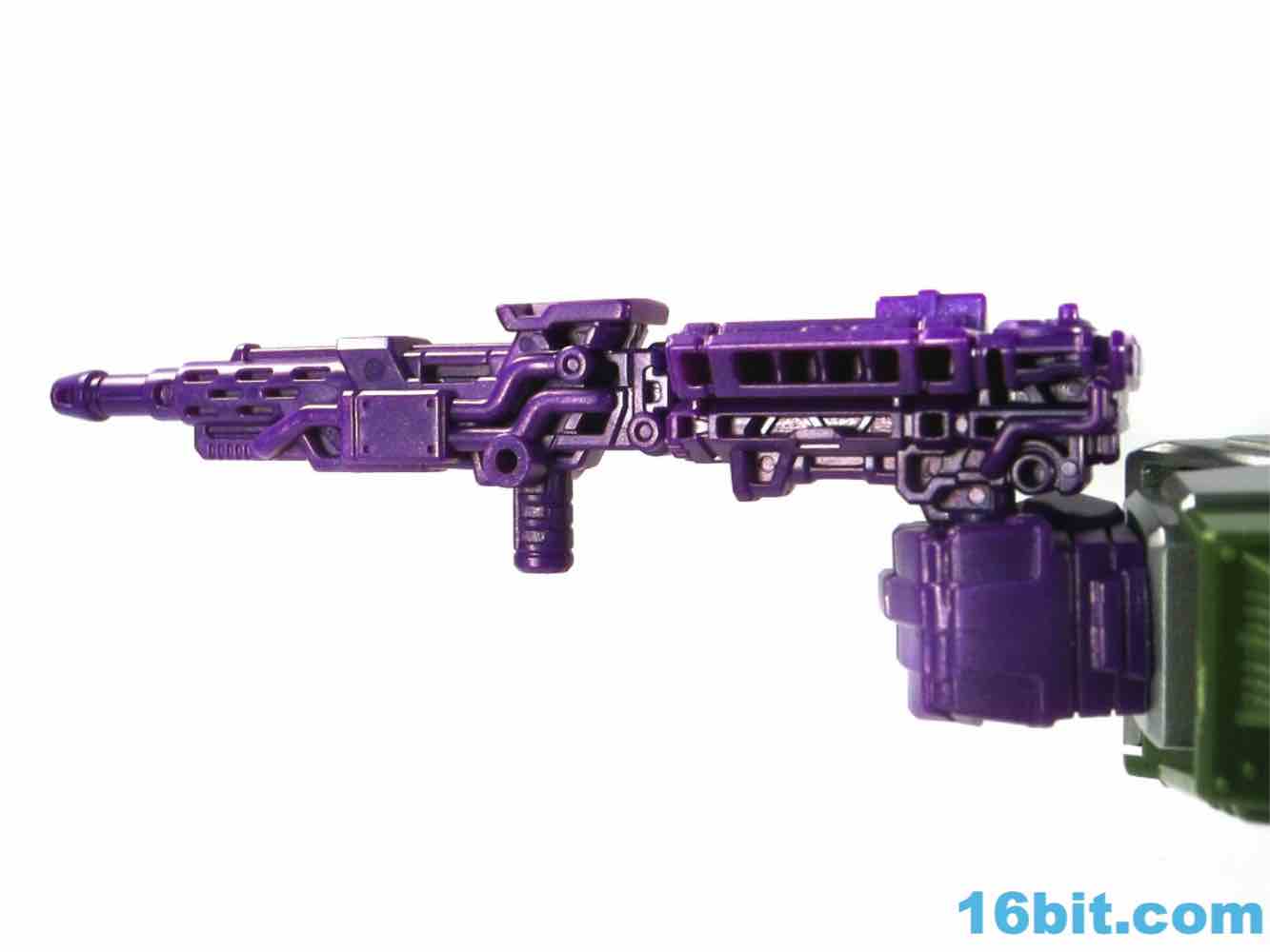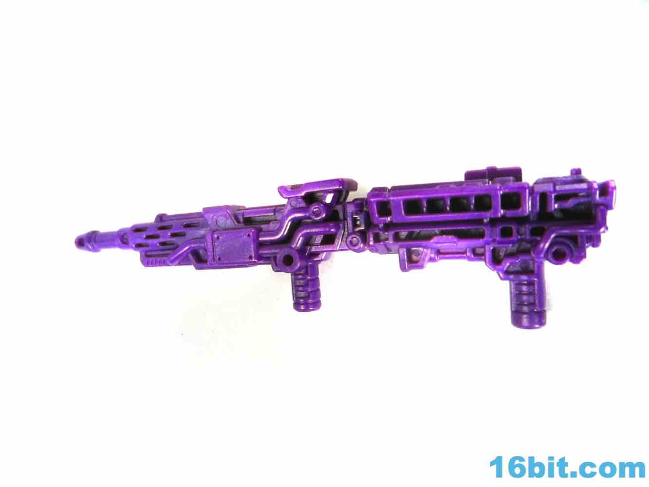 Standing tall over all non-combining Generations toys so far, this green and silver robot is just a hair under 10-inches at the antlers. He's functionally identical to the G1 casemate with deco and a new head being the only significant differences on the toy - in other words, it's not exactly Armada-esque in its form. As a robot, he's got 20 meaningful points of articulation and a nifty Easter Egg - his chest flips up for transformations and reveals a spark chamber modeled after the one seen in the Beast Wars episode "Master Blaster." It's a nifty nod, particularly on the silver one. Armada Megatron retains the purple face, purple Decepticon symbols on his arms, and purple fists - but really it's just a G1 Megatron with a new head and paint. And he's taller than Jetfire, so there's that.