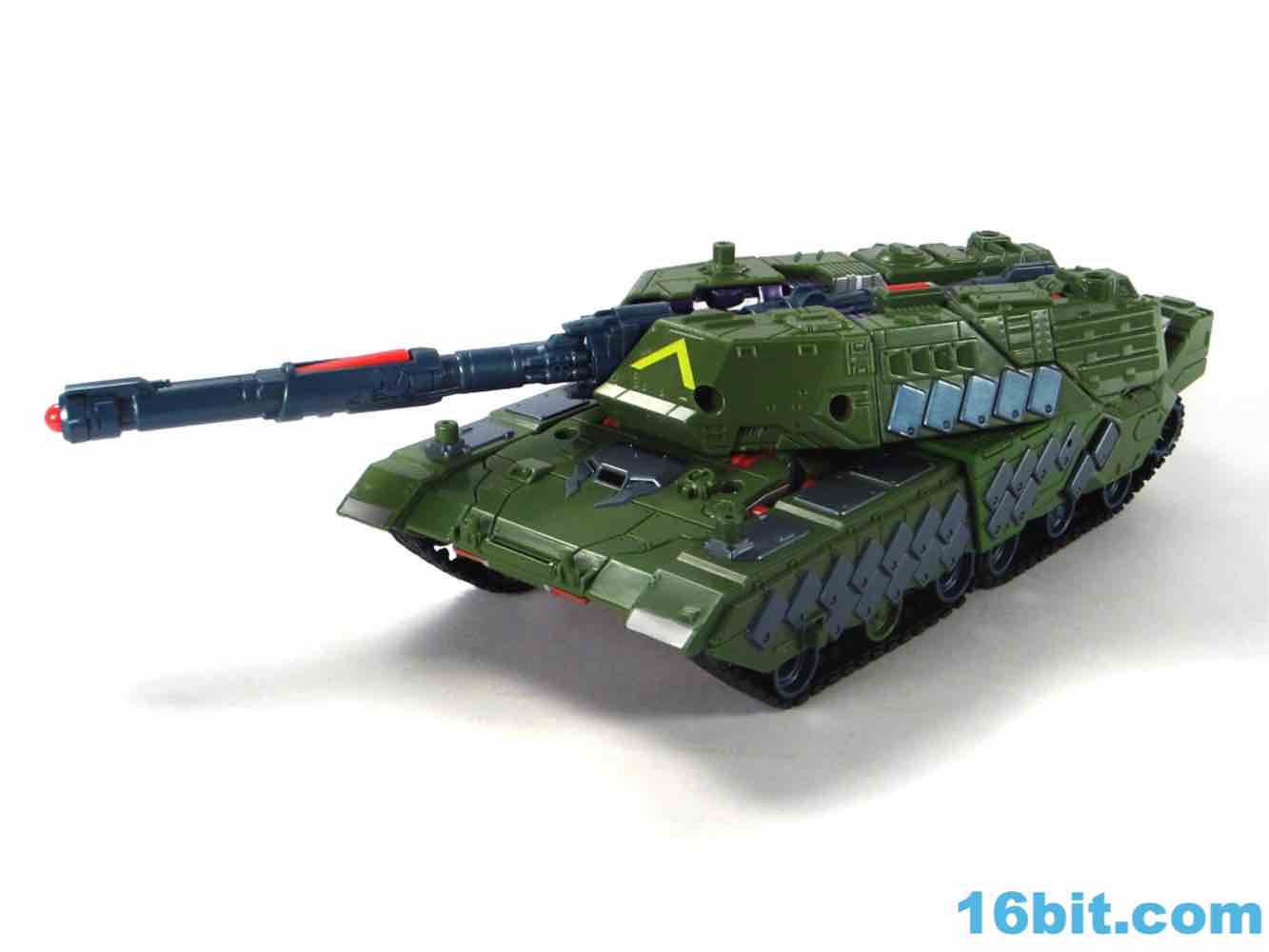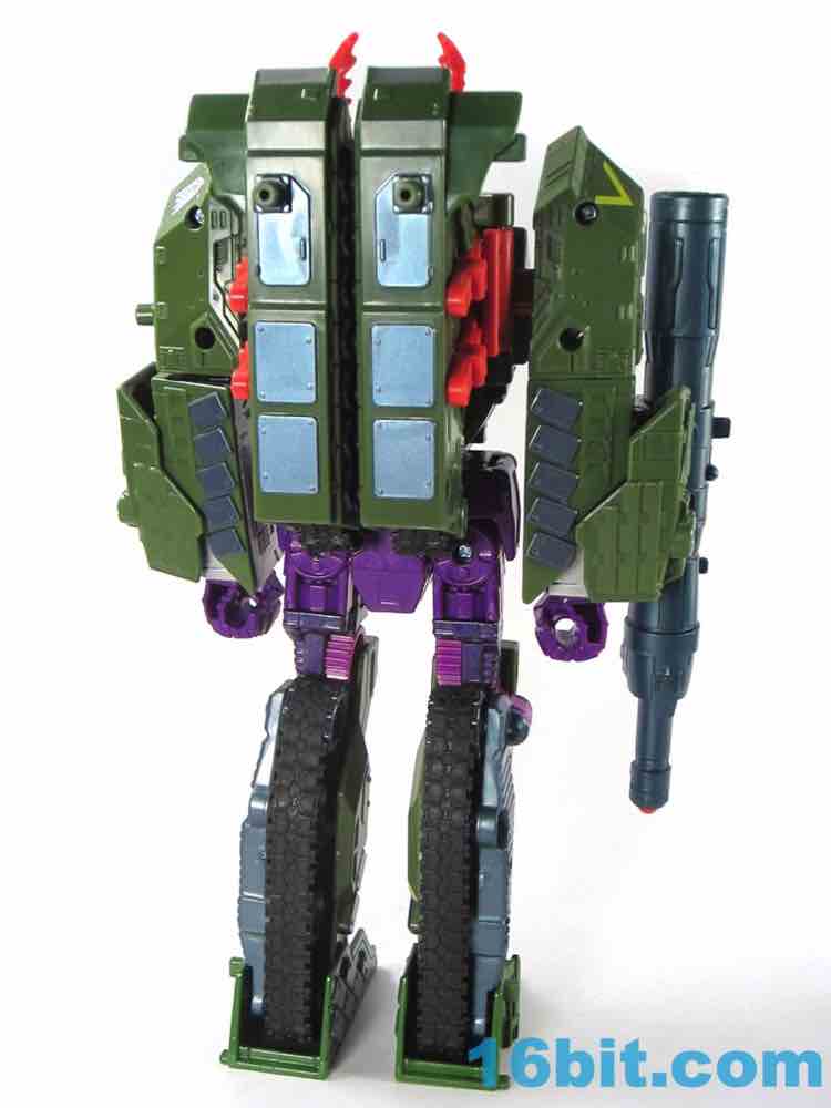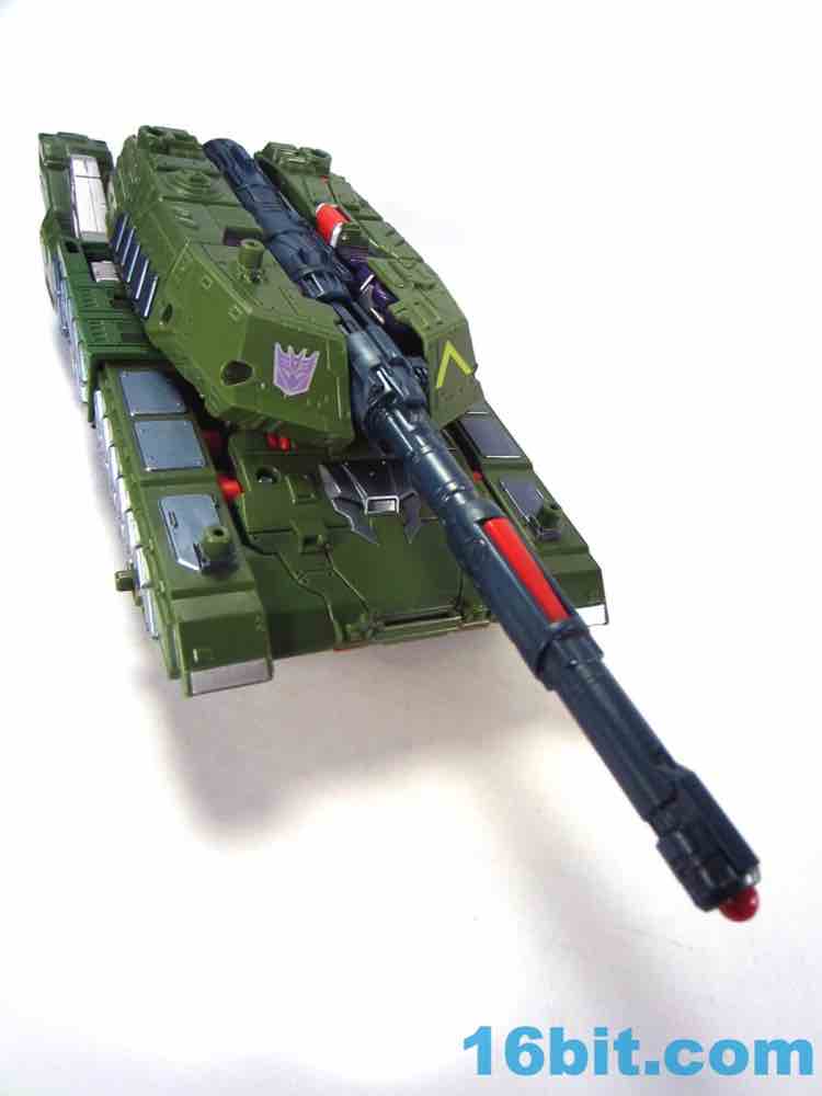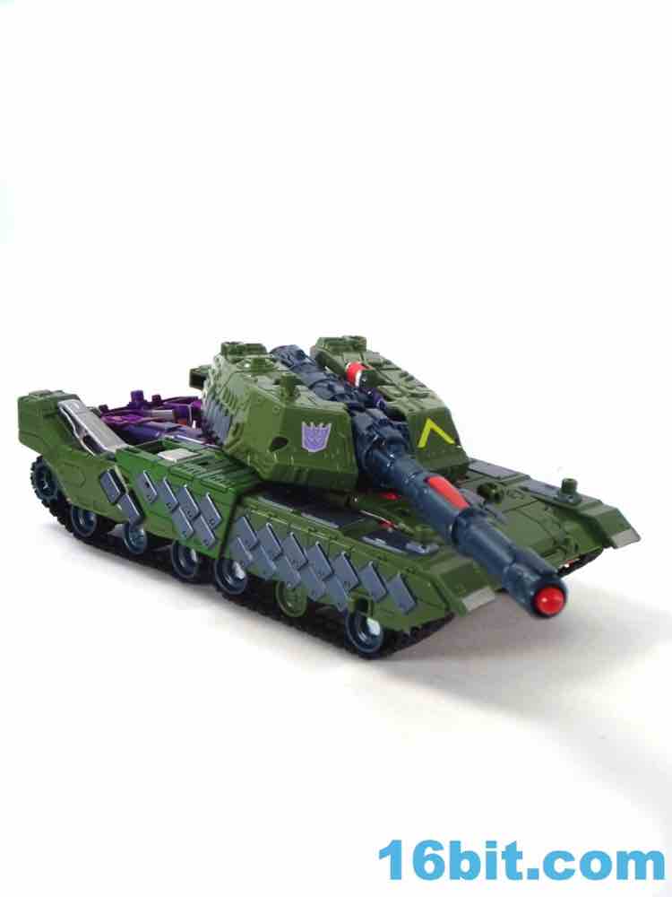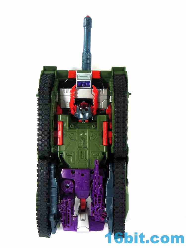 Transformation is simple. Very simple. Not Jetfire-level simple, but easy enough to figure out without consulting the instructions on the whole, other than the robot crotch placement in tank mode. Everything fits together nicely and the result is a tank with "working" treads, a feature I would like to see Hasbro kill because the rubbery elements seem to decay quickly at times. That and they don't turn particularly well, so a solid tank tread with functional wheels underneath is a generally better move - especially since you don't ever see the treads in robot mode.