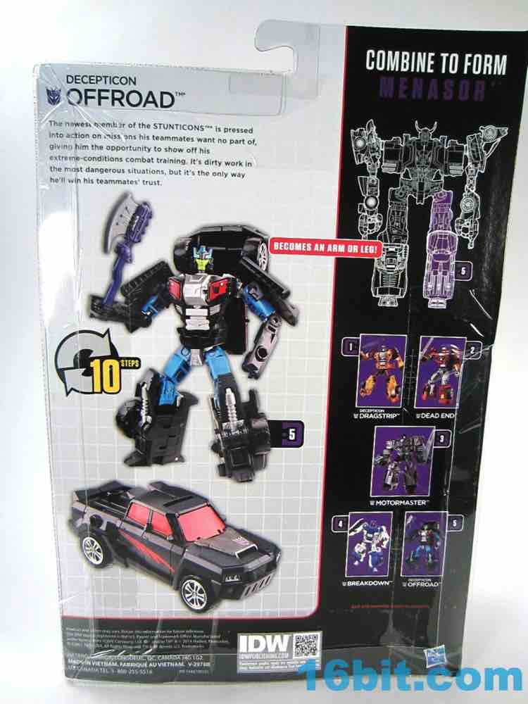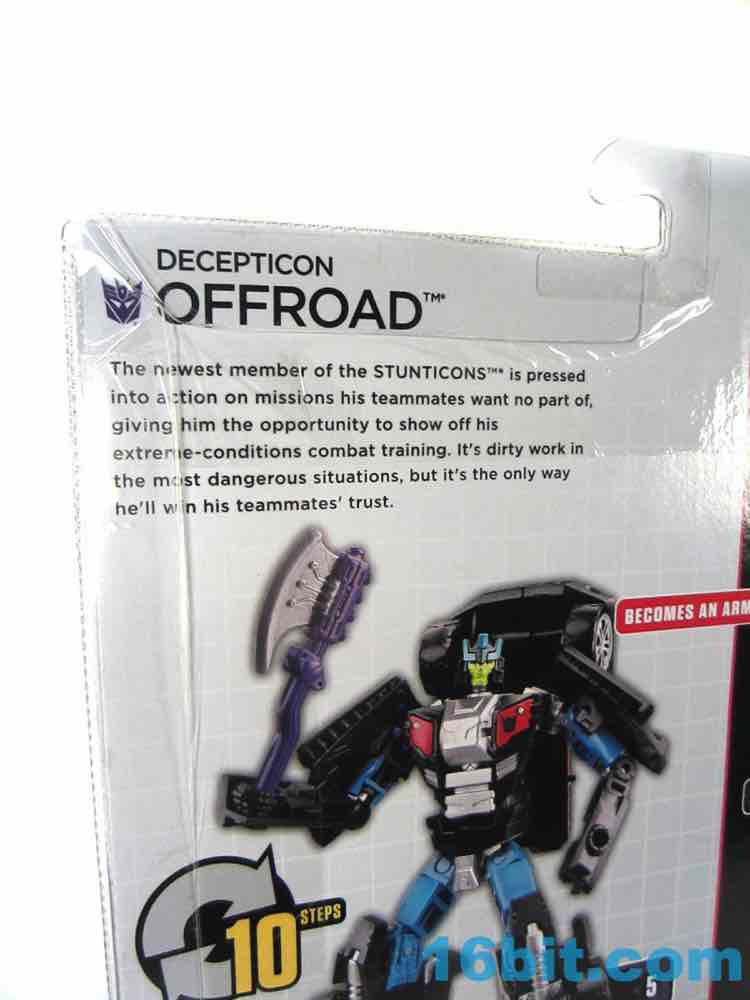Of all the Stunticon limbs, Decepticon Offroad has to be the #2 best. Breakdown and Dead End are sort of obnoxious in the hood and head areas. Dragstrip is a great, simple toy. Offroad is simple and is also a new character, with a decent amount of articulation and that whole opening-leg thing that we saw on Superion's limbs.