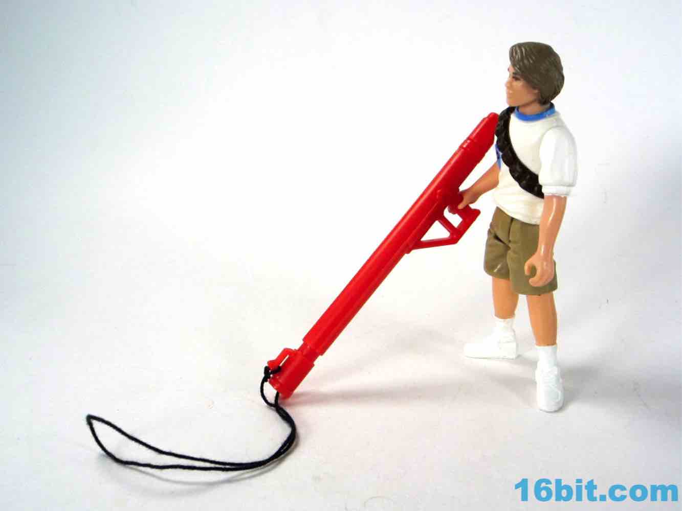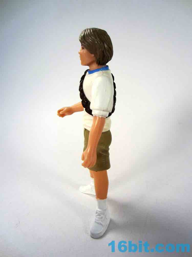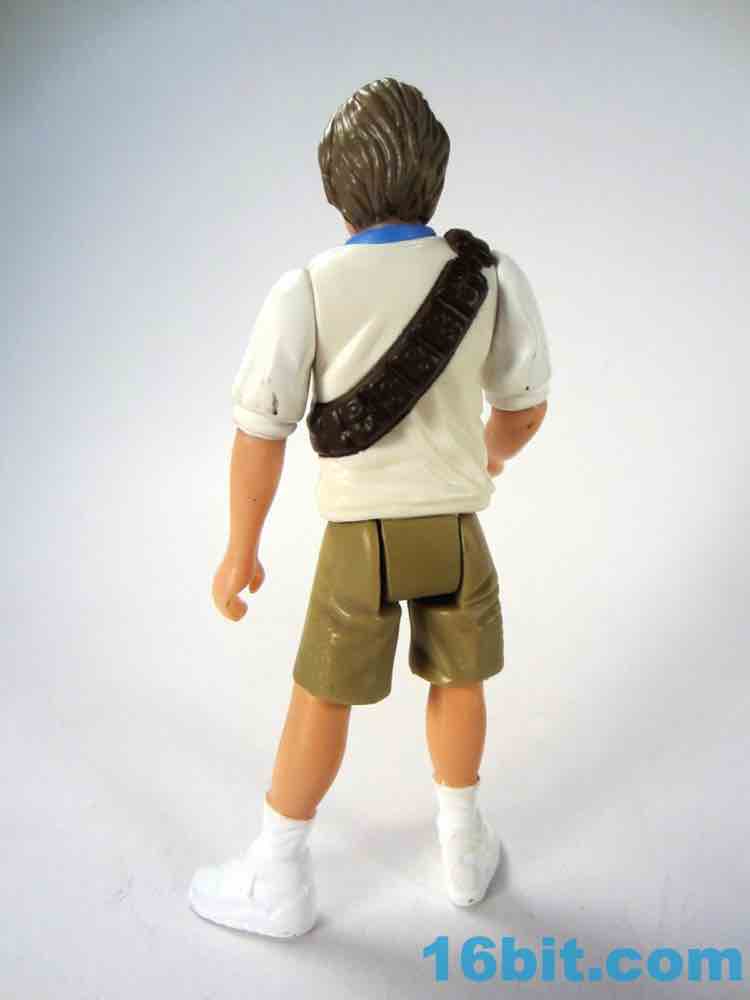 With brown shorts and white sneakers, the figure is posed strangely. One foot is sticking out at an odd angle, and his shoulders are slouched down a bit. Kenner in those days was pretty big on symmetry in their poses, so this was nothing if not weird. Just having him stand on my desk as I type this reminds me of talking with my friends and bagging on the weirdness of the toys when they came out, and the generally strange decision to include big weapons with them all. Tim has a snare and a cage, which means that Kenner said "I know what this ten year old kid should do. He should get this rare baby creature in a noose." The line has a lot of hallmarks of violence, as one of the big gimmicks was "dino-damage" - figures had exposed bones and ripped-off flesh, which seemed to be appropriate for the movie's "adult" PG-13 rating despite the fact that every kid in America wanted to go see dinosaurs.