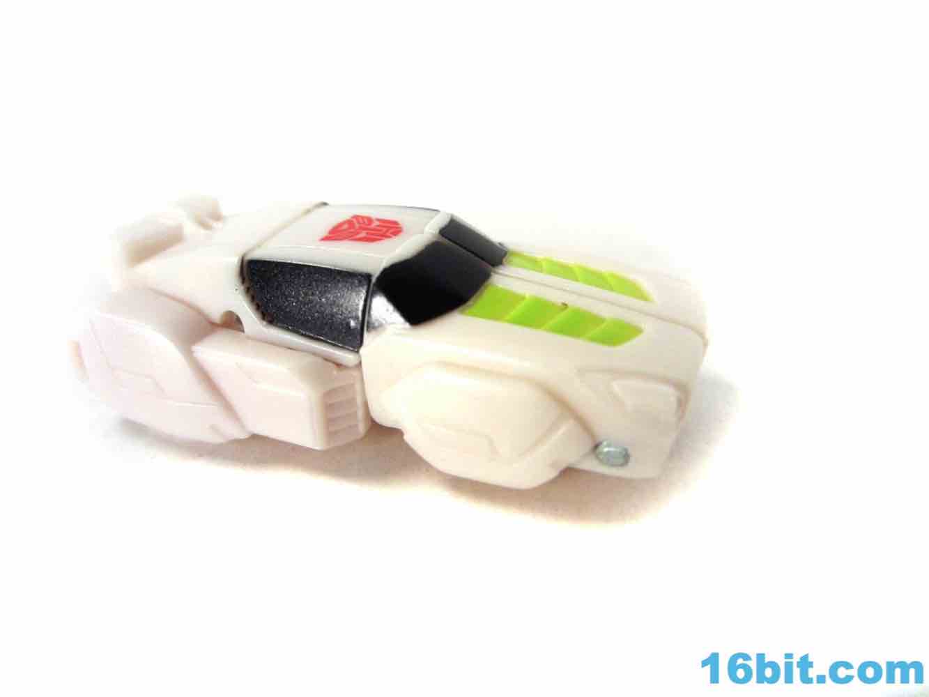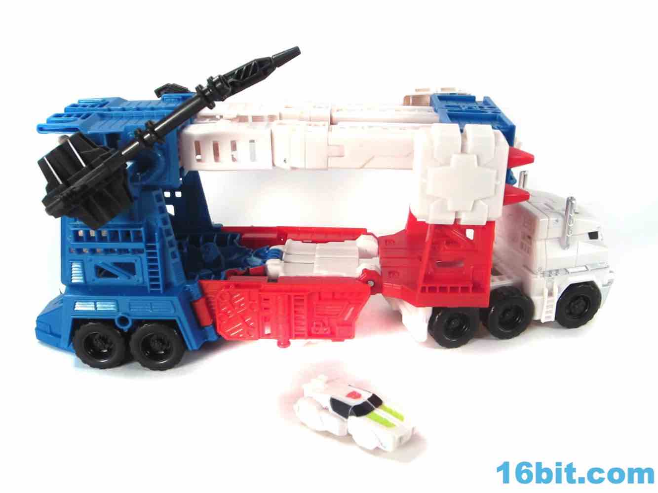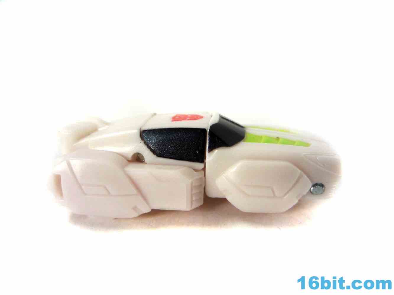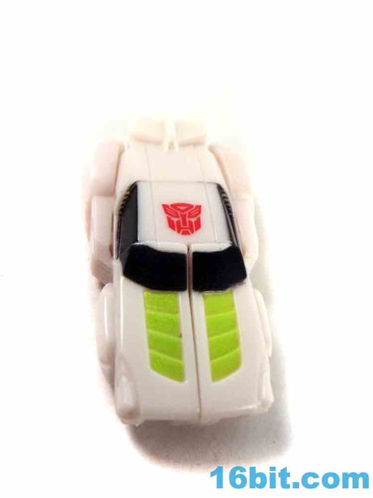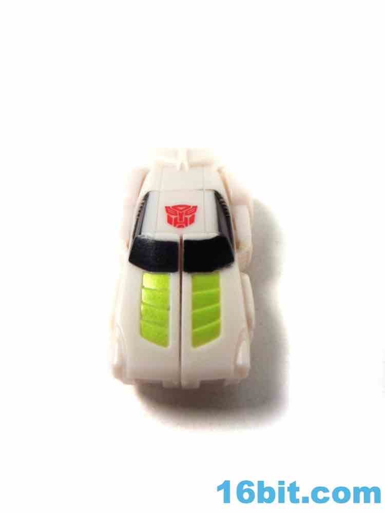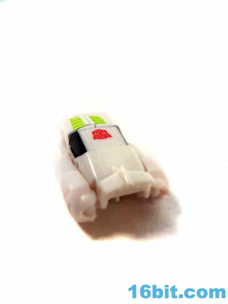 Minimus Ambus is basically the size of the "Micromaster" sidekicks from a couple of years back, a tiny toy with great paint and no wheels. The hovercar turns into a robot, which fits in Magnus' chest perfectly. The little car doesn't really fit on the car carrier mode, but it does have painted windows and just enough green to be interesting. The fake facial hair amused co-workers to no end, and it's a fun twist to the tradition of the armored white Optimus Prime. For five bucks, you'd probably happily buy one of these - but with no wheels or accessories, he's not a lot of fun without the bigger toy. The paint on mine is perfect, and the figure's transformation is simple and intuitive. There's not a lot of detail here, but it's worth mentioning that the head sculpt and deco is exceptional for the size. I expected more slop, and did not get it.
